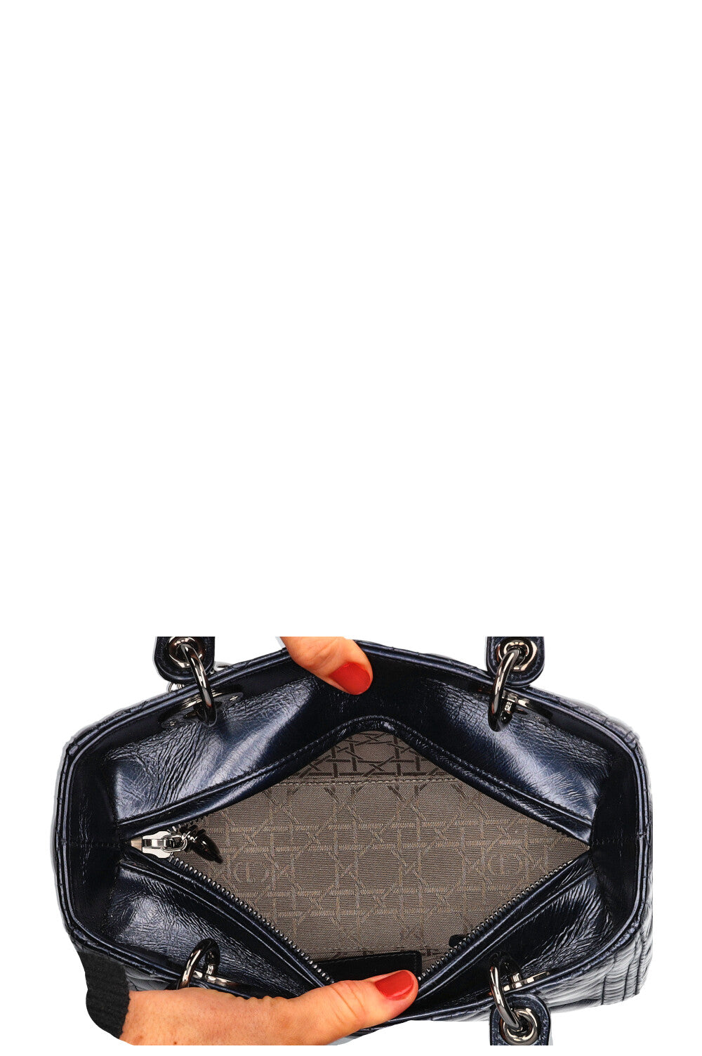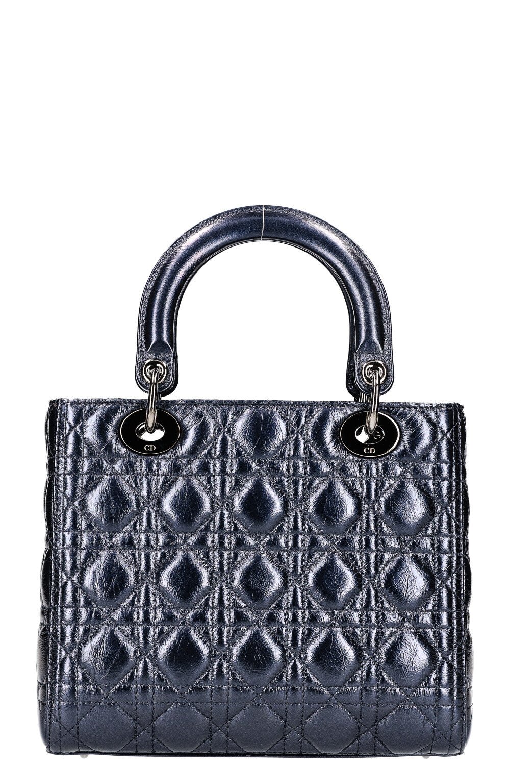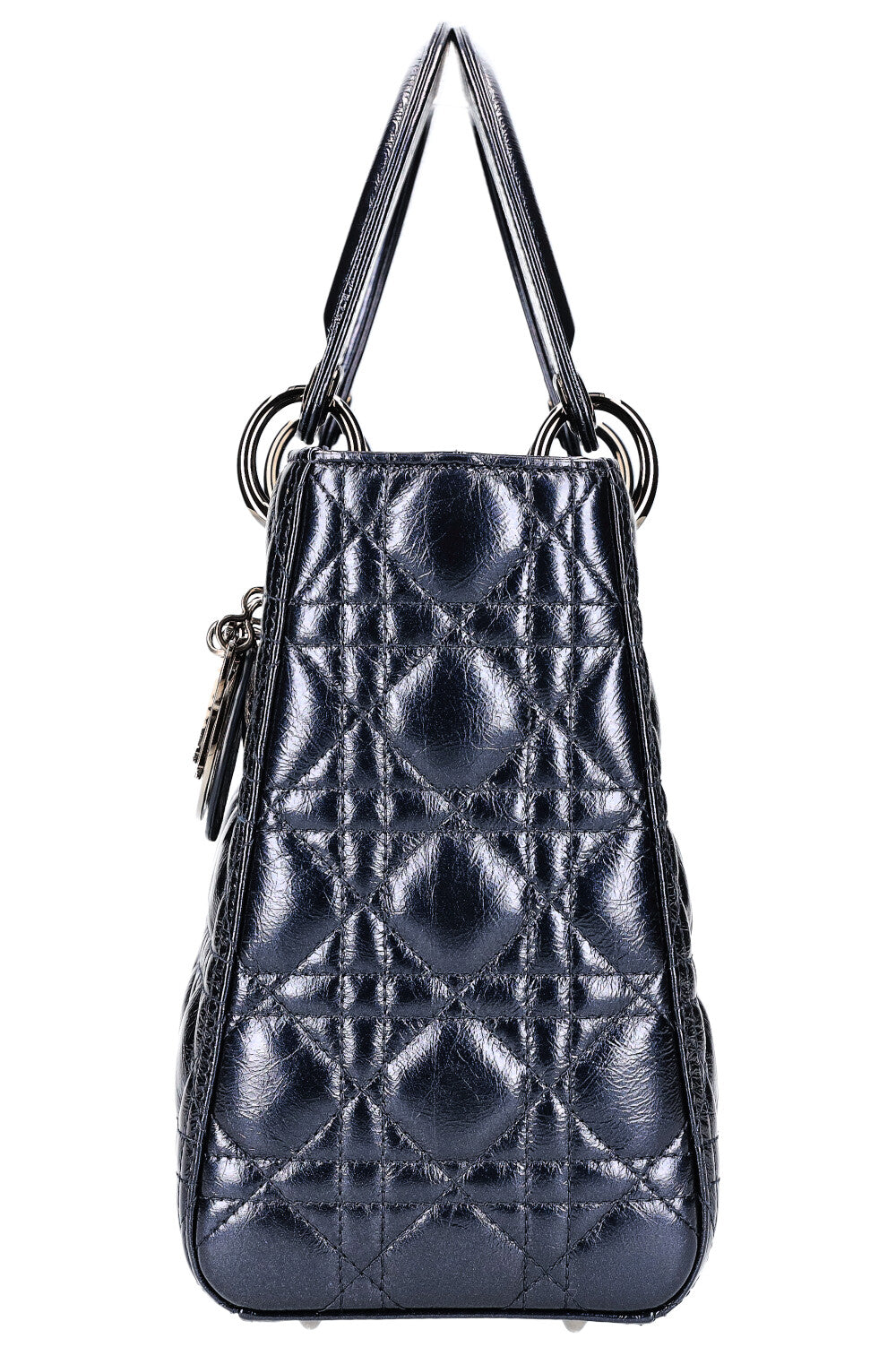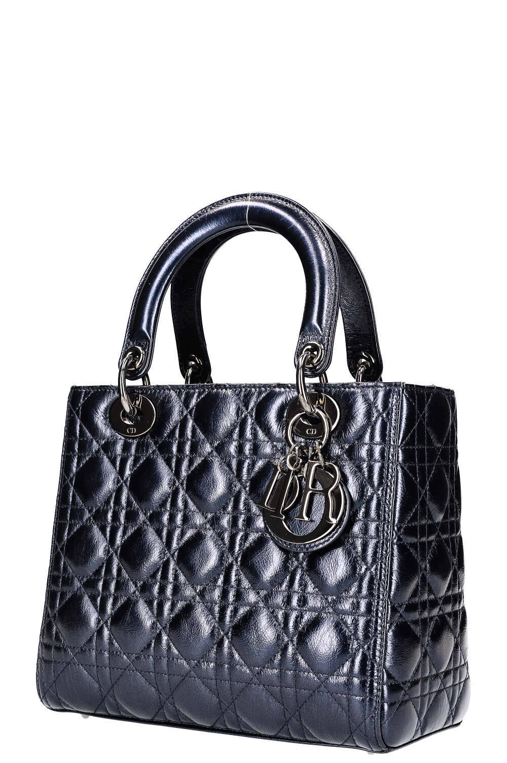 CHRISTIAN DIOR Lady Dior Medium Metallic Navy