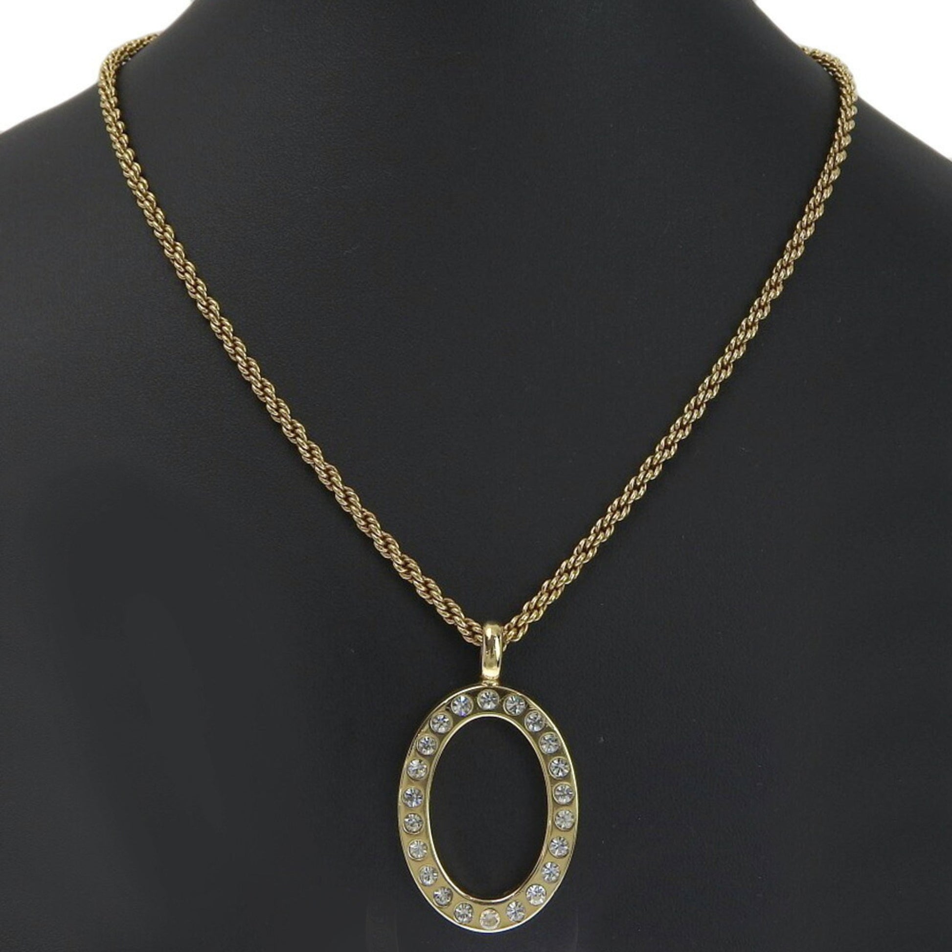 Christian Dior Circle Vintage Gold Plated x Rhinestone Women's Necklace