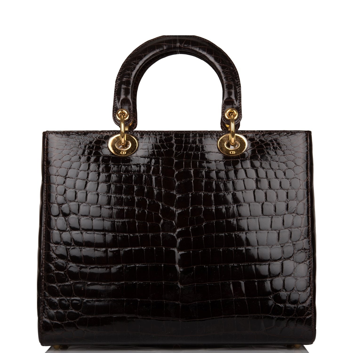 Christian Dior Dark Brown Large Lady Dior Alligator Tote Gold Hardware
