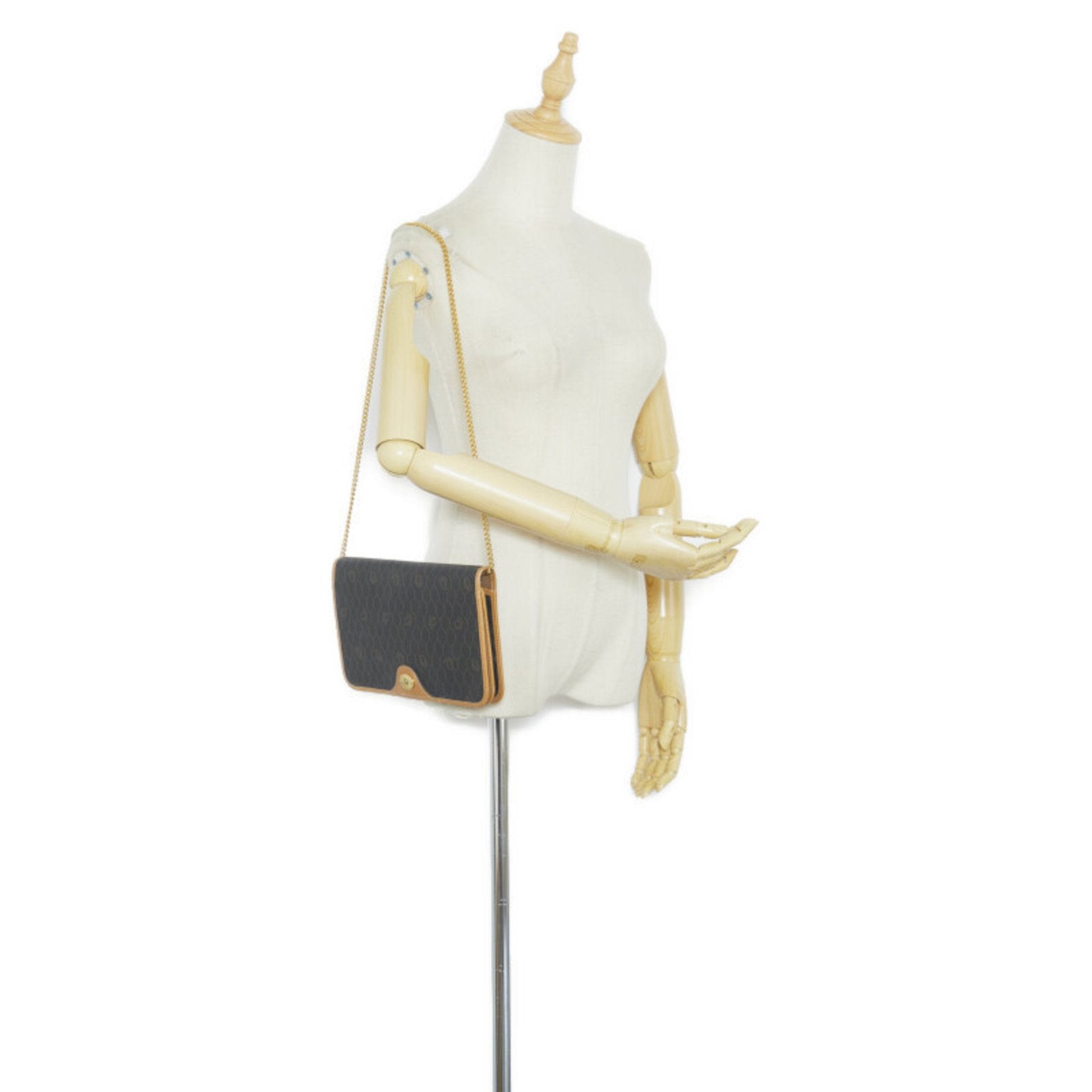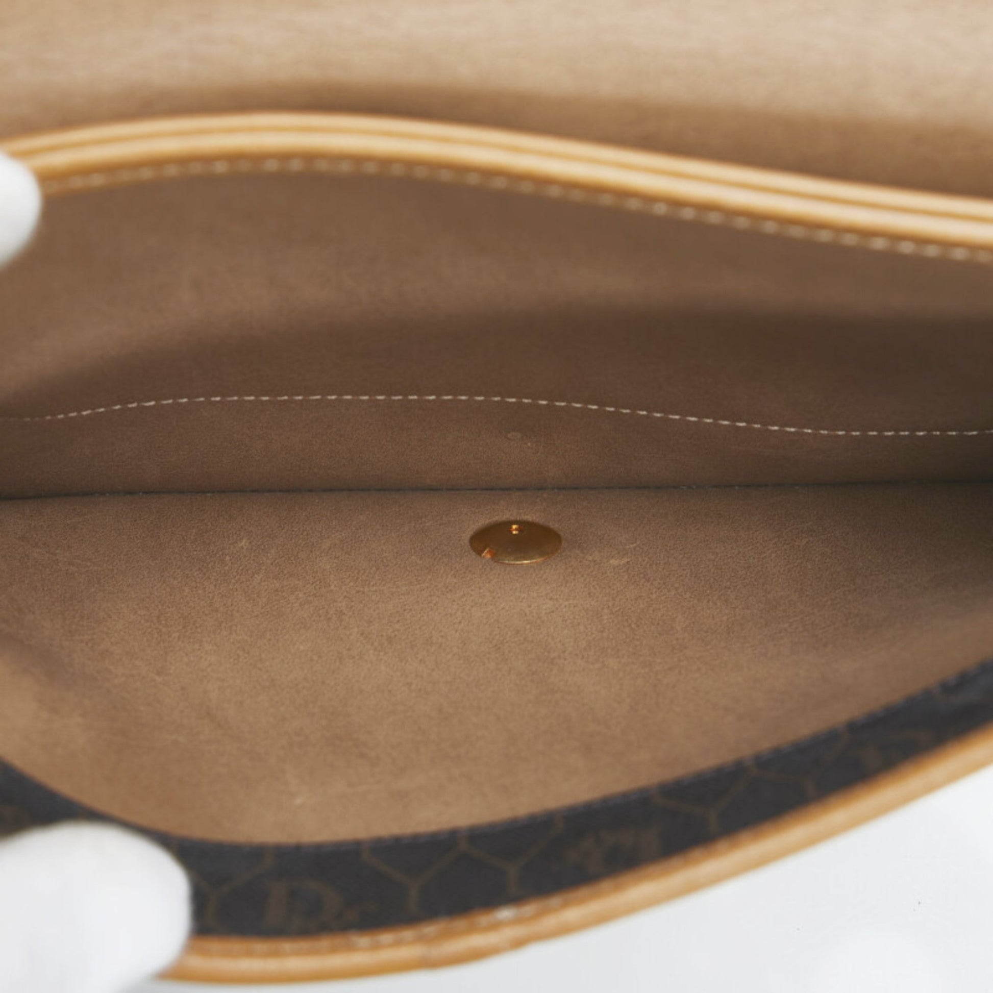 Christian Dior Dior Honeycomb Chain Shoulder Bag Black Brown PVC Leather Ladies