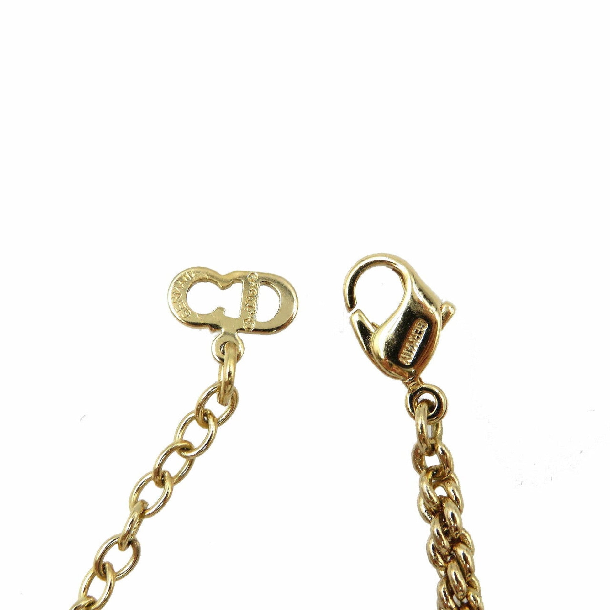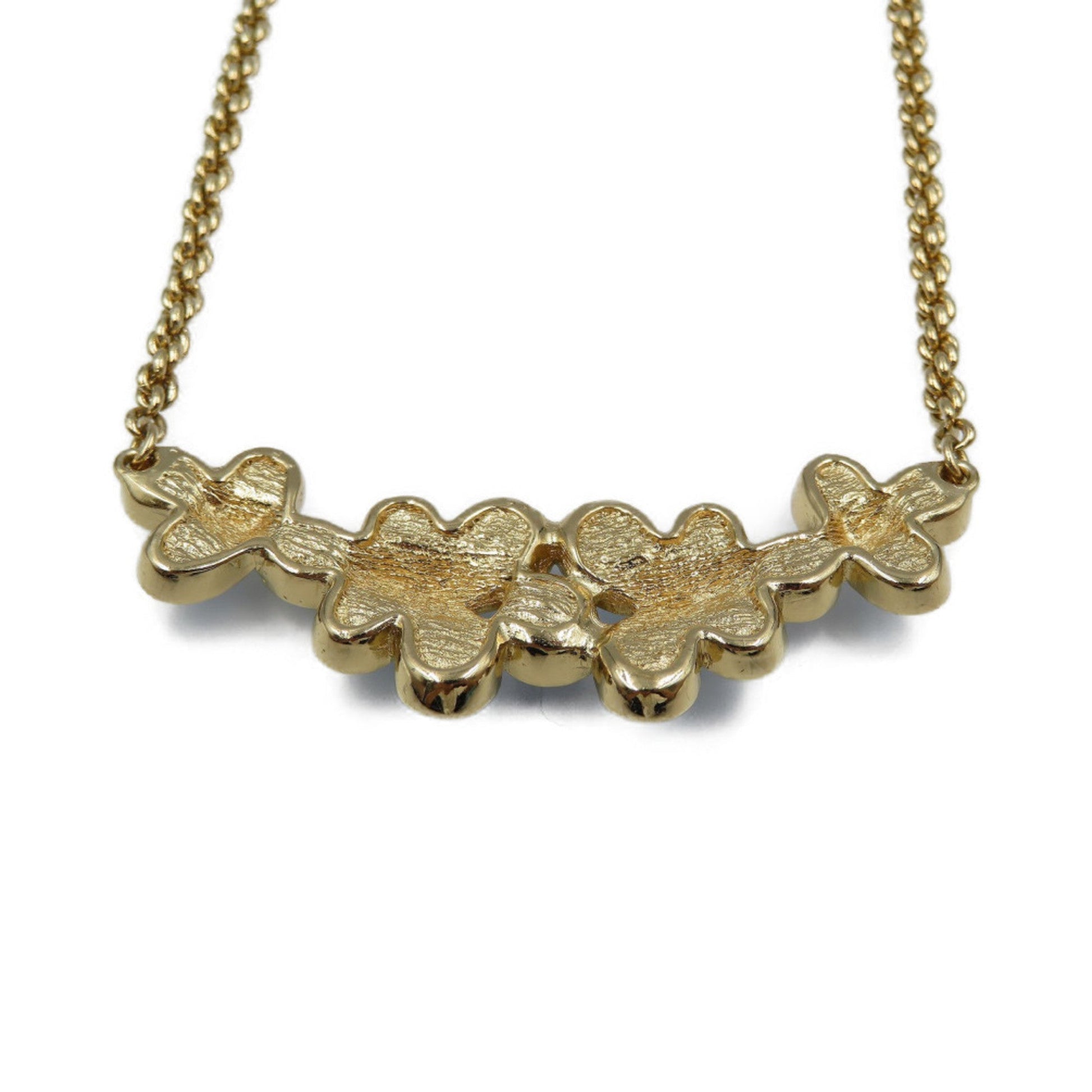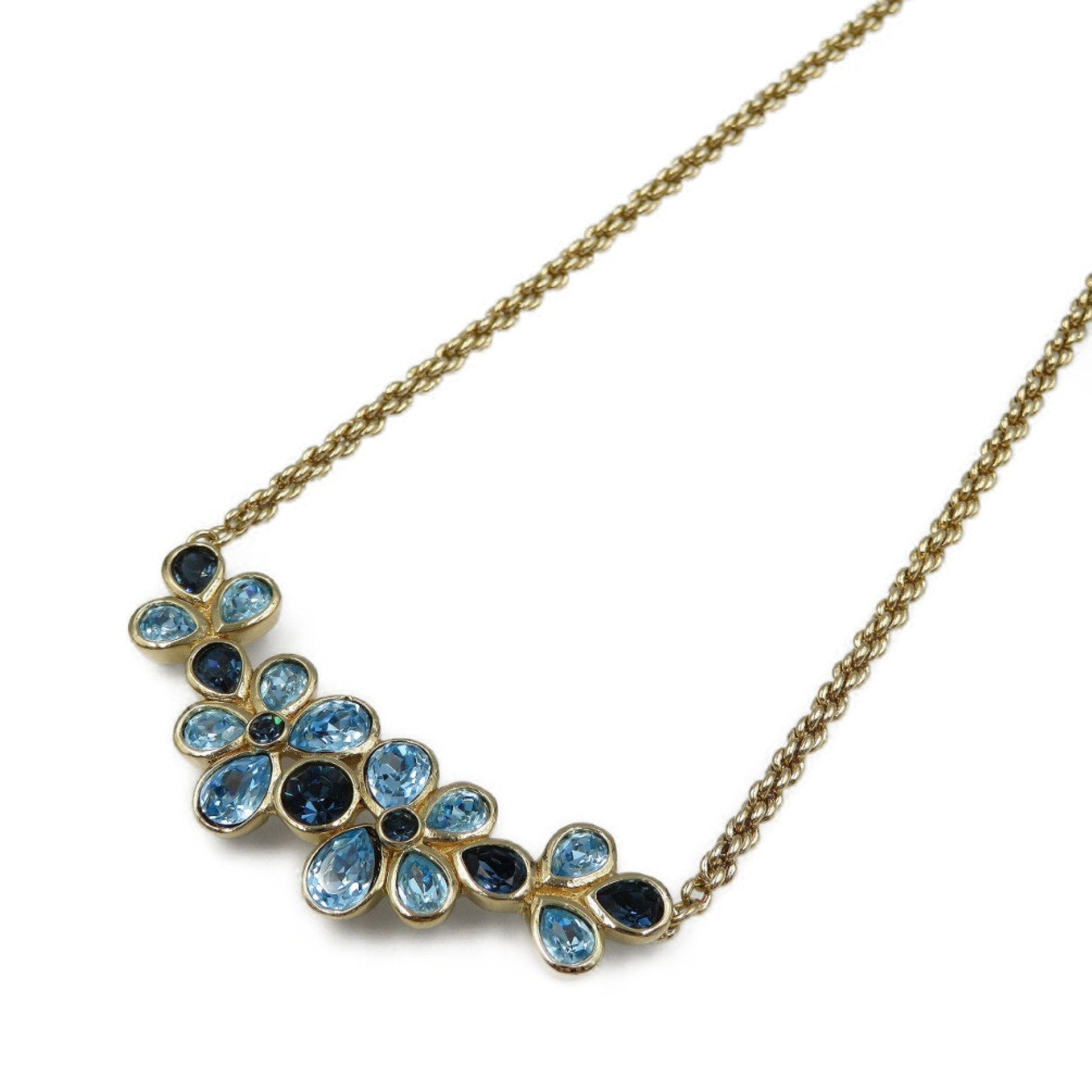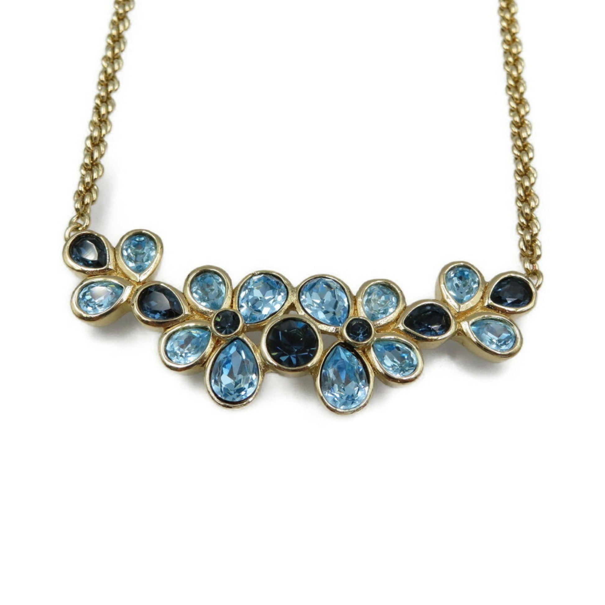 Christian Dior Flower Motif Metal Rhinestone Gold Light Blue Necklace