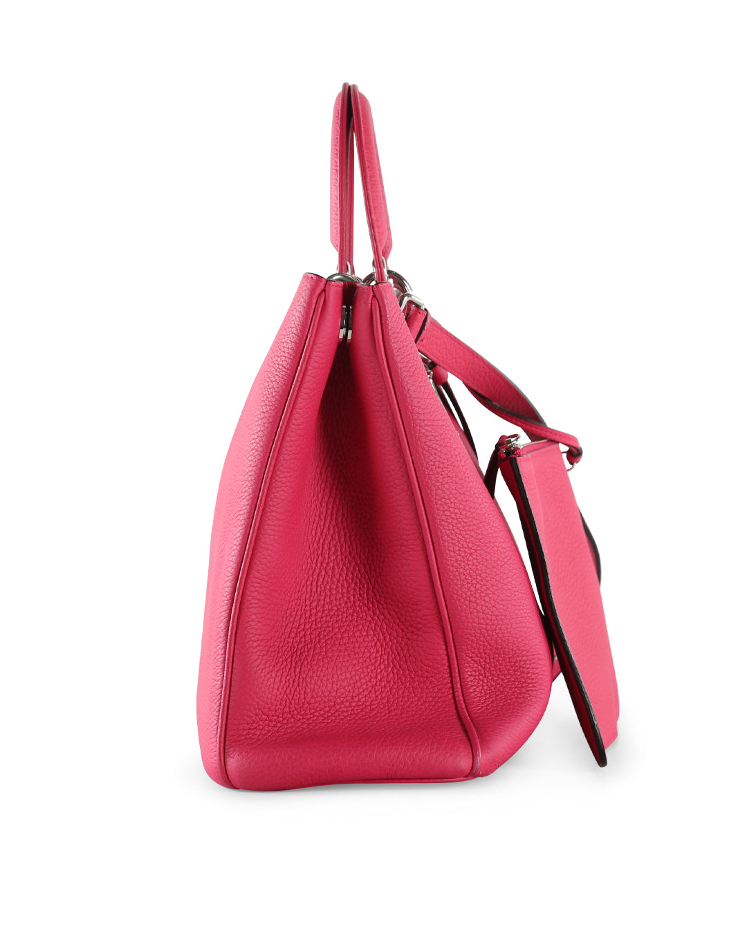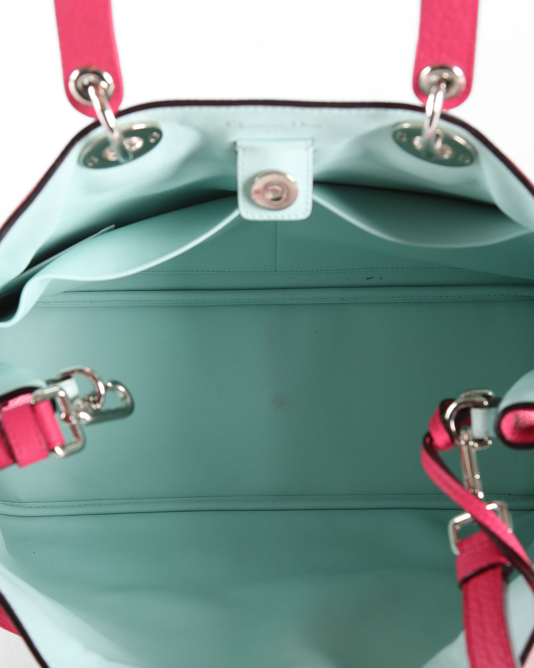 This Christian Dior tote bag is crafted from fuchsia pebbled leather.