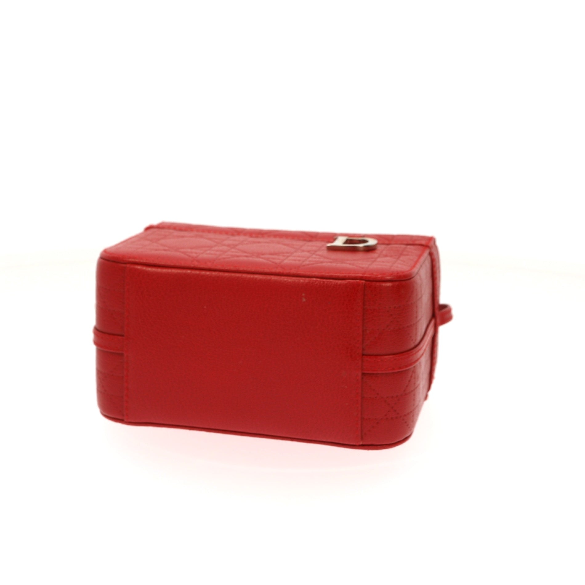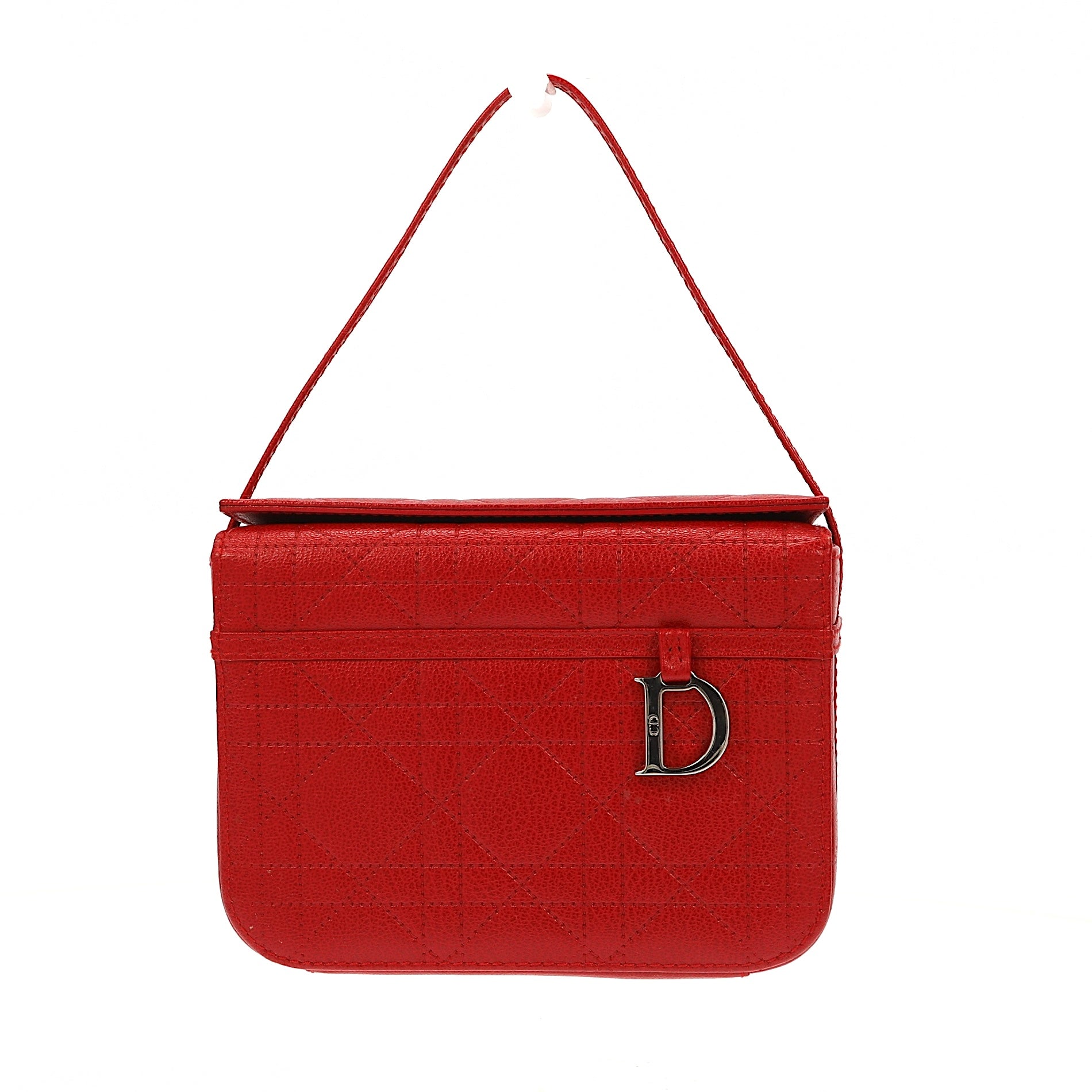 This chic handbag is constructed leather in Red with a little metal D pendant on the front