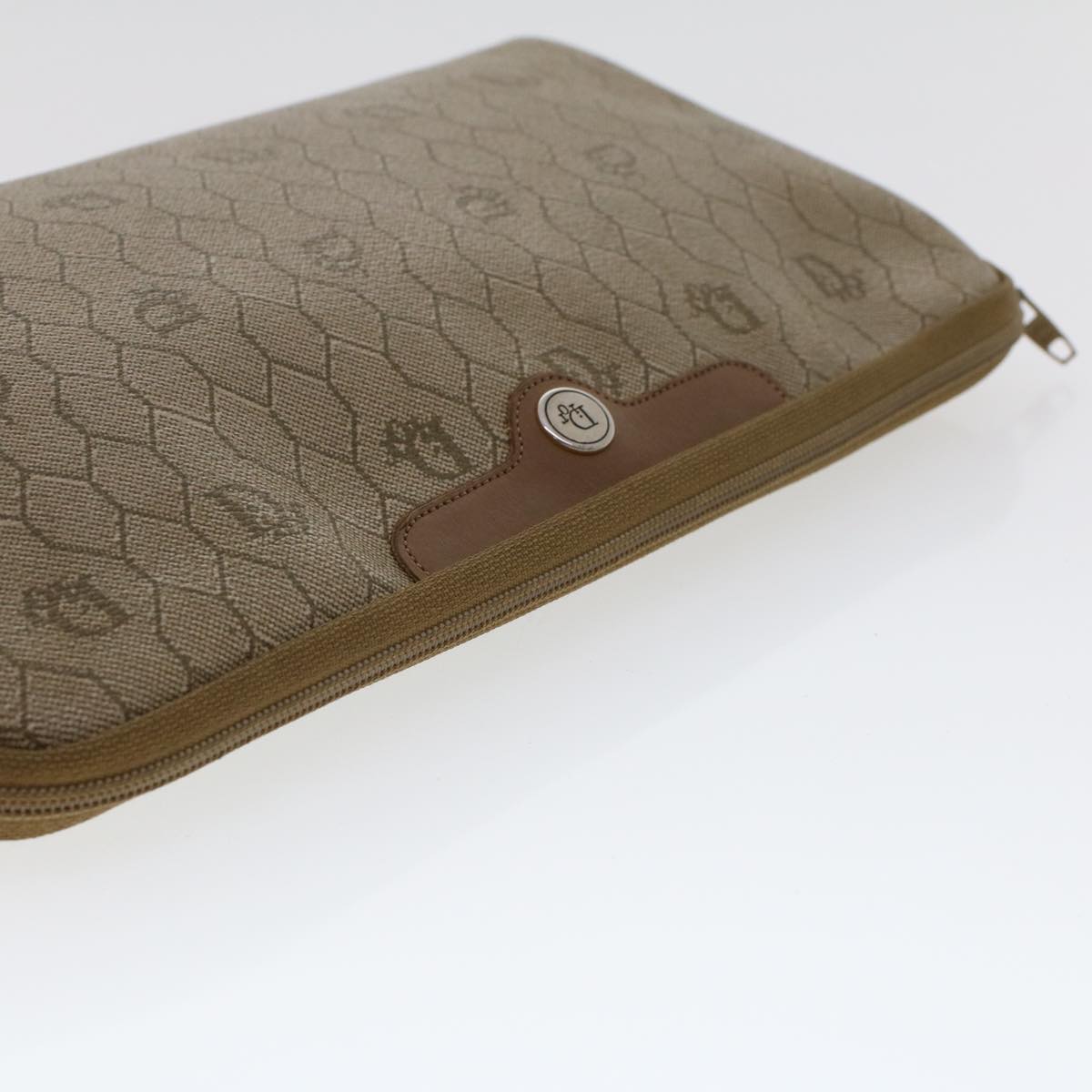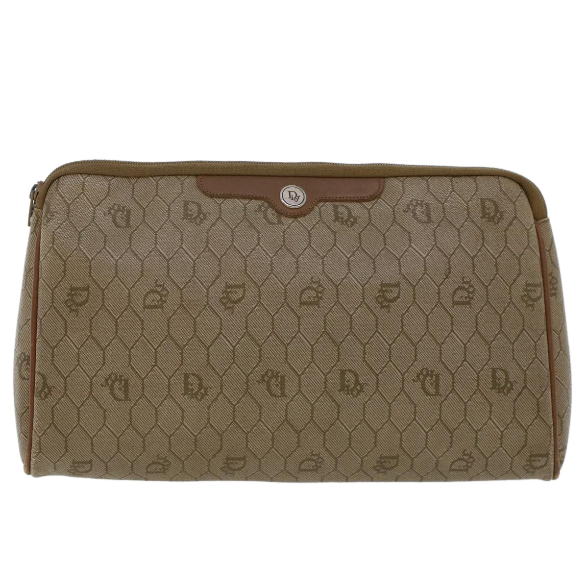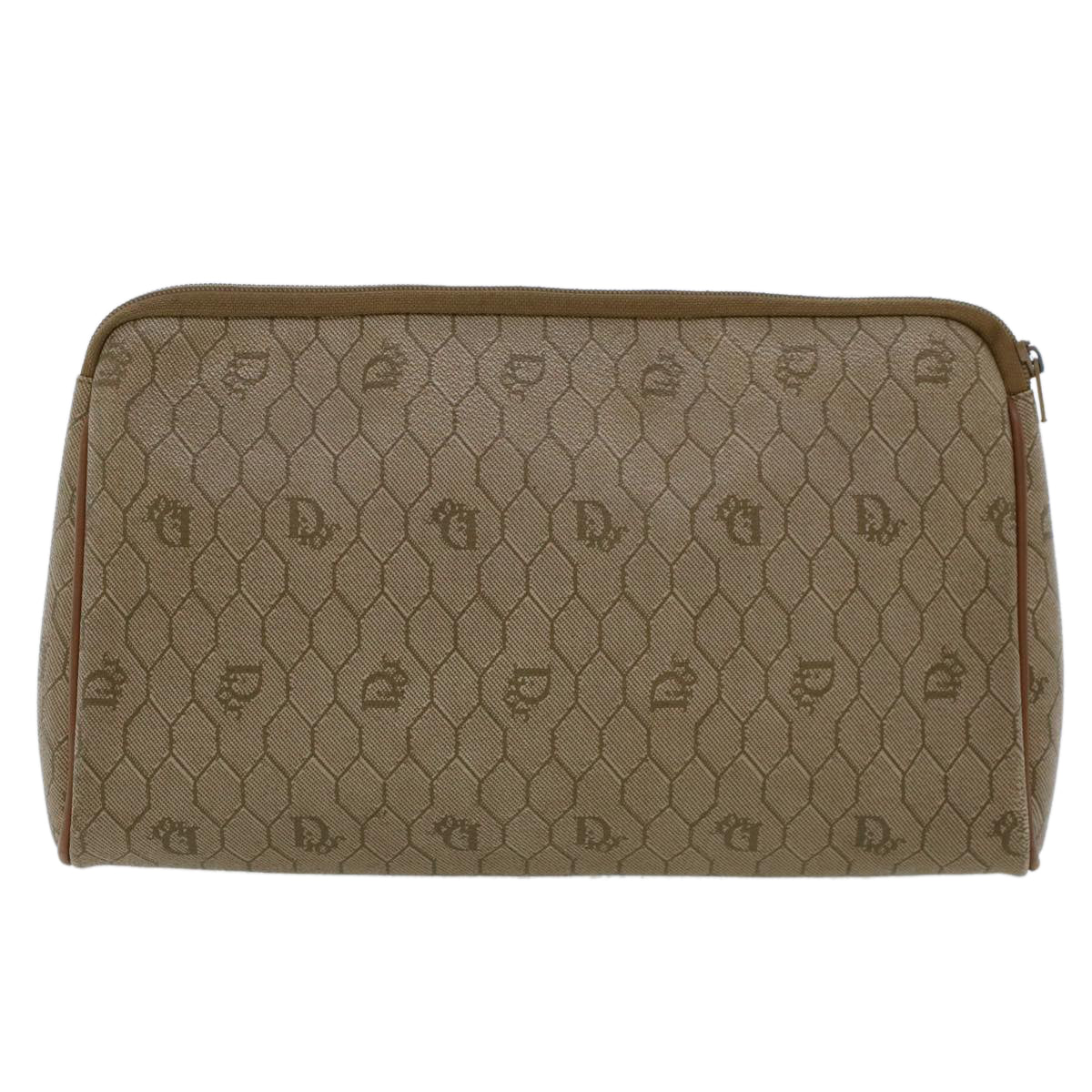 CHRISTIAN DIOR Honeycomb Canvas Clutch Bag PVC Leather Beige Auth ar9839