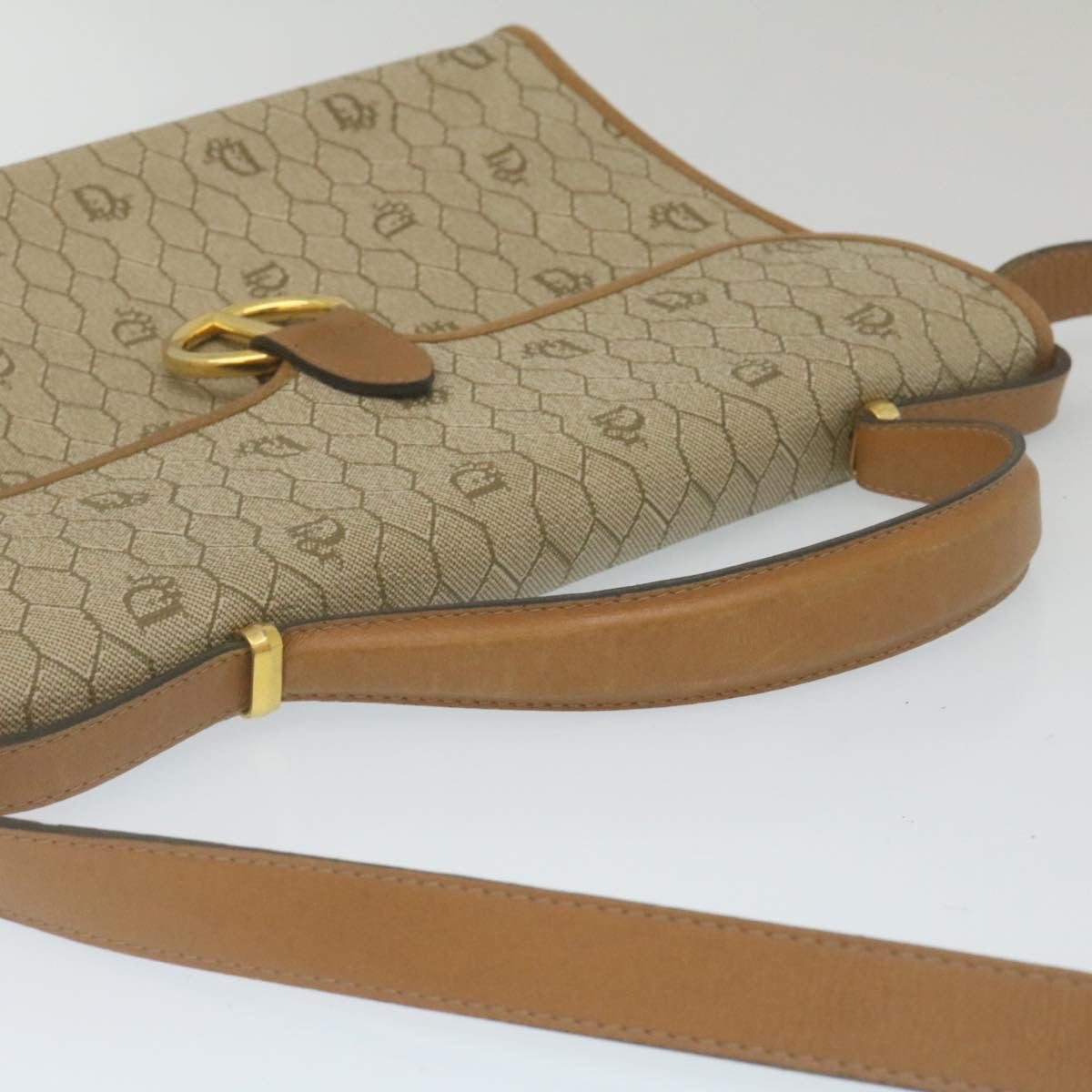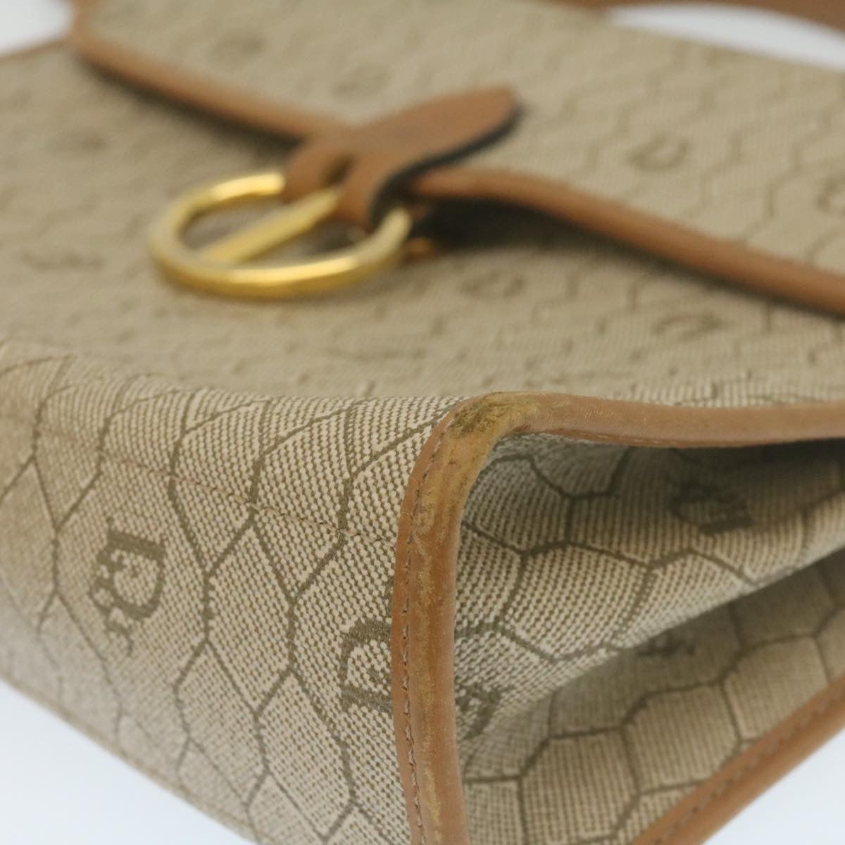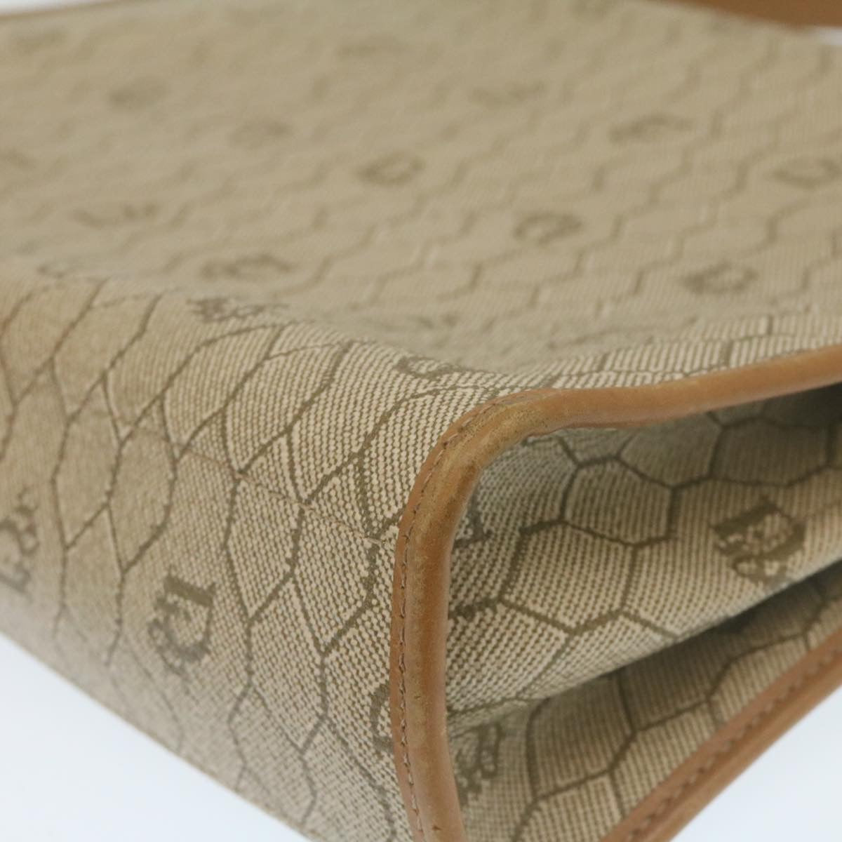 CHRISTIAN DIOR Honeycomb Canvas Hand Bag PVC Leather Beige Auth 29371