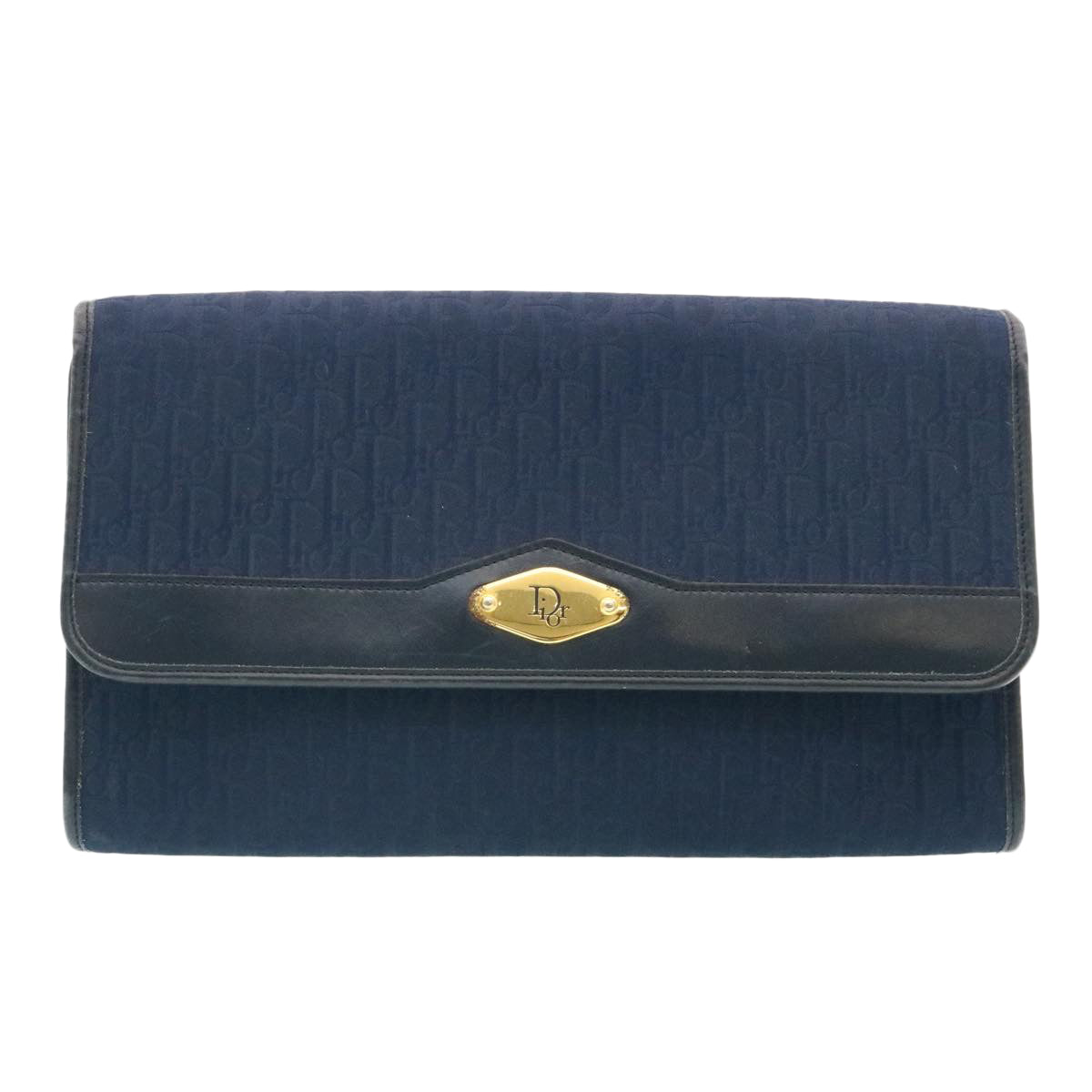 CHRISTIAN DIOR Honeycomb Canvas Shoulder Bag Navy Auth am1653g