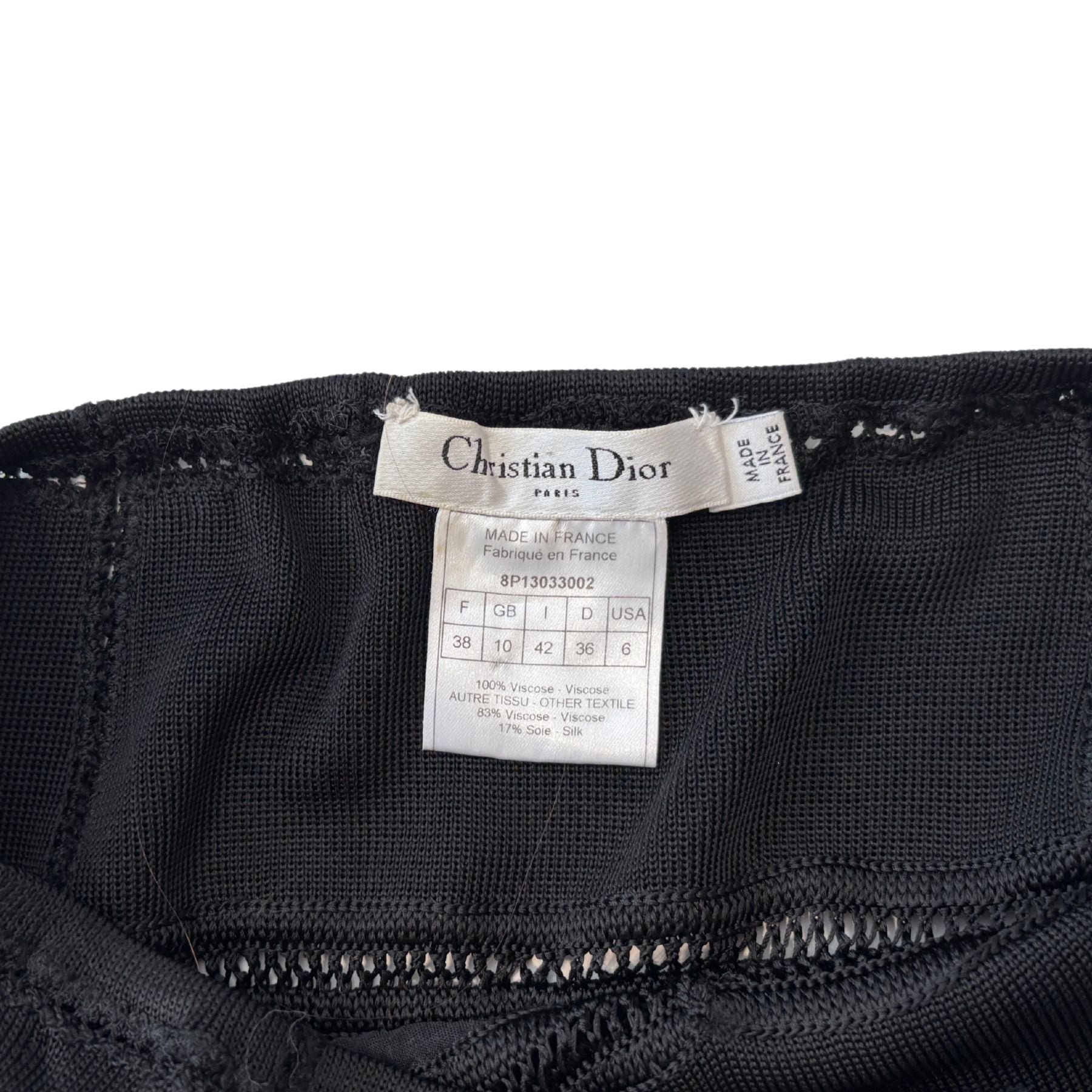 Christian Dior strapless flare mini dress with a pearl knit bust and mesh knit body and a viscose jersey lining.