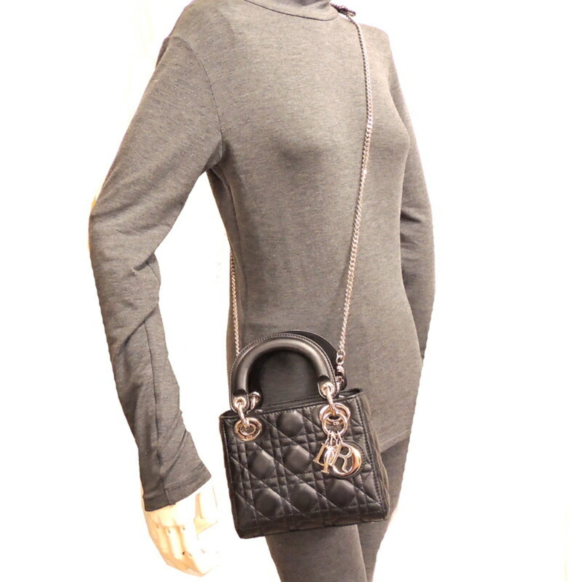 Christian Dior Lady Canage Women's Shoulder Bag M0505 PCAL Lambskin Black x