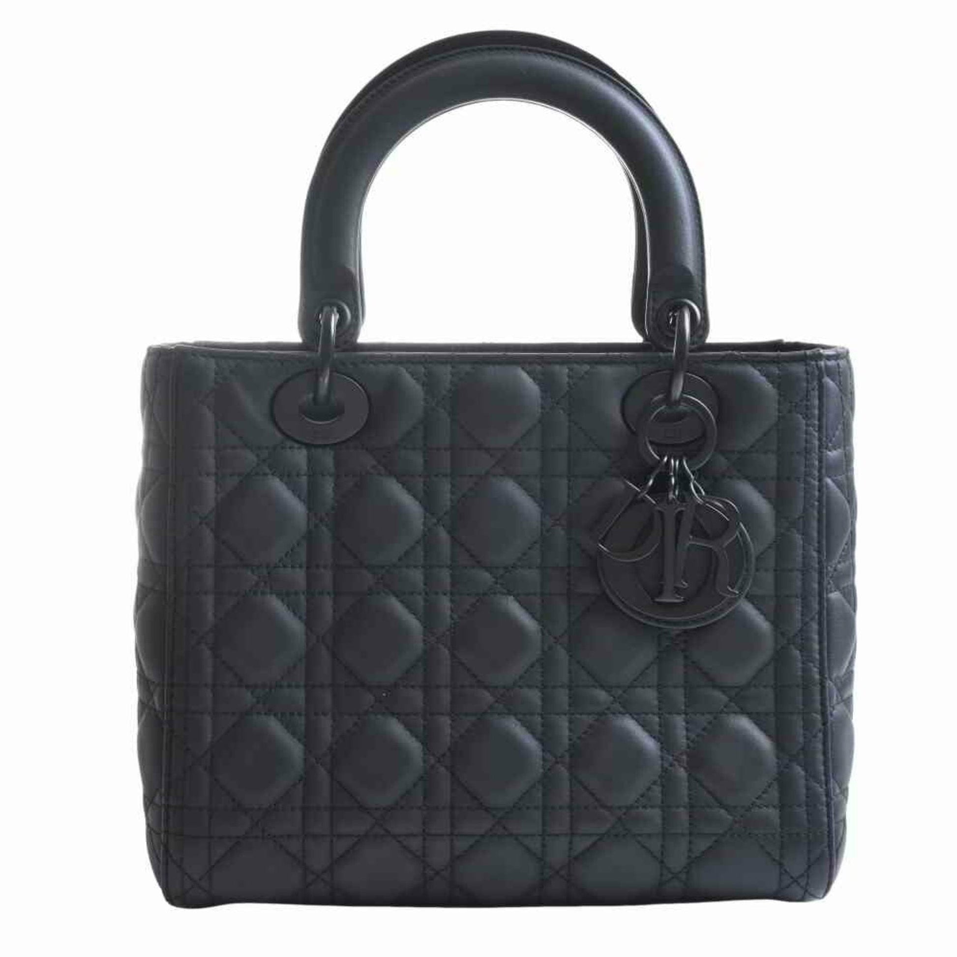 Christian Dior Lady Cannage Ultra Matte Leather Handbag Black