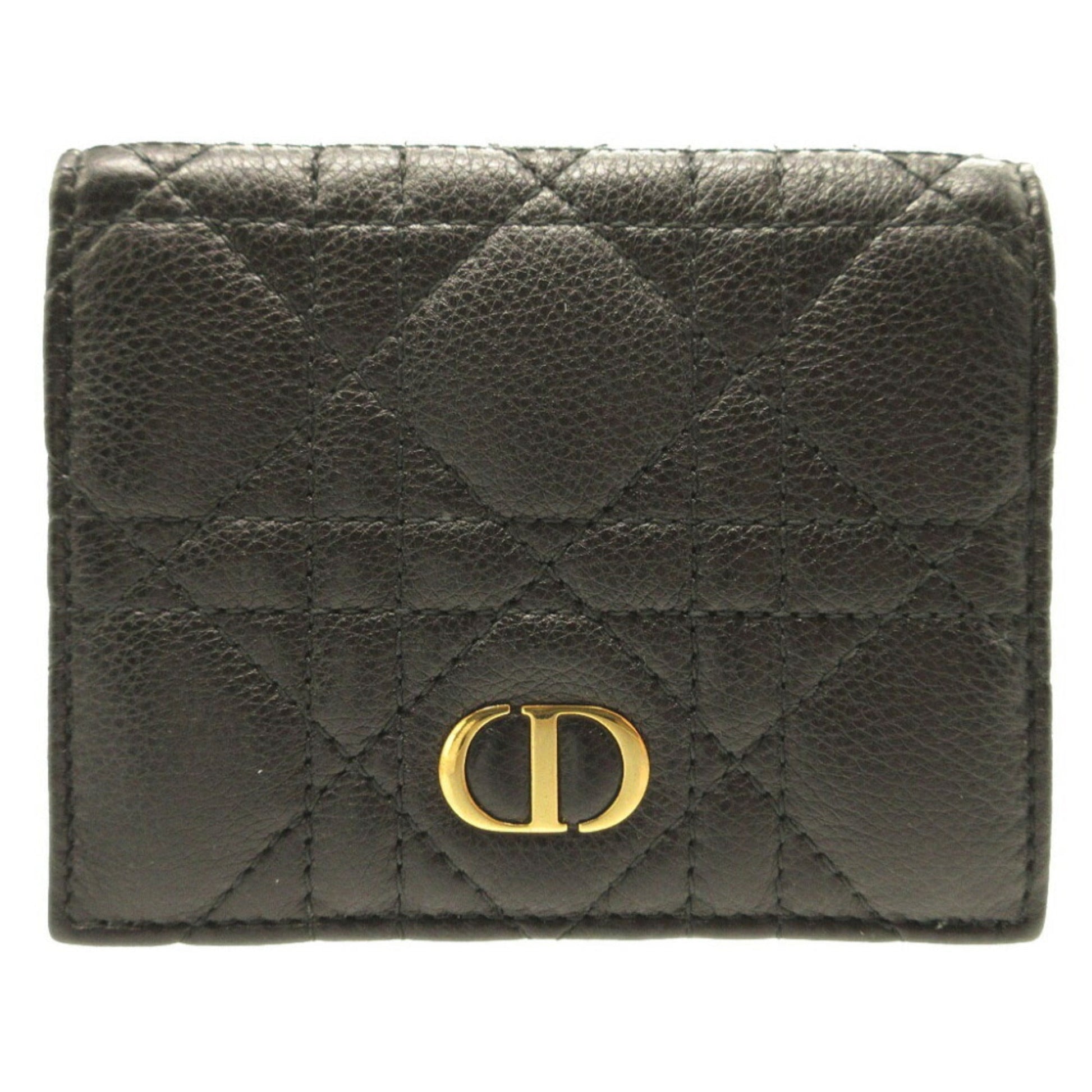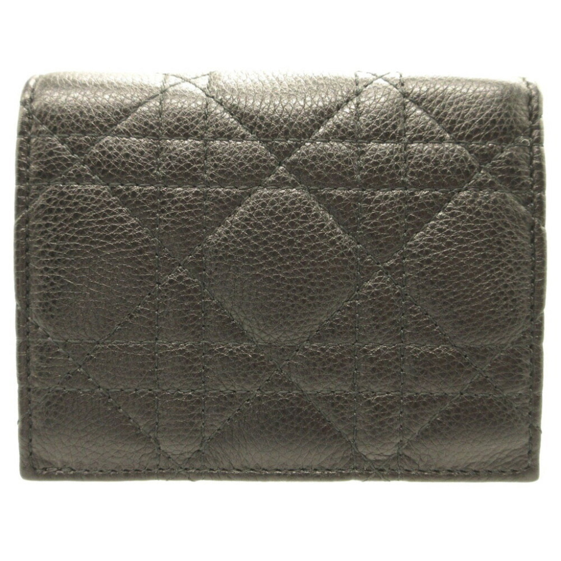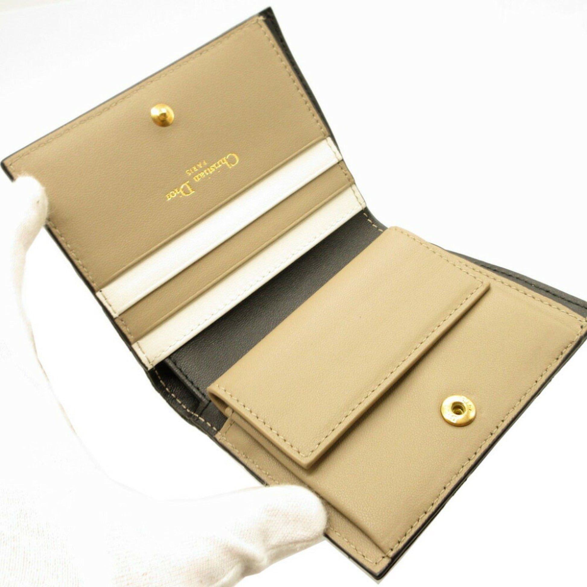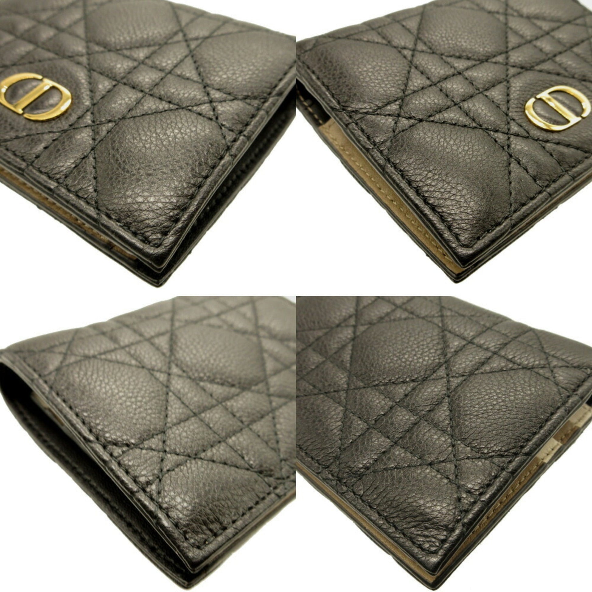 Christian Dior Lady Caro Leather Black Gray Bifold Wallet