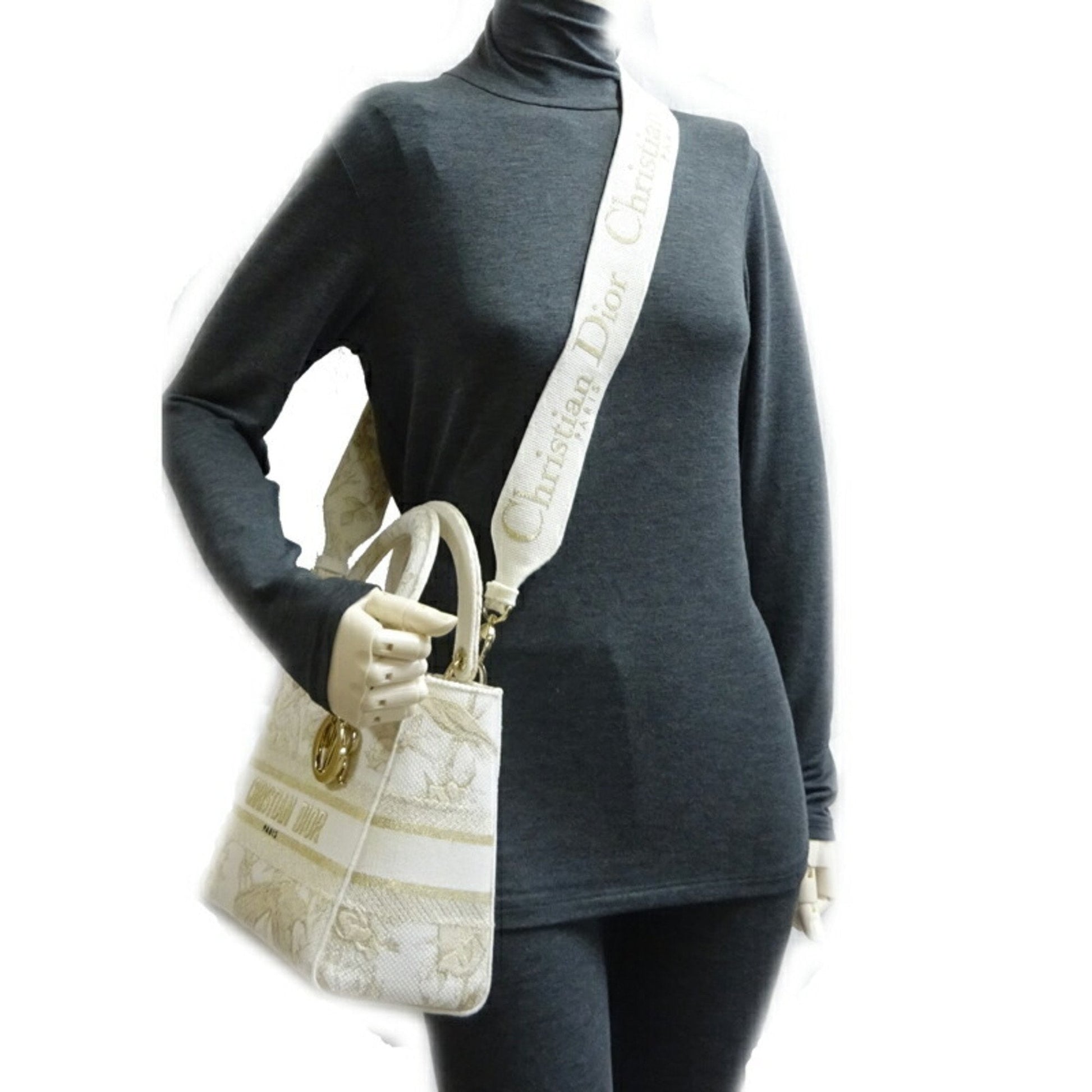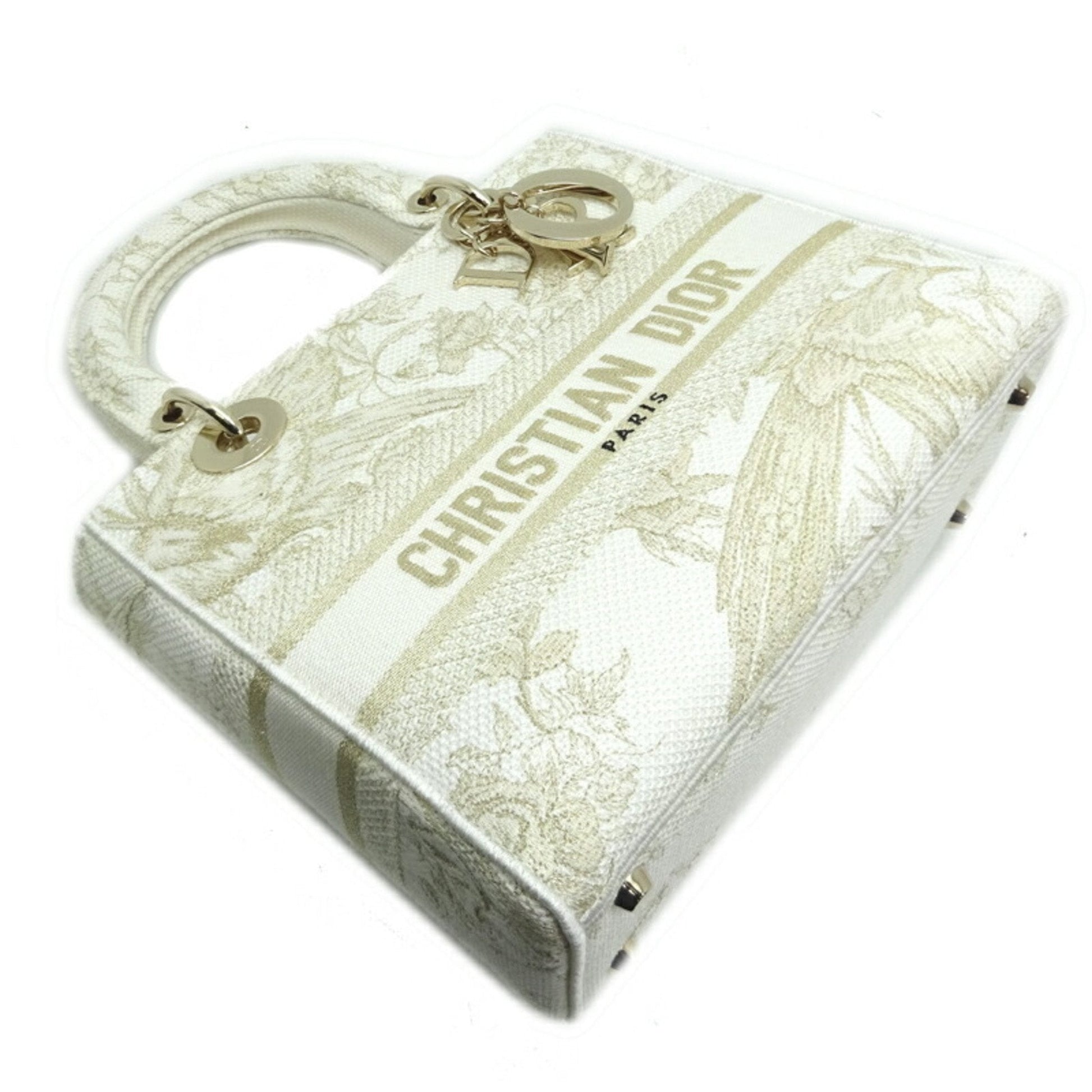 Christian Dior Lady D-LITE Medium 2022 Limited Ladies Handbag Toile White/Gold