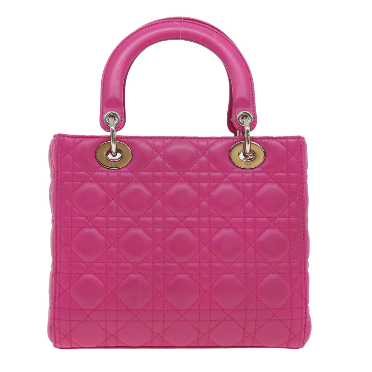 CHRISTIAN DIOR Lady Dior Canage Hand Bag Lamb Skin Pink Auth 30532A