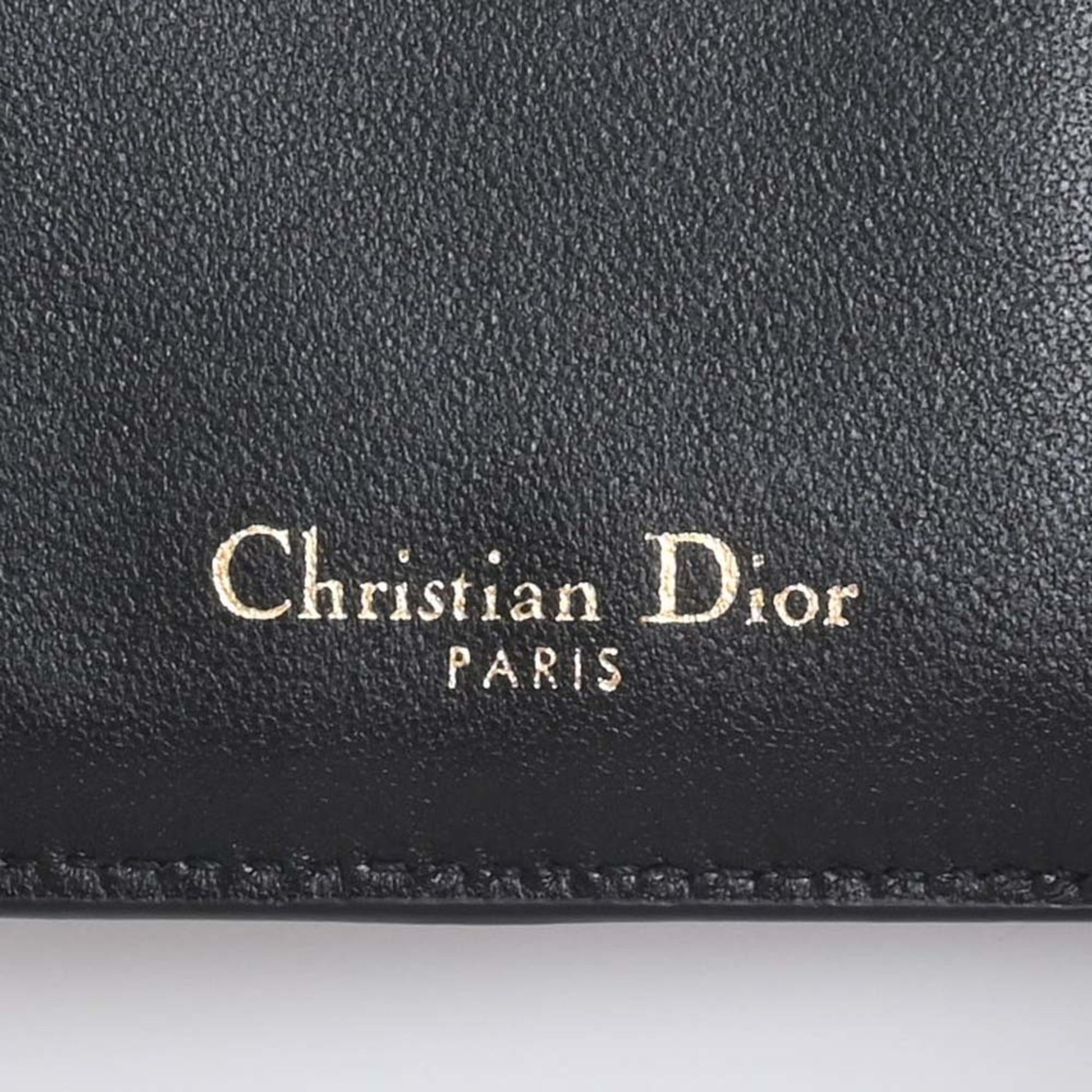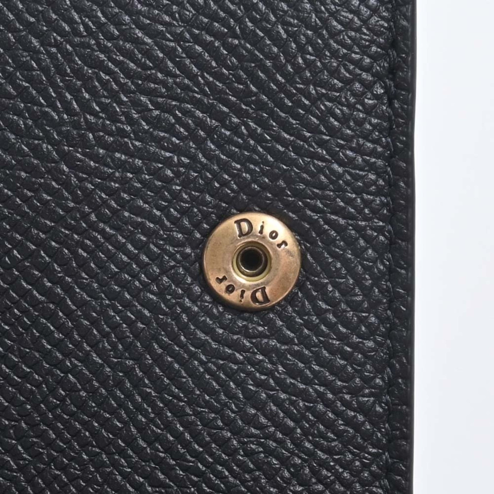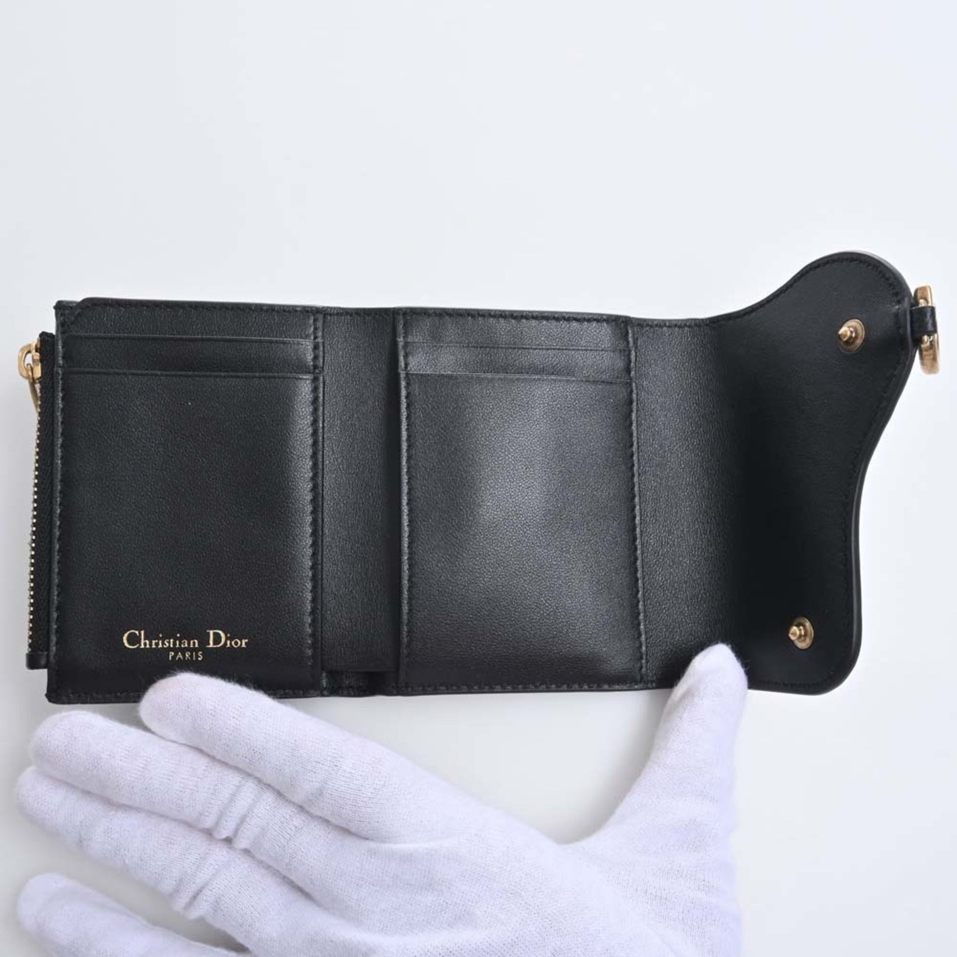 Christian Dior Leather Saddle Lotus Trifold Wallet Black Ladies