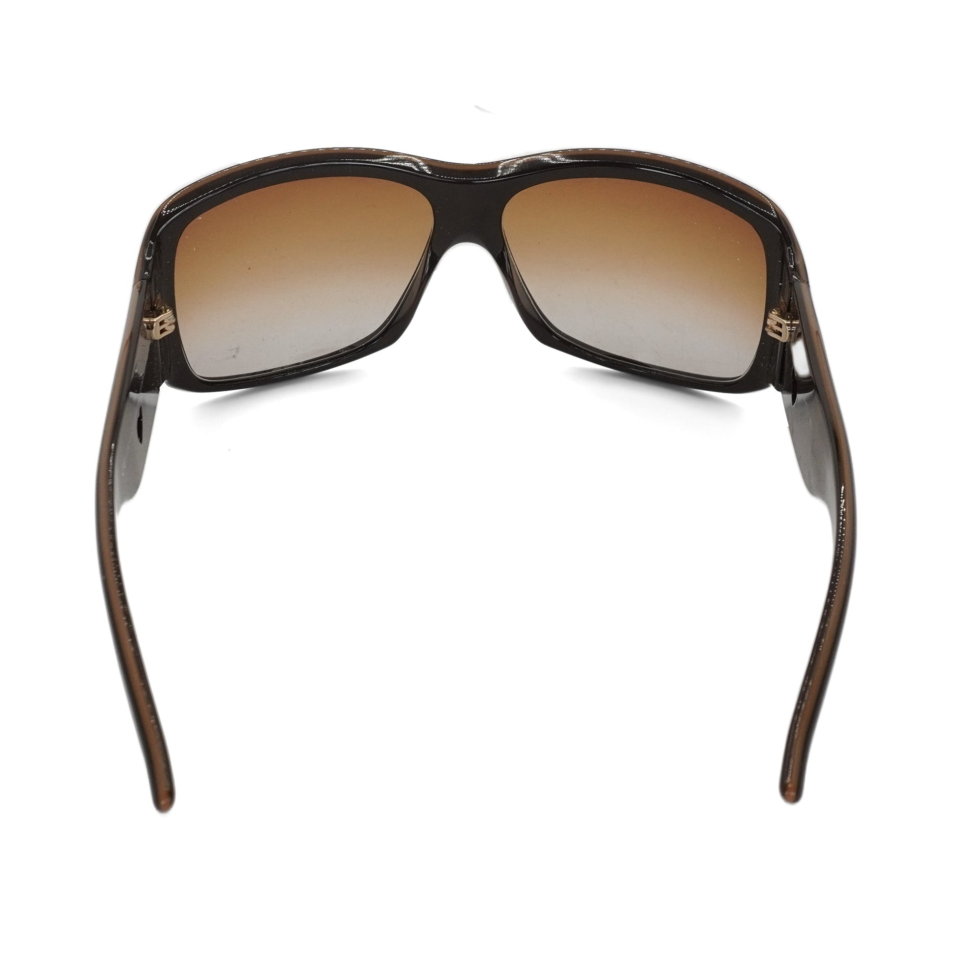 Christian Dior 'Lovingly Dior' oversized sunglasses in dark brown acetate with a lighter brown trim, an oversized rectangle lens, and an embossed logo on the arms with a heart shaped cutout detail.