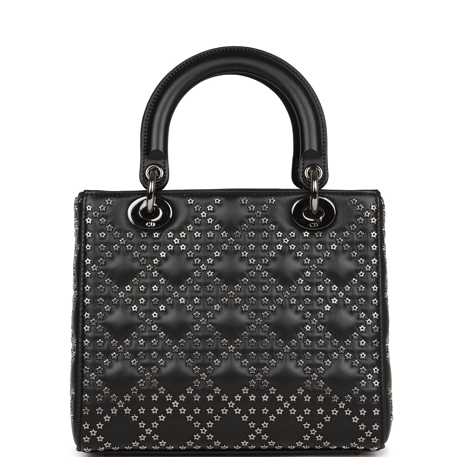 Christian Dior Lucky Star Medium Lady Dior Tote Black Lambskin Ruthenium Hardware