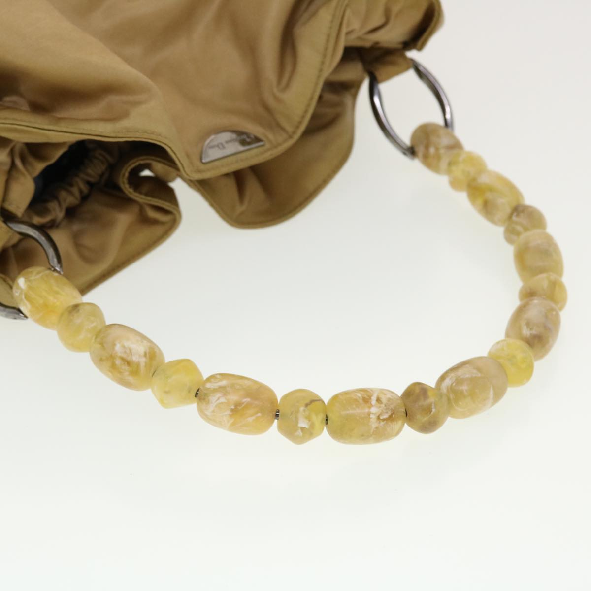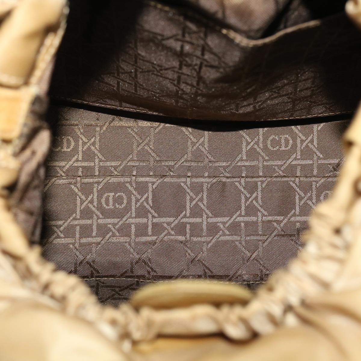 CHRISTIAN DIOR Maris Pearl Shoulder Bag Nylon Beige Auth bs5278