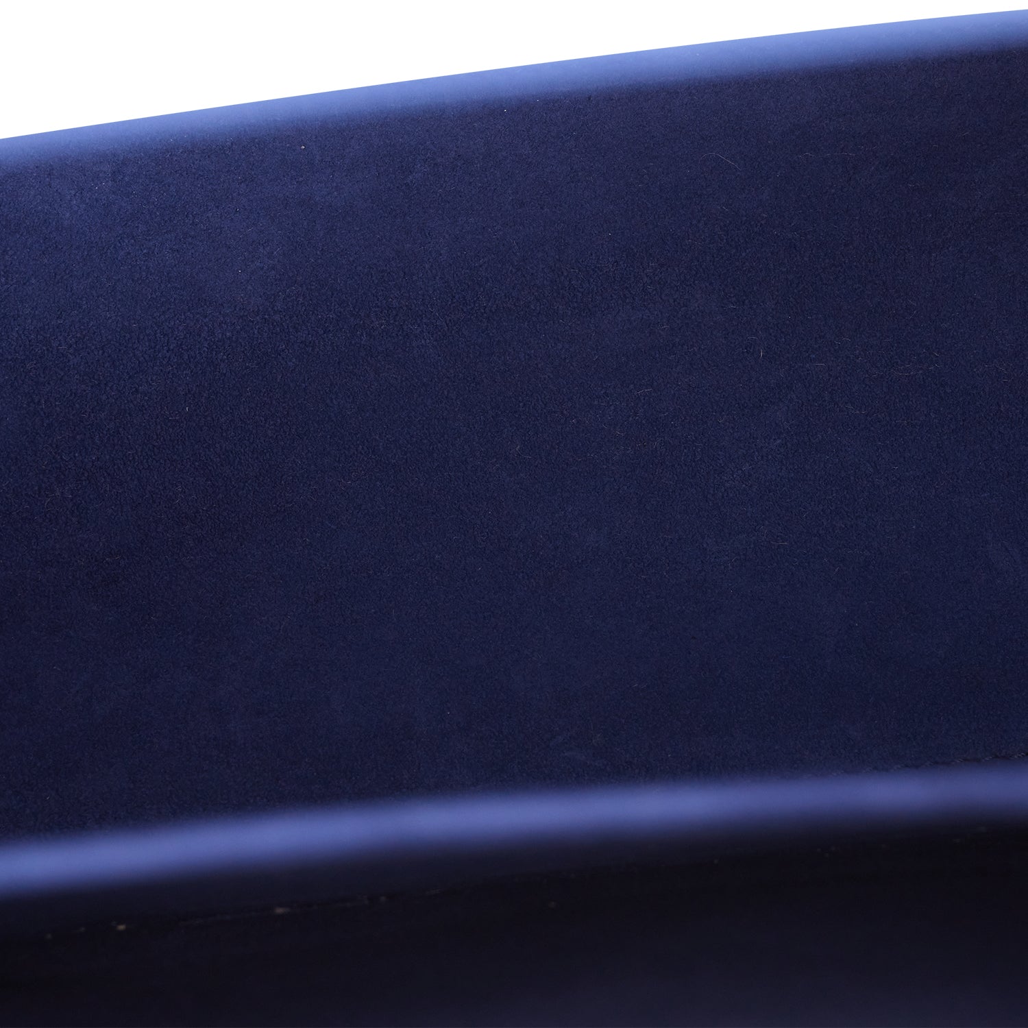The interior is lined in navy fabric and has one pocket on the rear wall.