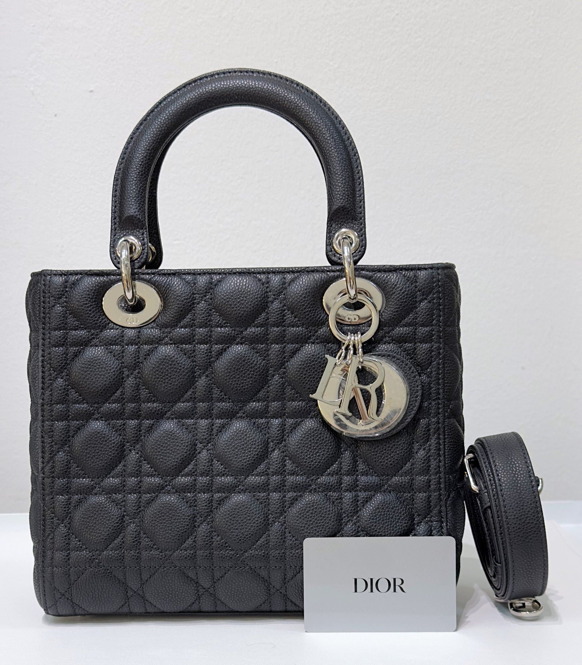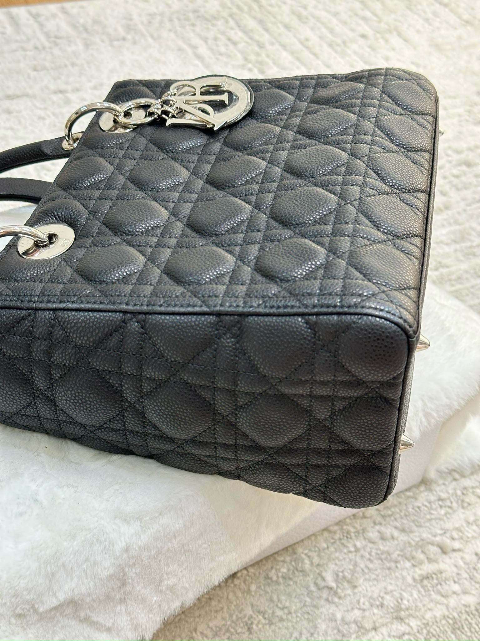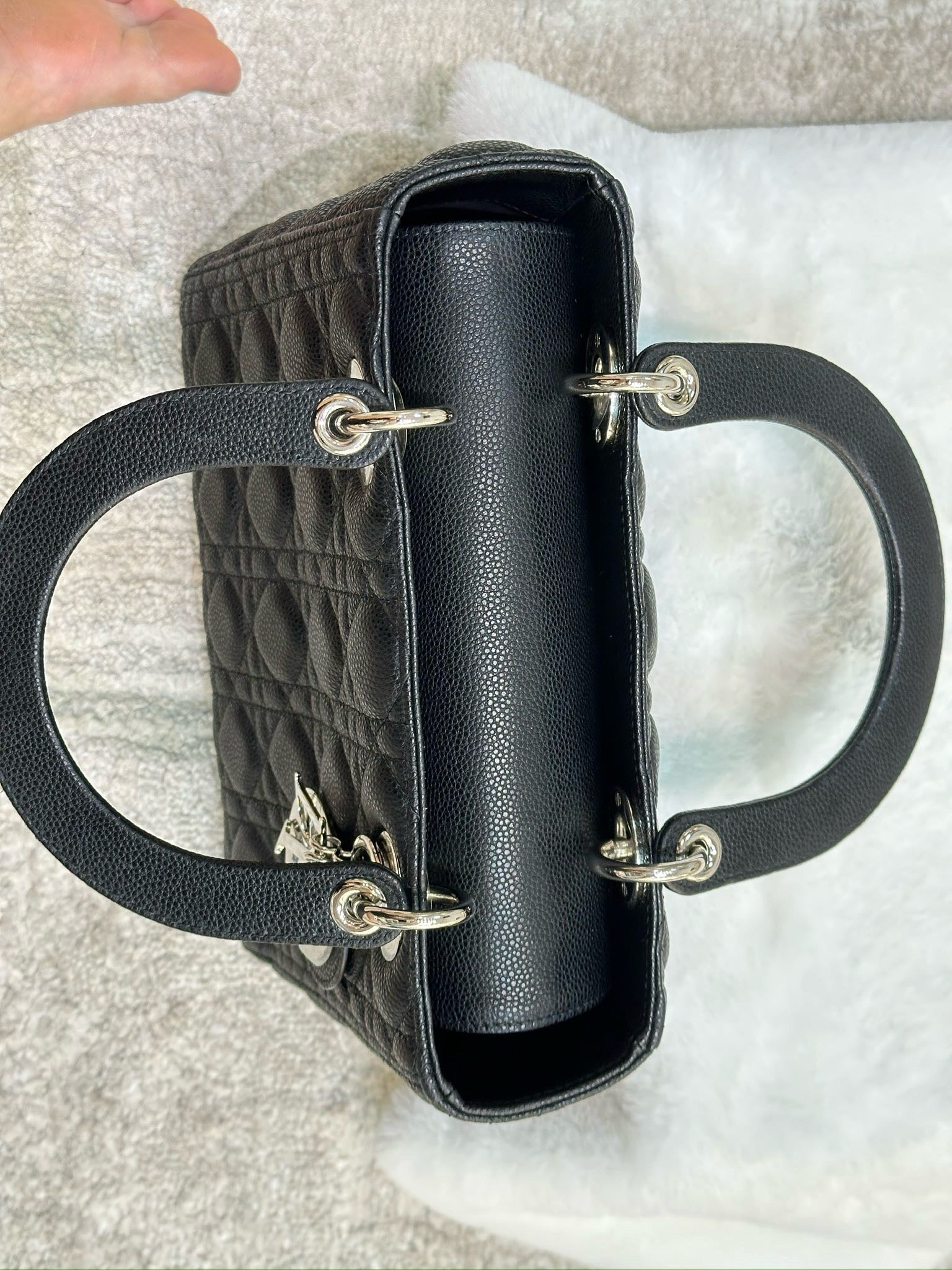 Christian Dior Medium Grained Cannage Calfskin Lady Dior Bag Black SHW