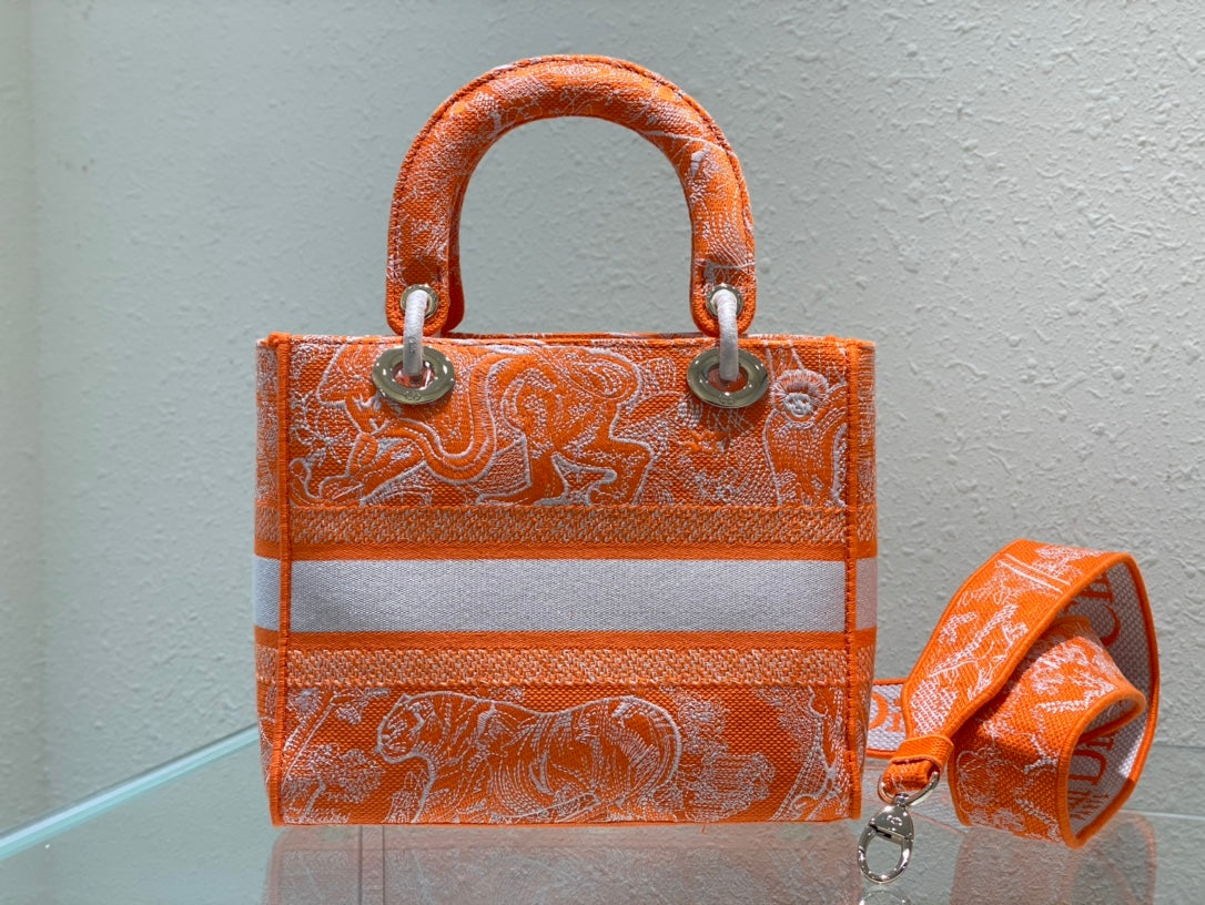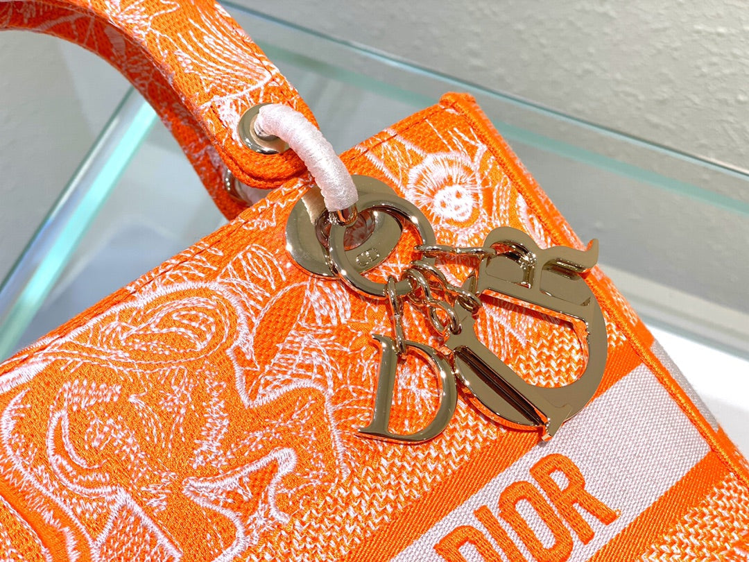 The Lady D-Lite bag combines classic elegance with House modernity. Part of the Dioriviera 'CHRISTIAN DIOR PARIS' signature on the front, while 'D.I.O.R.' charms in pale gold-finish metal enhance and illuminate the silhouette. Equipped with a wide reversible and removable embroidered shoulder strap, the medium Lady D-Lite bag can be carried by hand or crossbody, and can be coordinated with other Dioriviera creations.