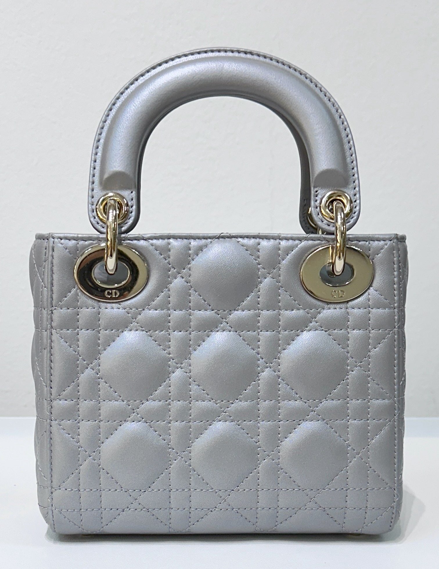 Christian Dior Mini Lambskin Cannage Lady Dior Gray Opaline GHW