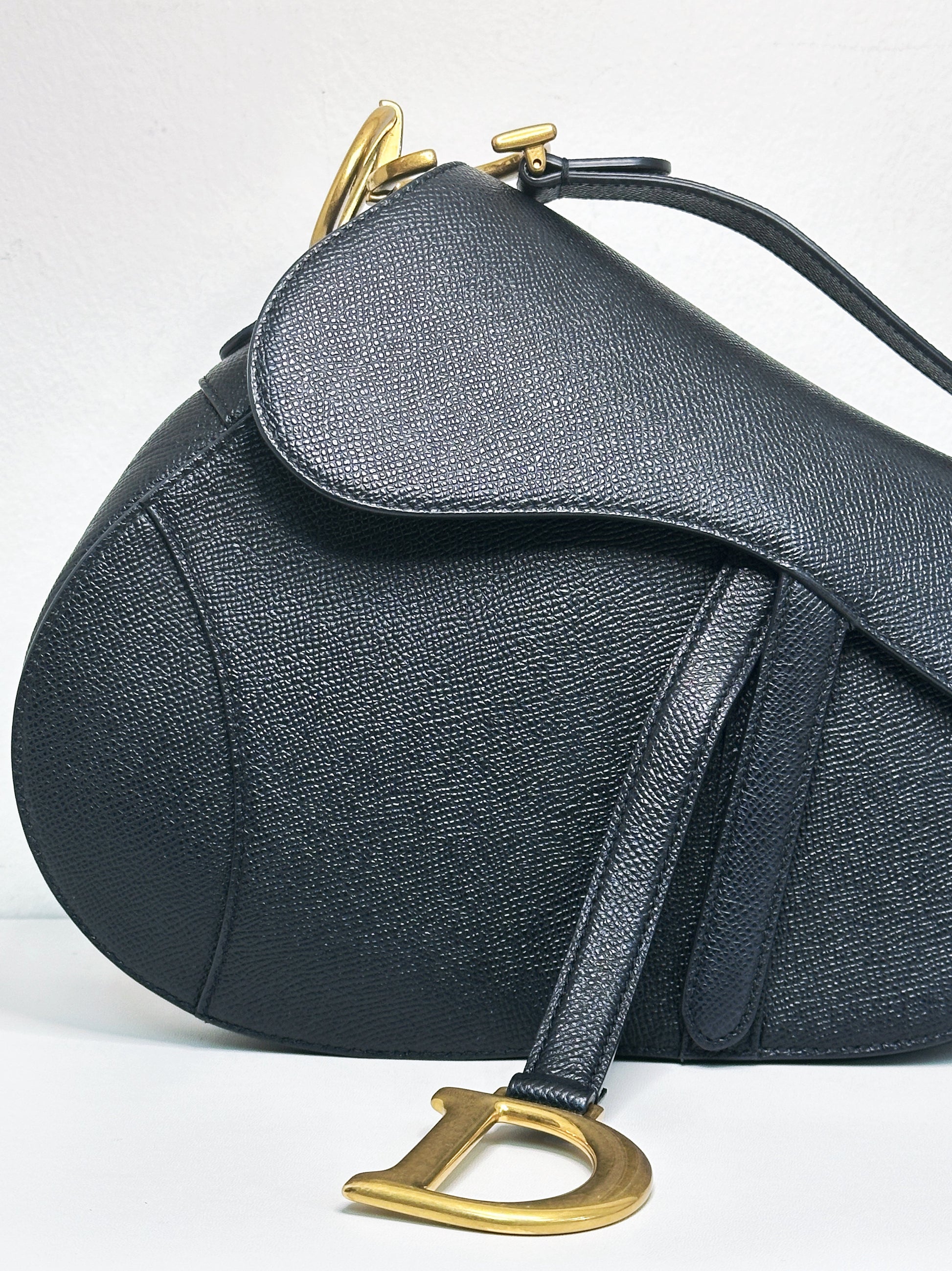 Christian Dior Saddle Bag with Strap Golden Saddle Black Calfskin 2022 year