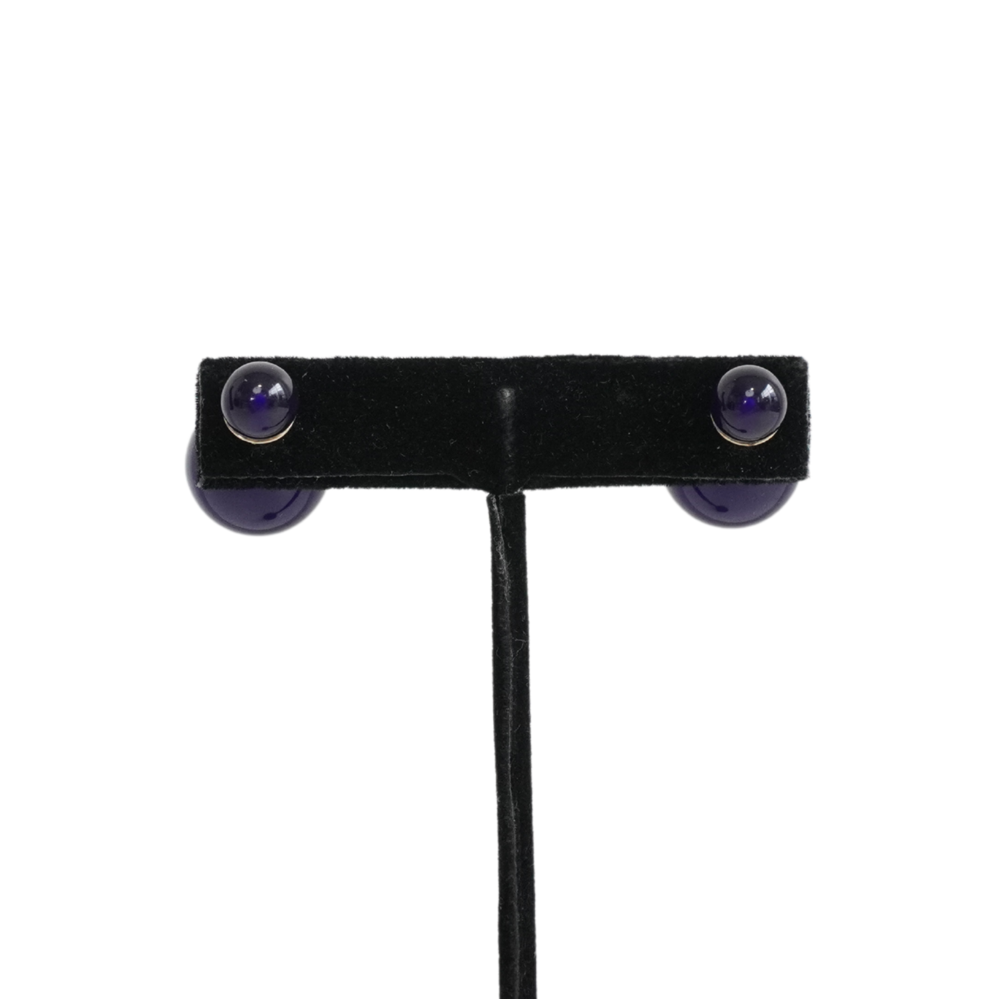 Christian Dior 'Tribale' stud earrings in navy blue faux glass with a large ball stud on the front and smaller ball stud backing.