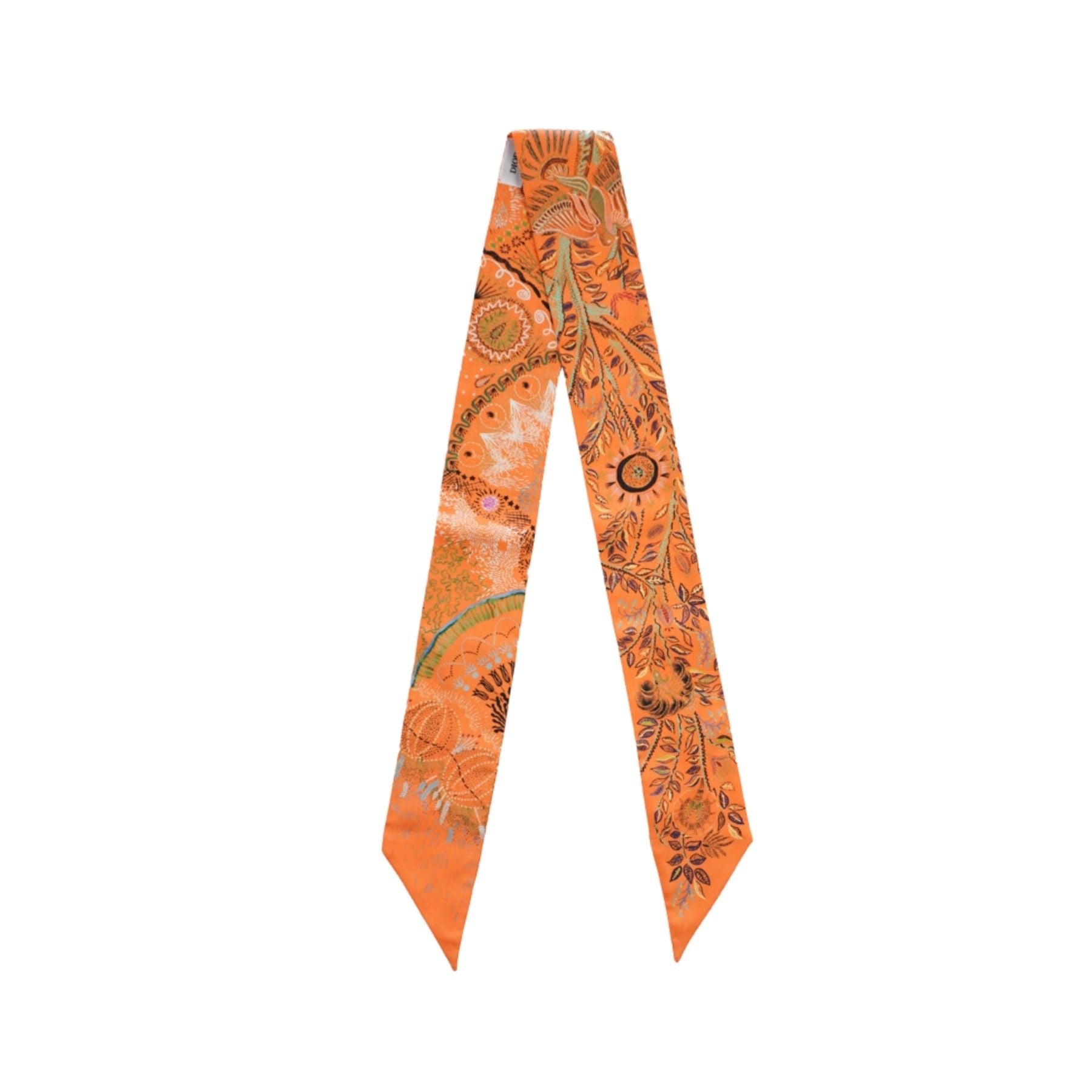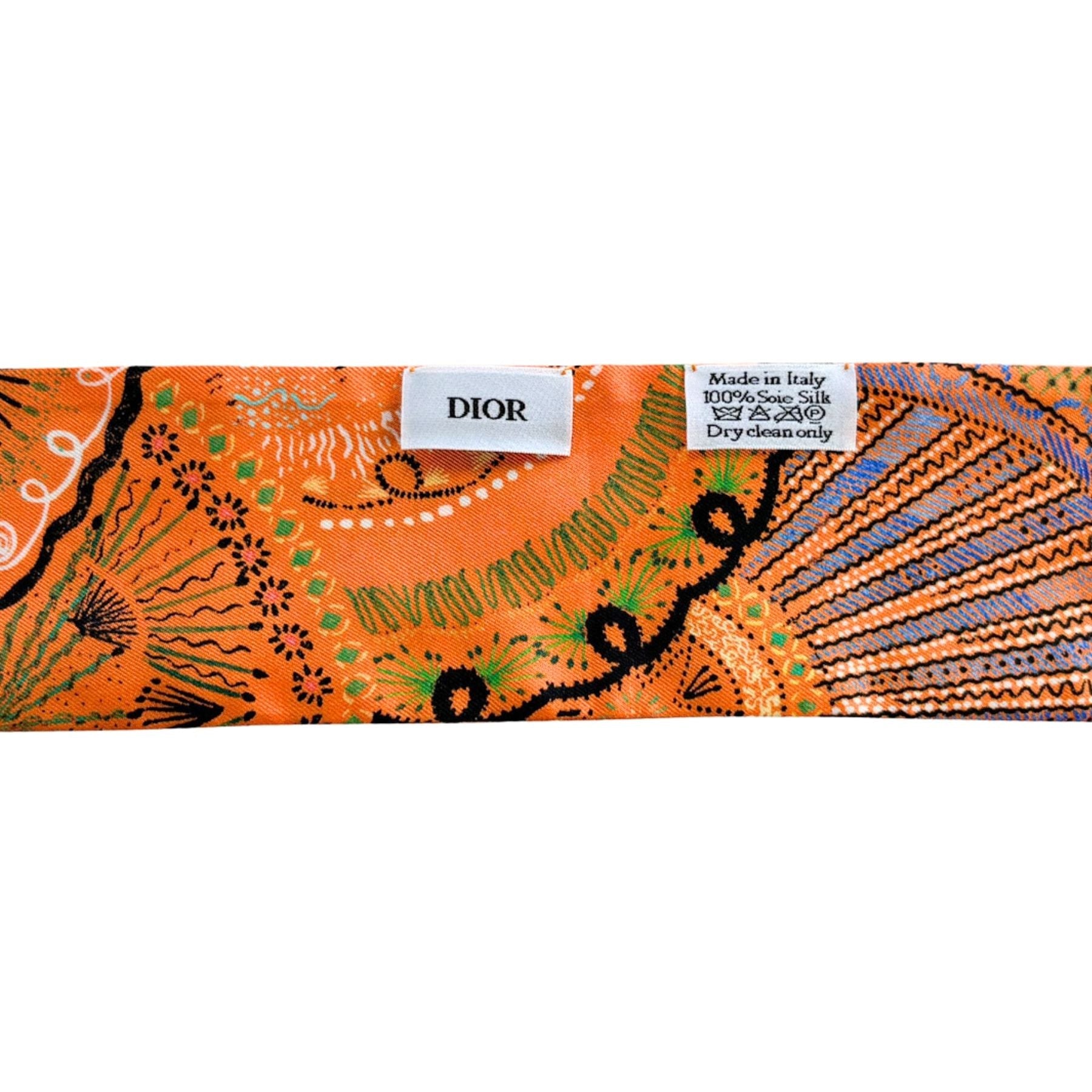 Christian Dior twilly scarf in orange silk with an all-over multicolour floral abstract print.