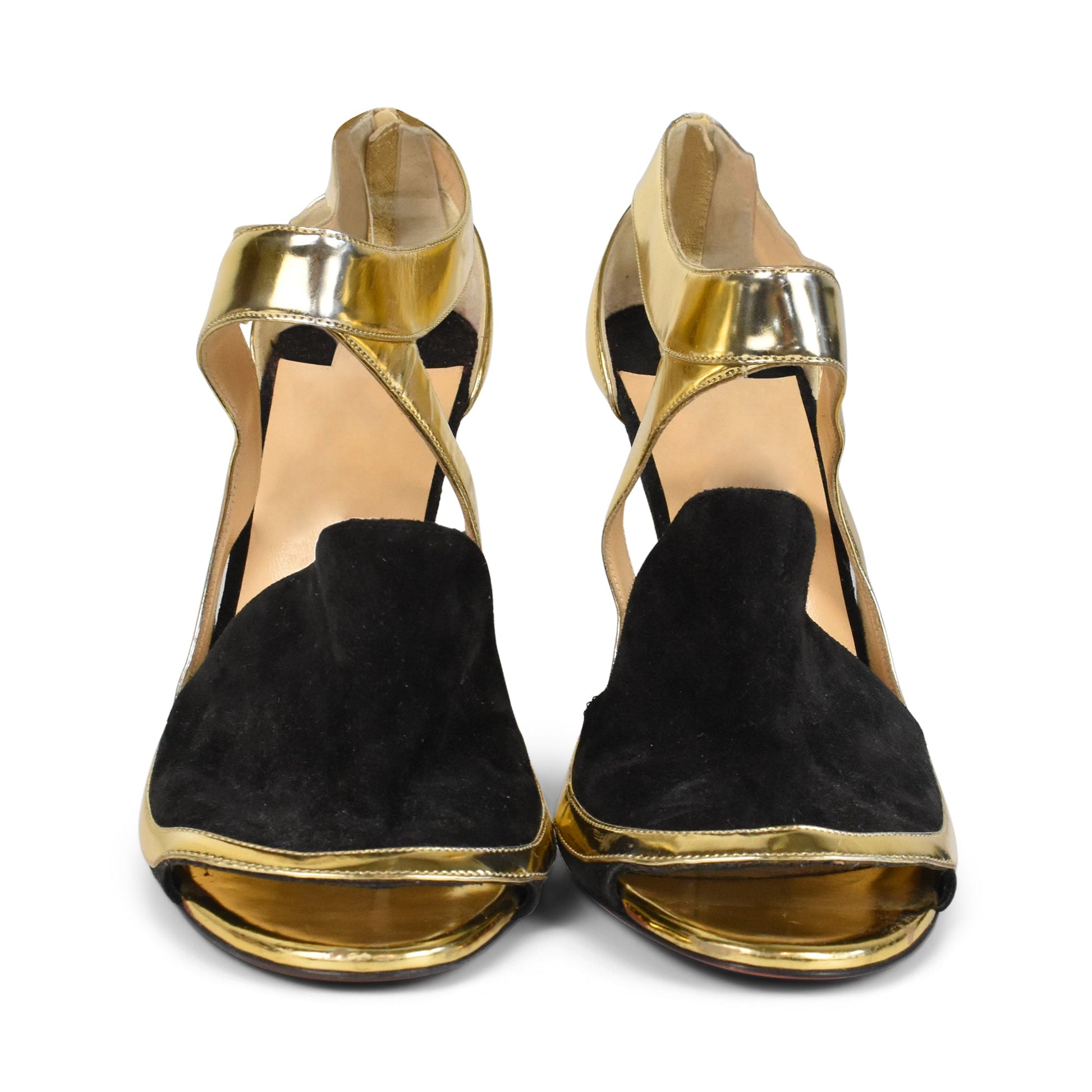 - Condition = 7/10, Good, never worn, wear due to storage, colour fading to gold leather, scratching and scuffing to leather throughout, wear to leather on stiletto heels, warping to leather straps due to storage (does not affect functionality when worn)