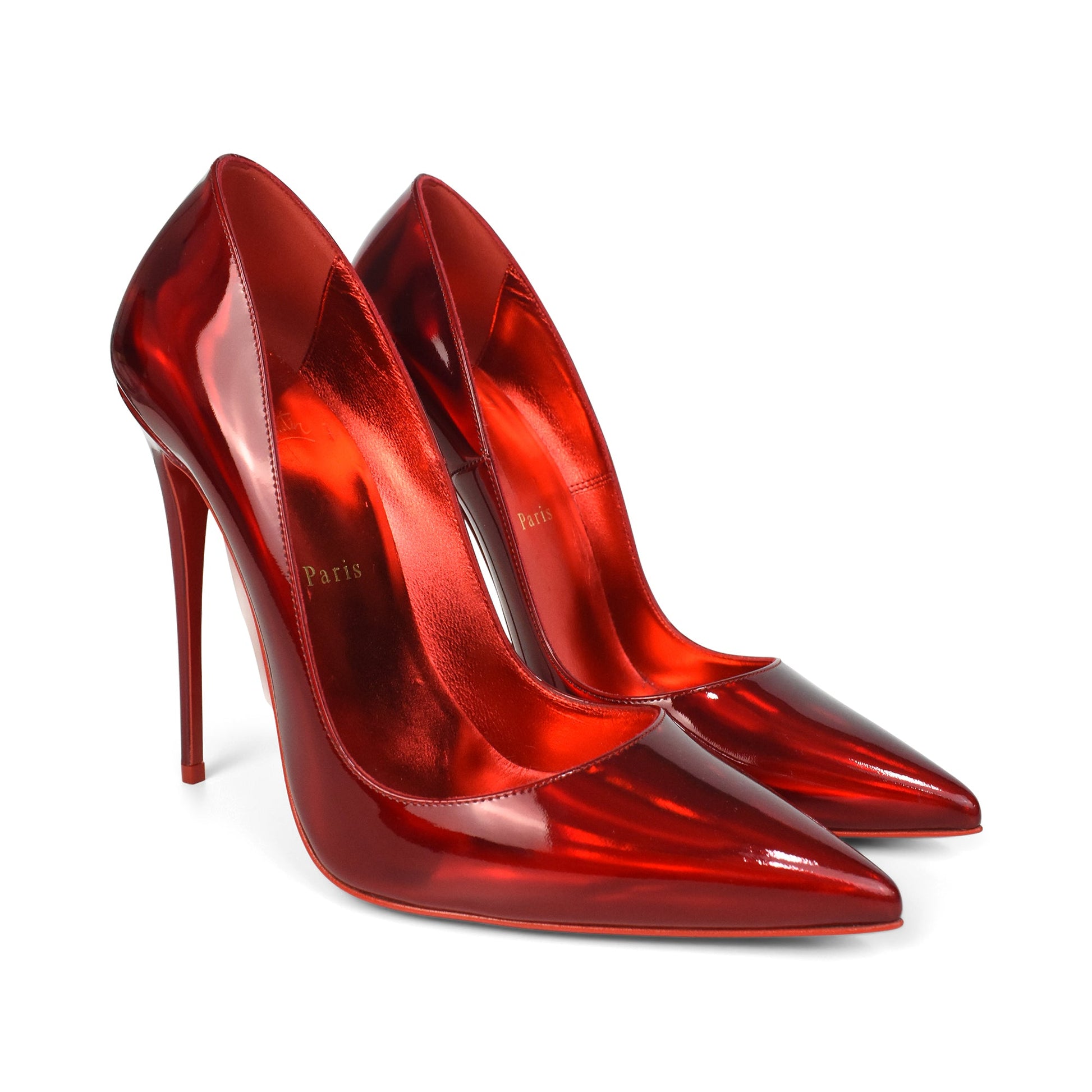 Christian Louboutin 'So Kate 100' pumps in red holographic patent leather with a stiletto heel and a pointed toe.
