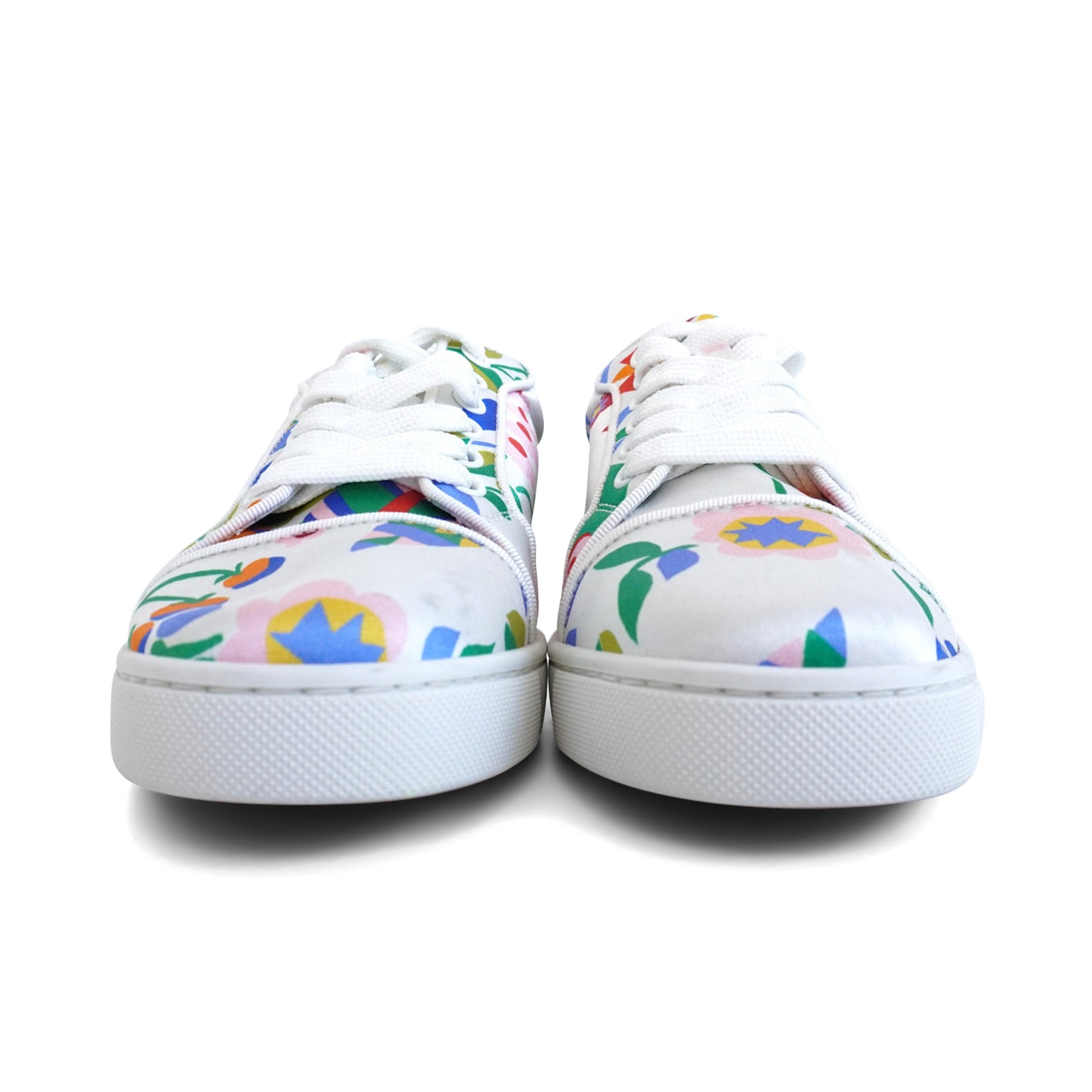 Christian Louboutin 'Vieira' low top sneakers in white satin with multicolour floral print and white grosgrain piping.