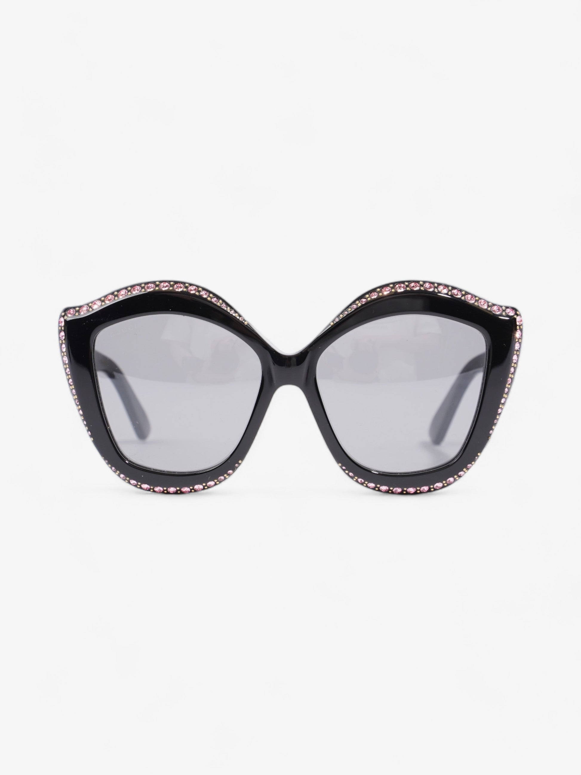 Gucci Crystal Cat Eye Sunglasses Black / Pink Acetate 140mm