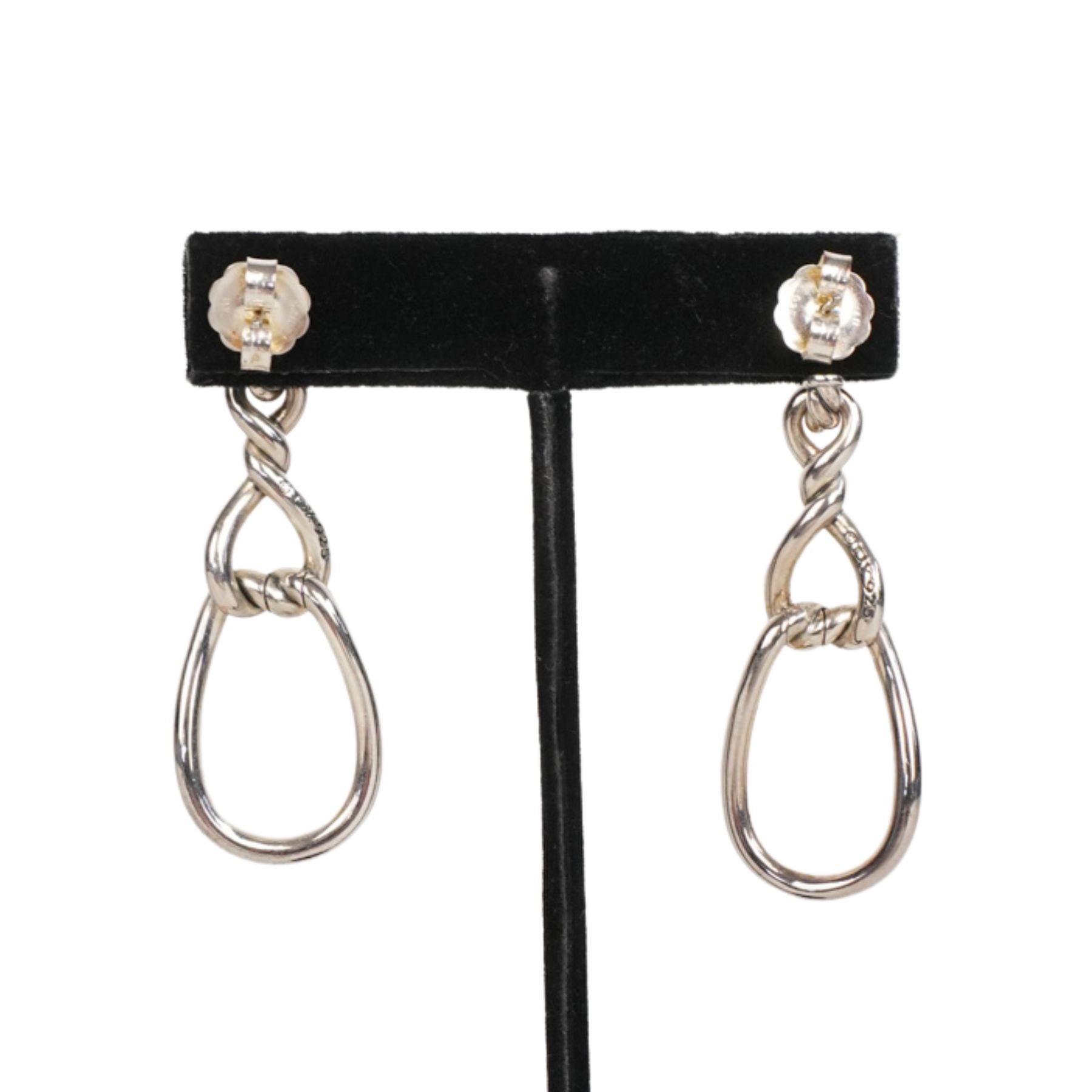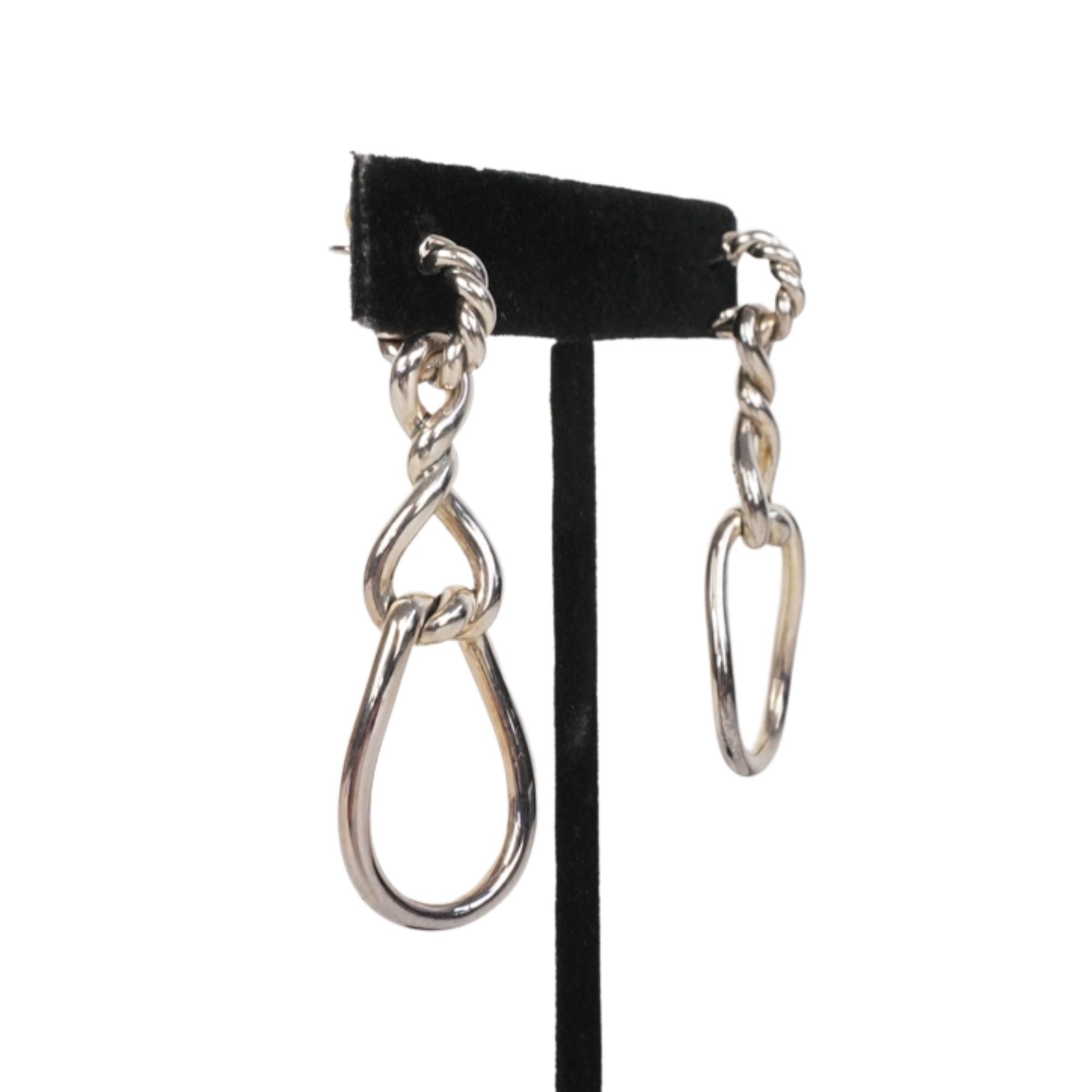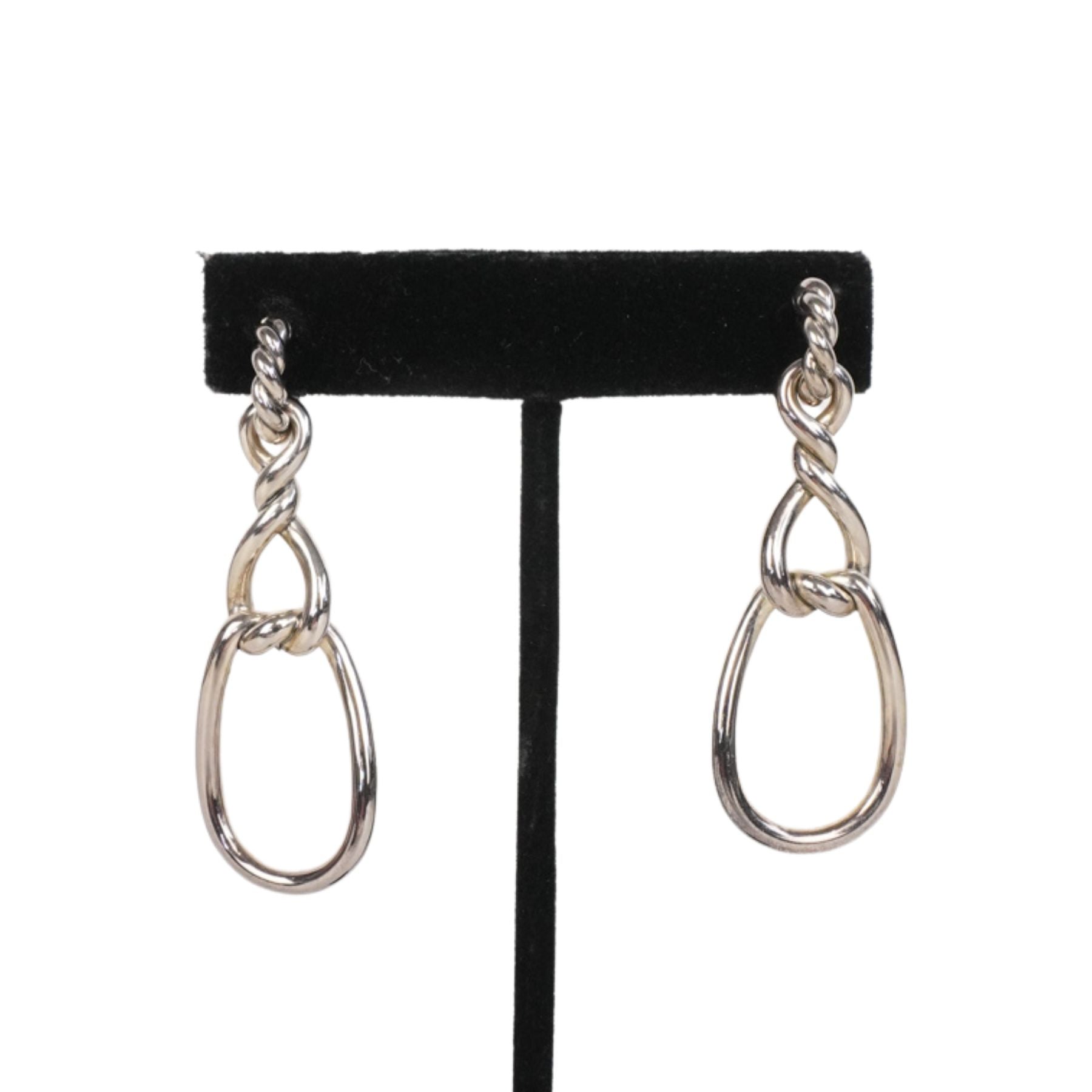 David Yurman 'Continuance Triple' drop earrings in sterling silver. Feature a twisted hoop stud with twisted pendant.