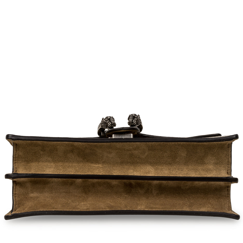 Inspired by the Greek God of wine and celebration, the Gucci Dionysus is an absolute must have for any woman with a love for luxury and a special spot for monograms. An instant classic, the Dionysus has become one of the most coveted bags of the past five years. The perfect companion for any and every occasion, you can easily pair your Dionysus with anything in your wardrobe. Decorated with the GG Supreme print and the signature tiger clasp, this shoulder bag can easily fit all your every day essentials comfortably inside. Sleek, stylish and sophisticated, this stunning bag is the perfect balance between feminine and edgy. A classic piece you'll have for life, the Dionysus is one you'll never fall out of love with.