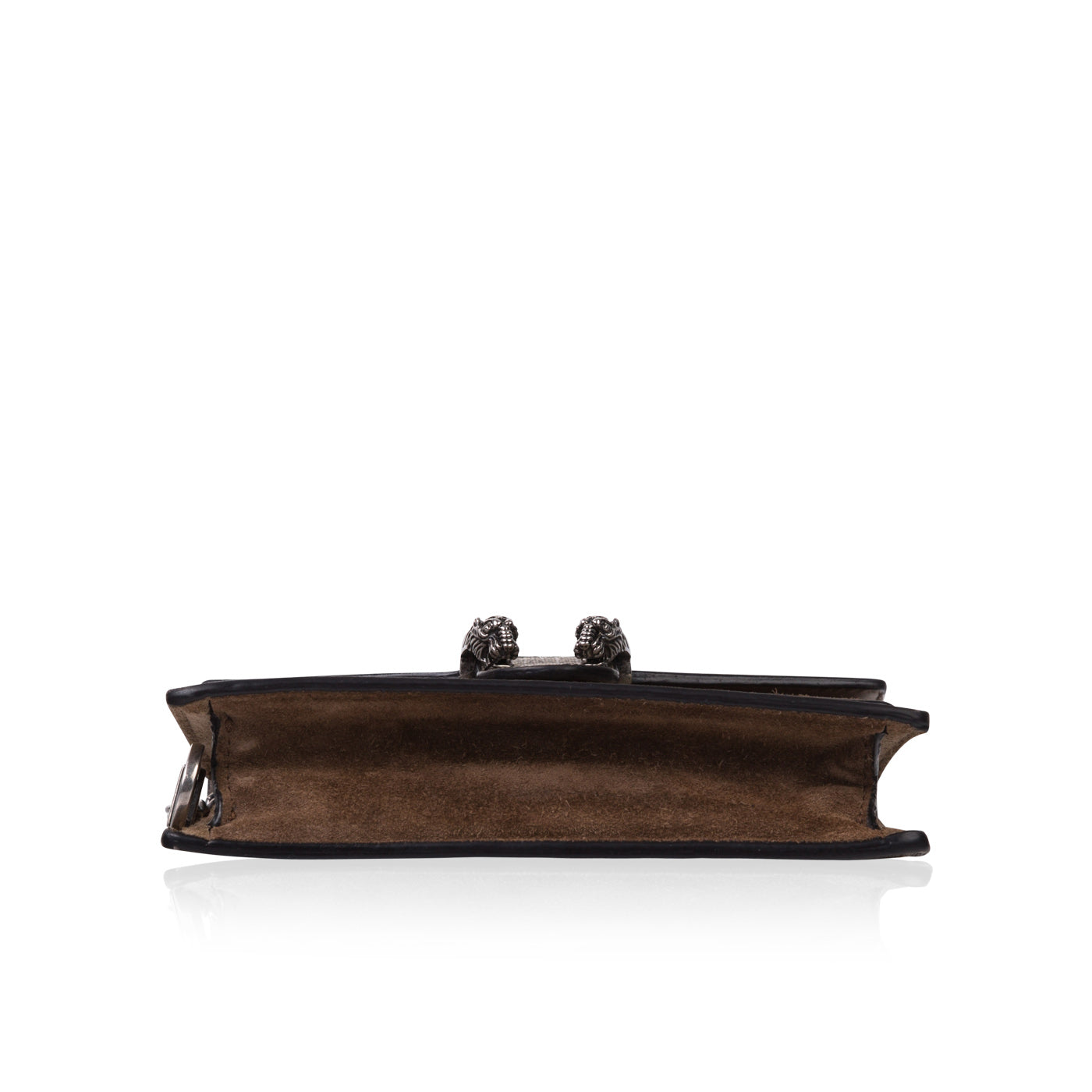 Inspired by the Greak God of wine and celebration, Dionysus. The Dionysus collection by Gucci are perfect bags to take out for special occasions. Decorated with the GG Supreme print and the unique tiger head spur closure – exclusive to the Dionysus collection. This mini bag comes with a key chain to attach any accessory or any bag. The shoulder chain has a drop of 60 cm, perfect for cross body and over the shoulder use. Style this bag with a Gucci T shirt and jeans for a casual look, or a dark shaded dress and heels for evening wear and partying.