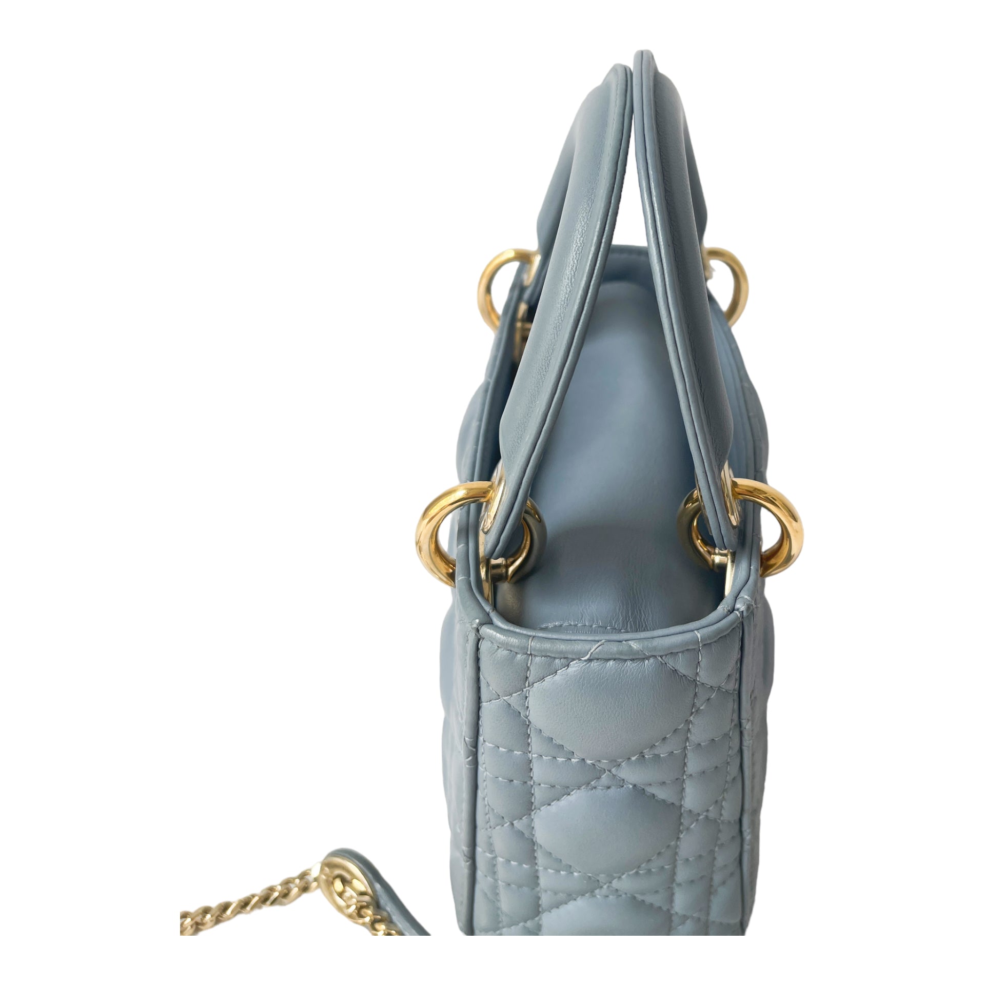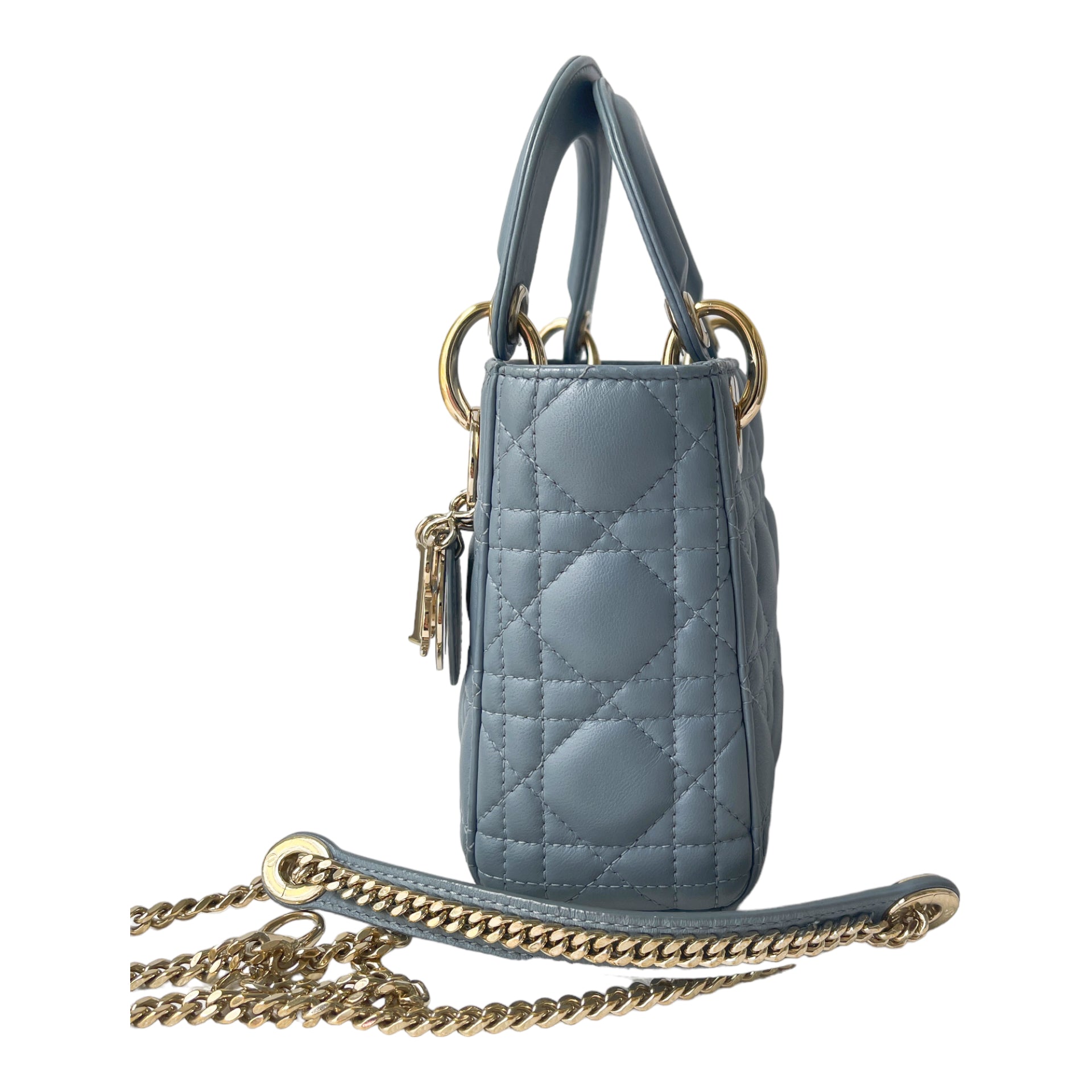 Christian Dior Calfskin Cannage Mini Lady Dior Sky Blue