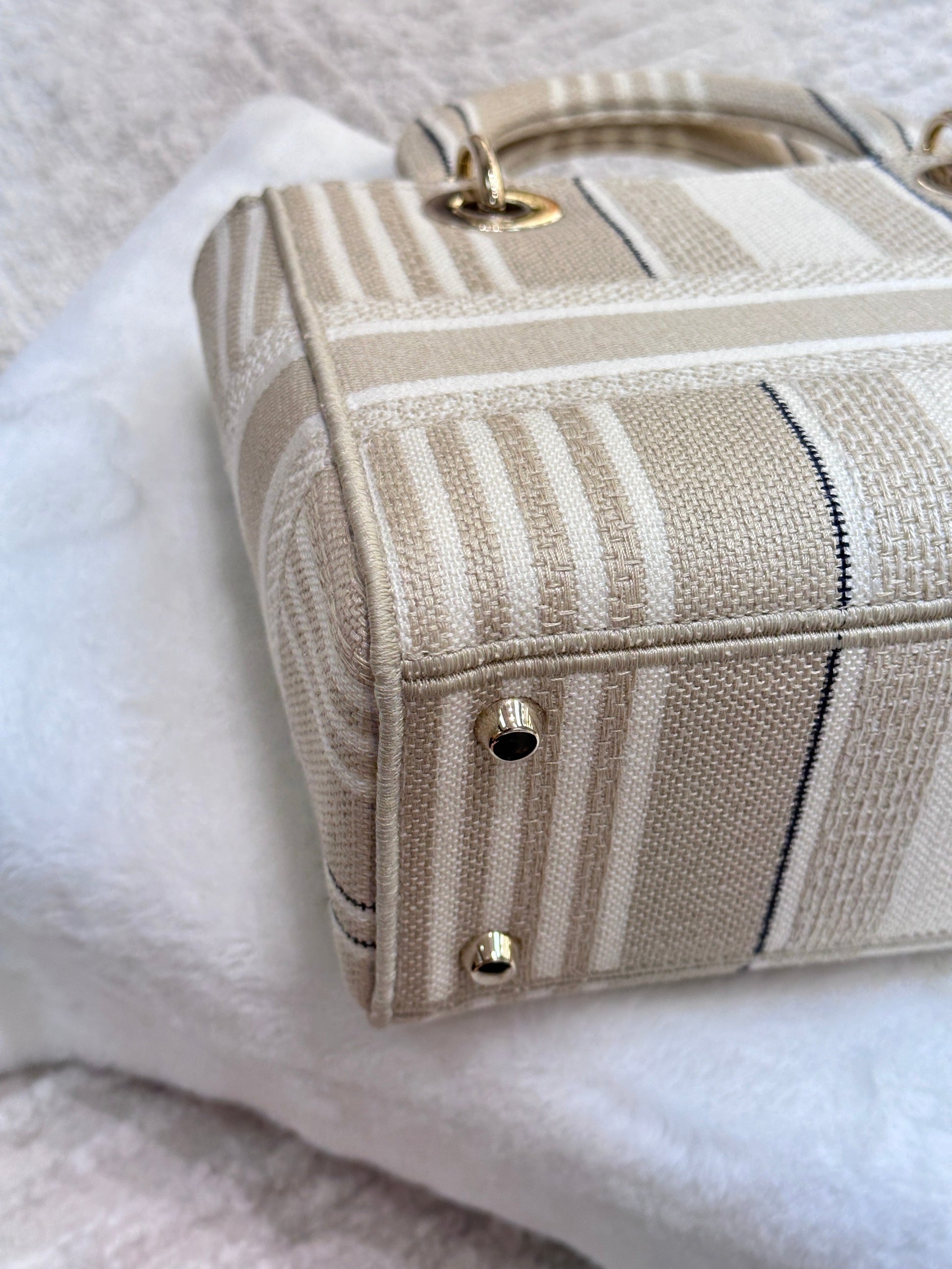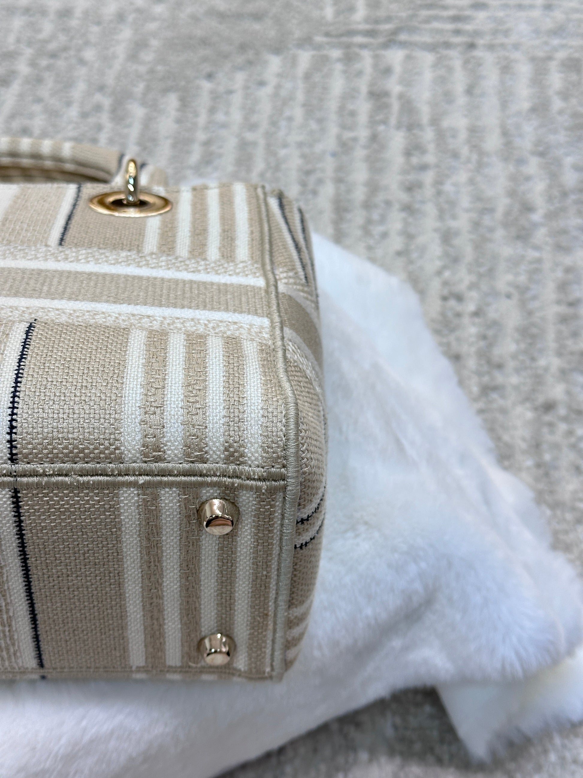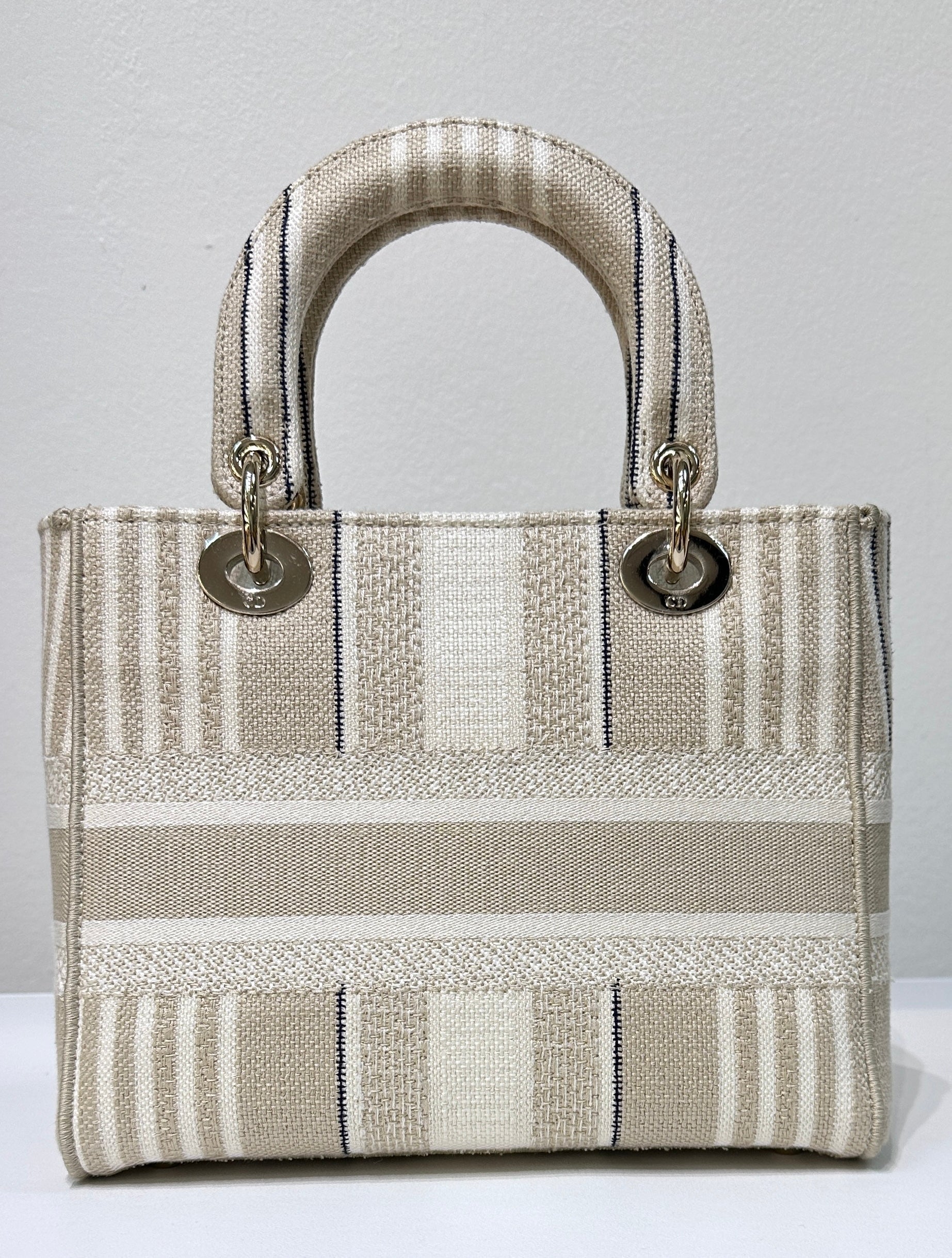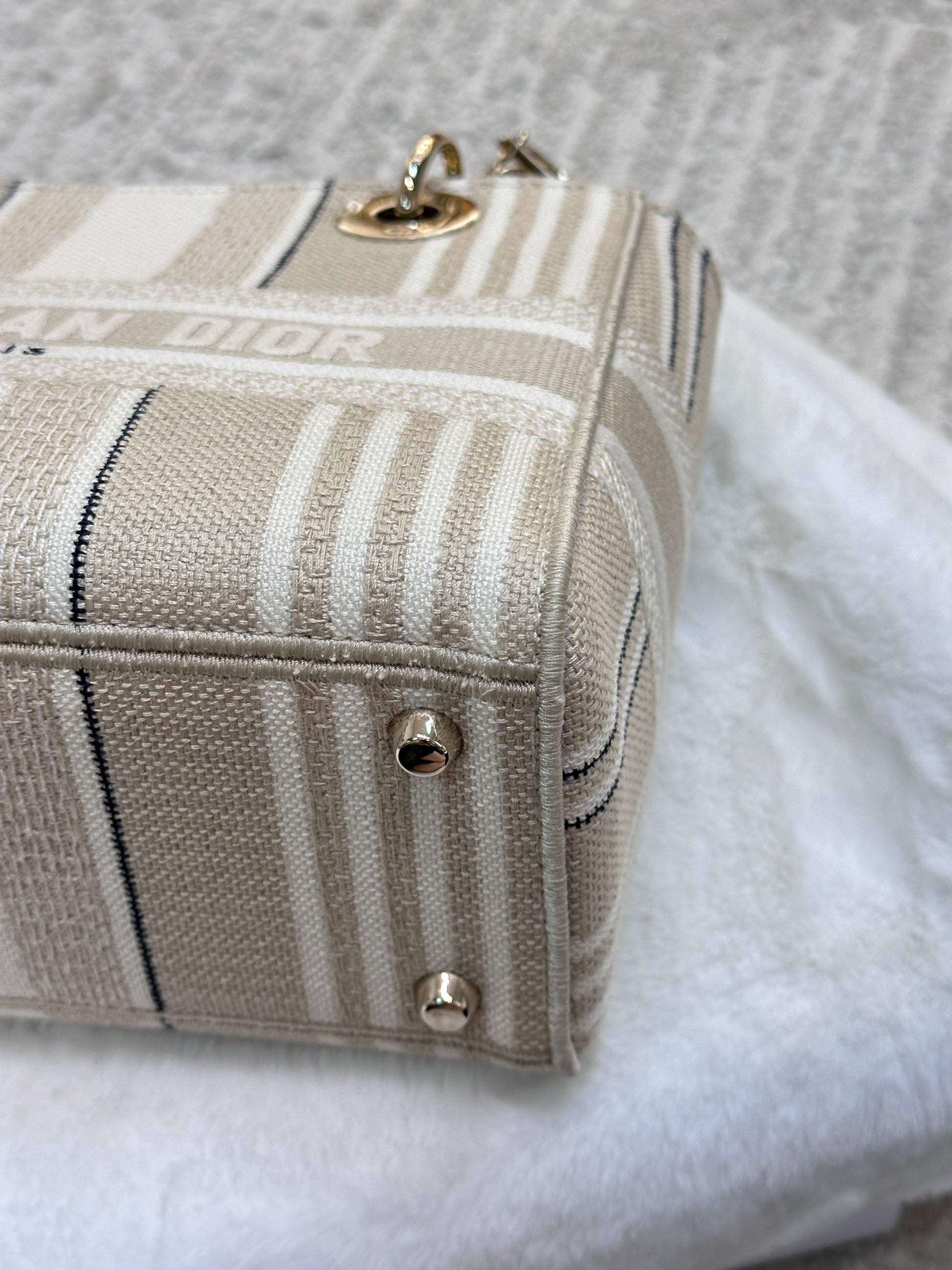 Dior Beige/White Medium Canvas Striped Lady D-Lite