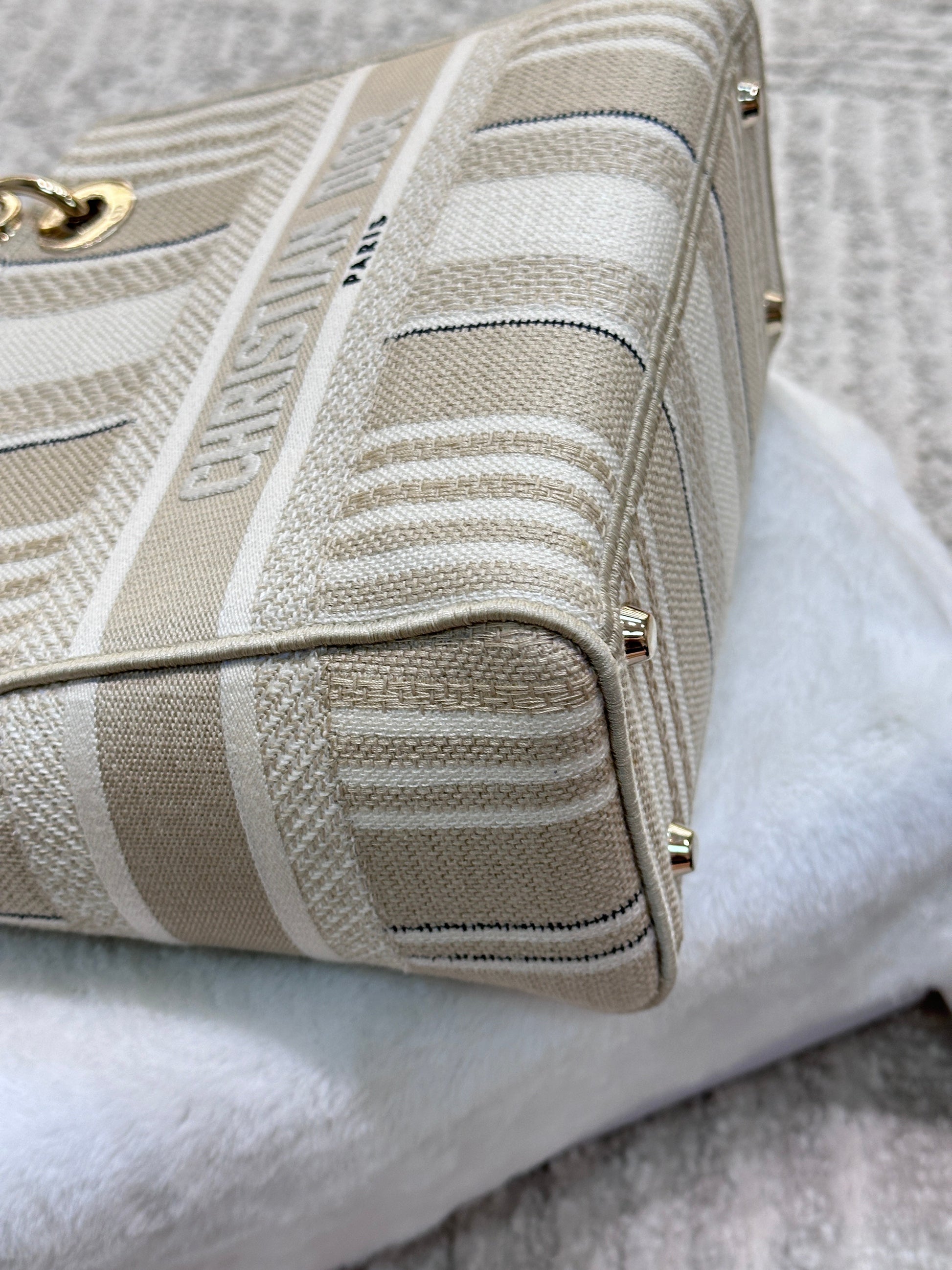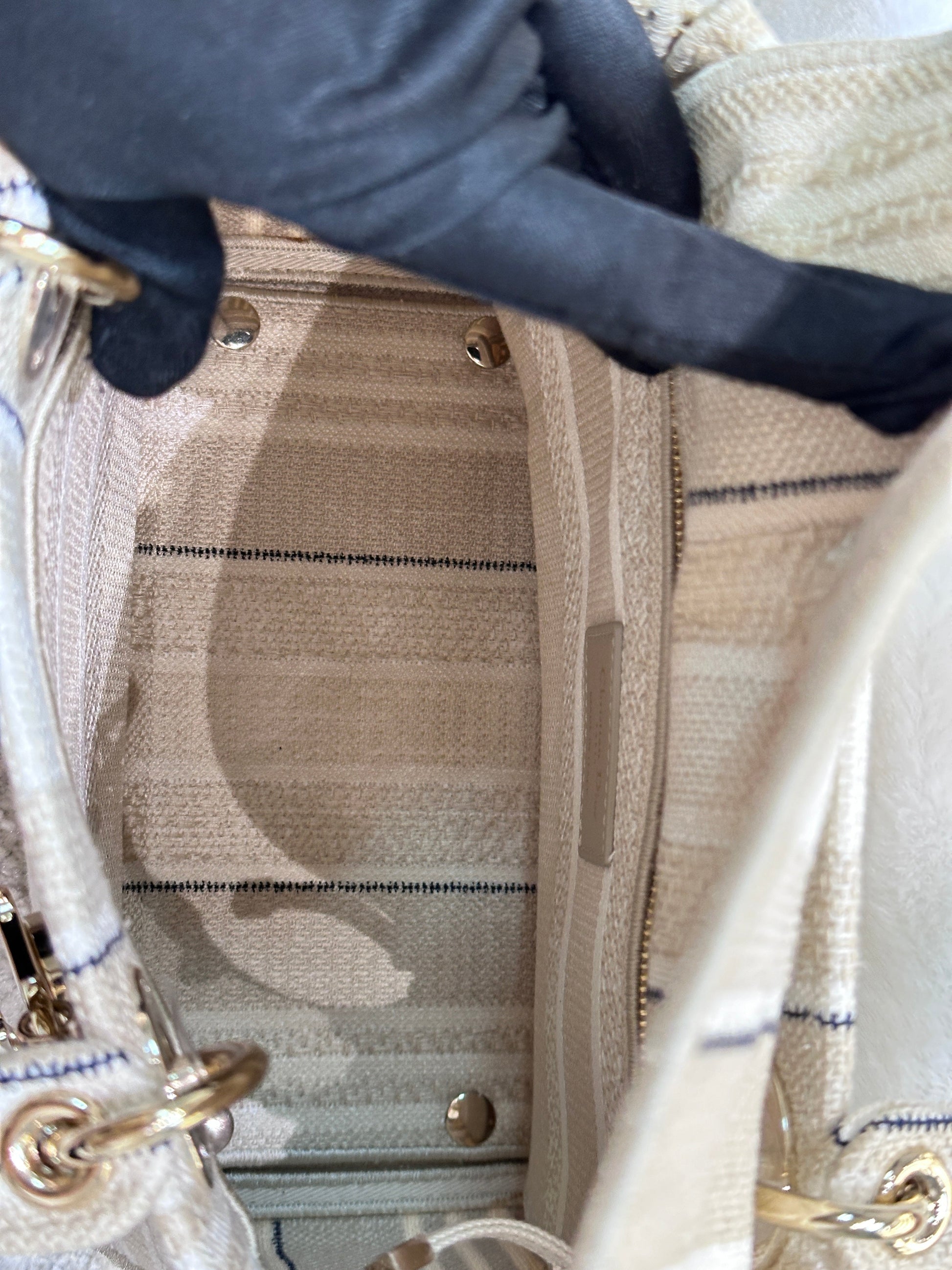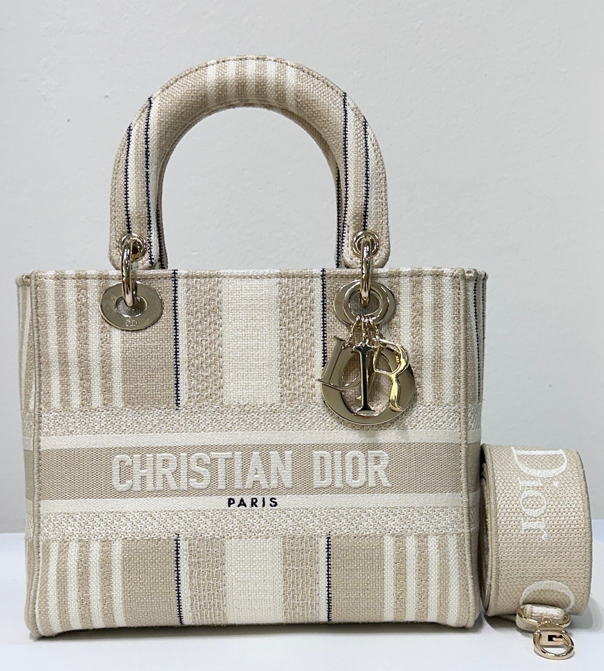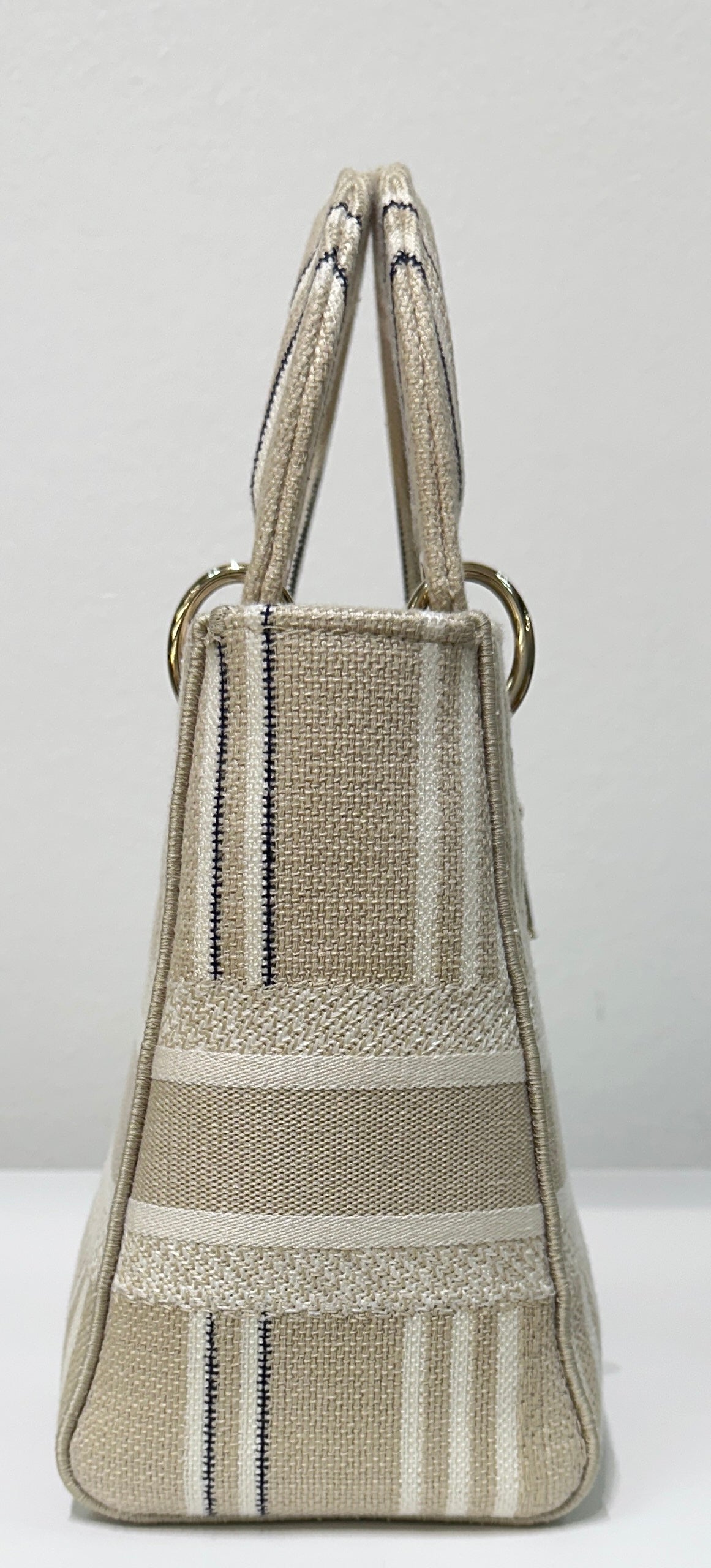 Dior Beige/White Medium Canvas Striped Lady D-Lite