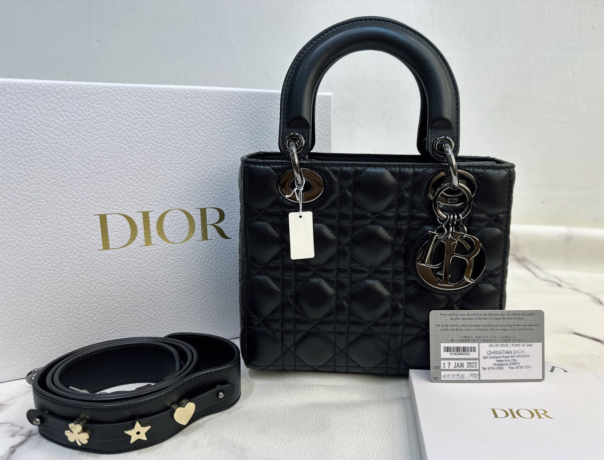 DIOR Lambskin Cannage Small Lucky Badges My Lady Dior Black