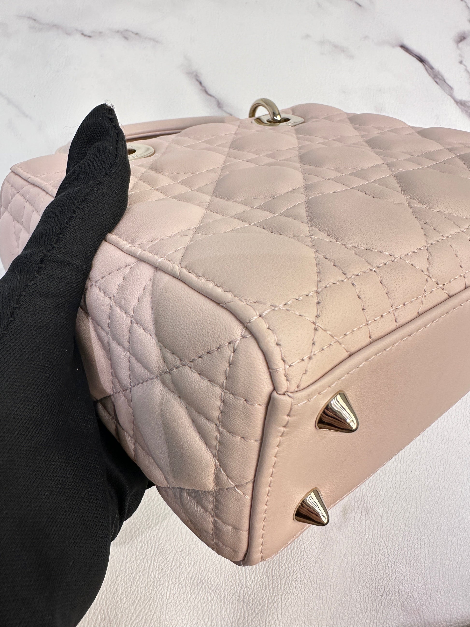 DIOR Lambskin Cannage Small Lucky Badges My Lady Dior Pink
