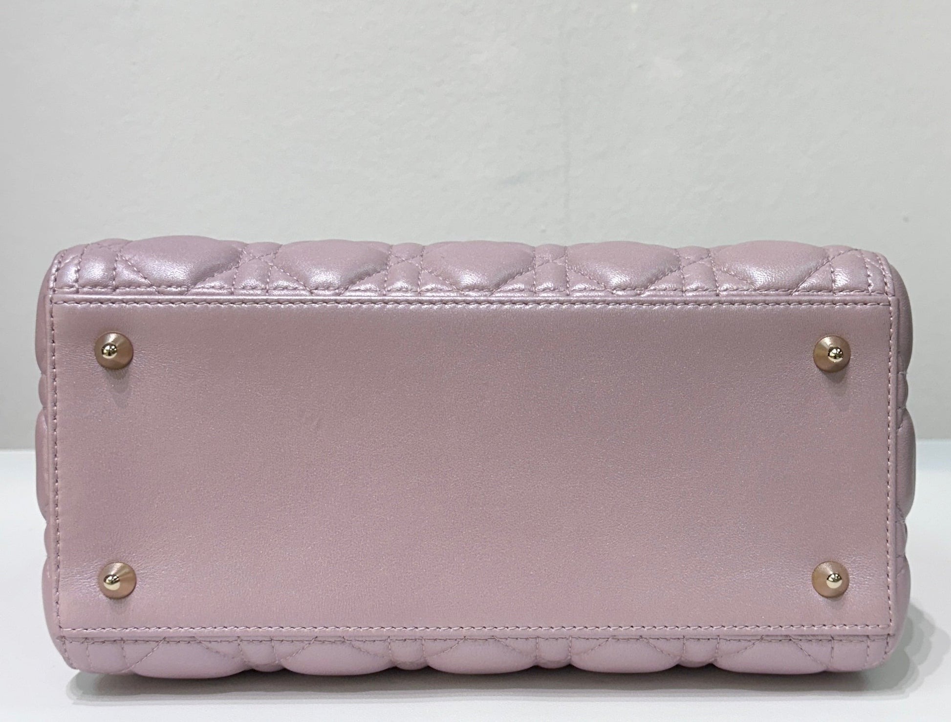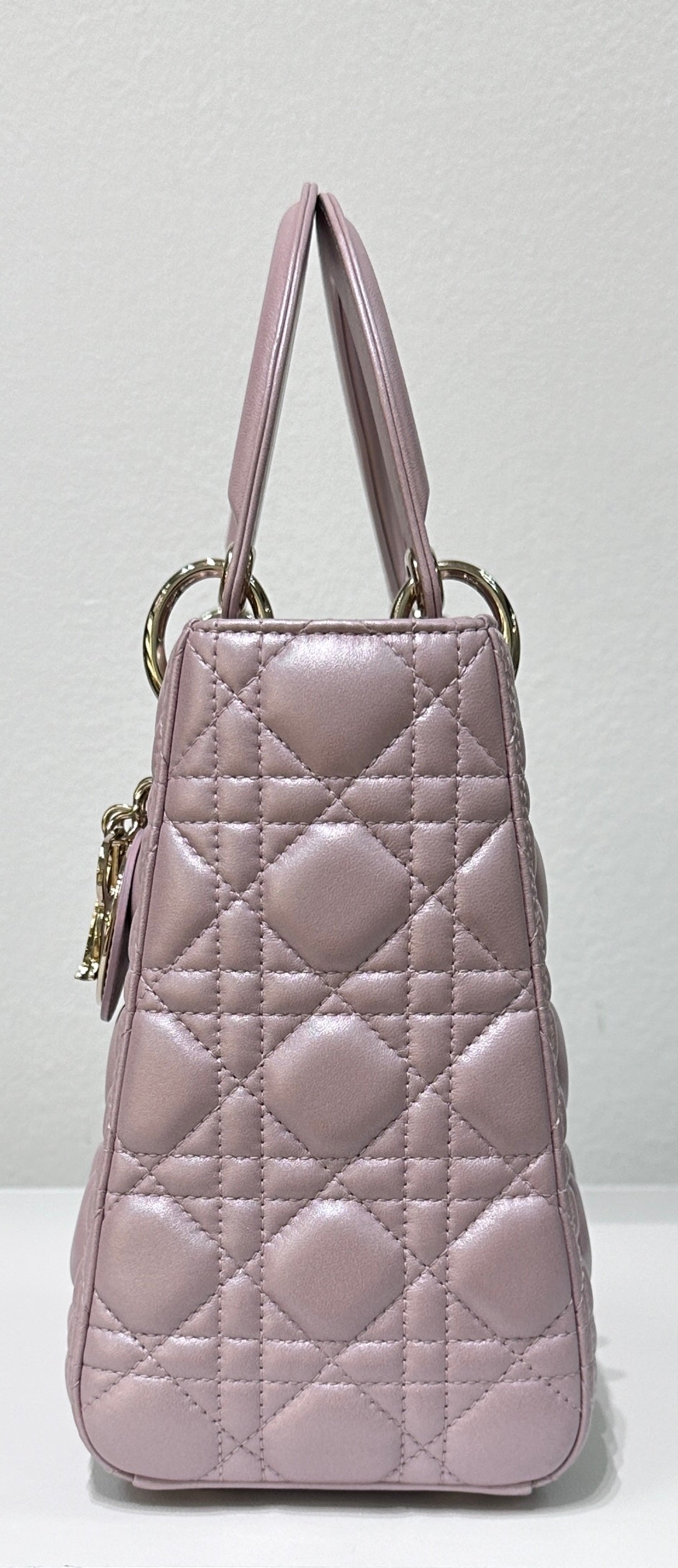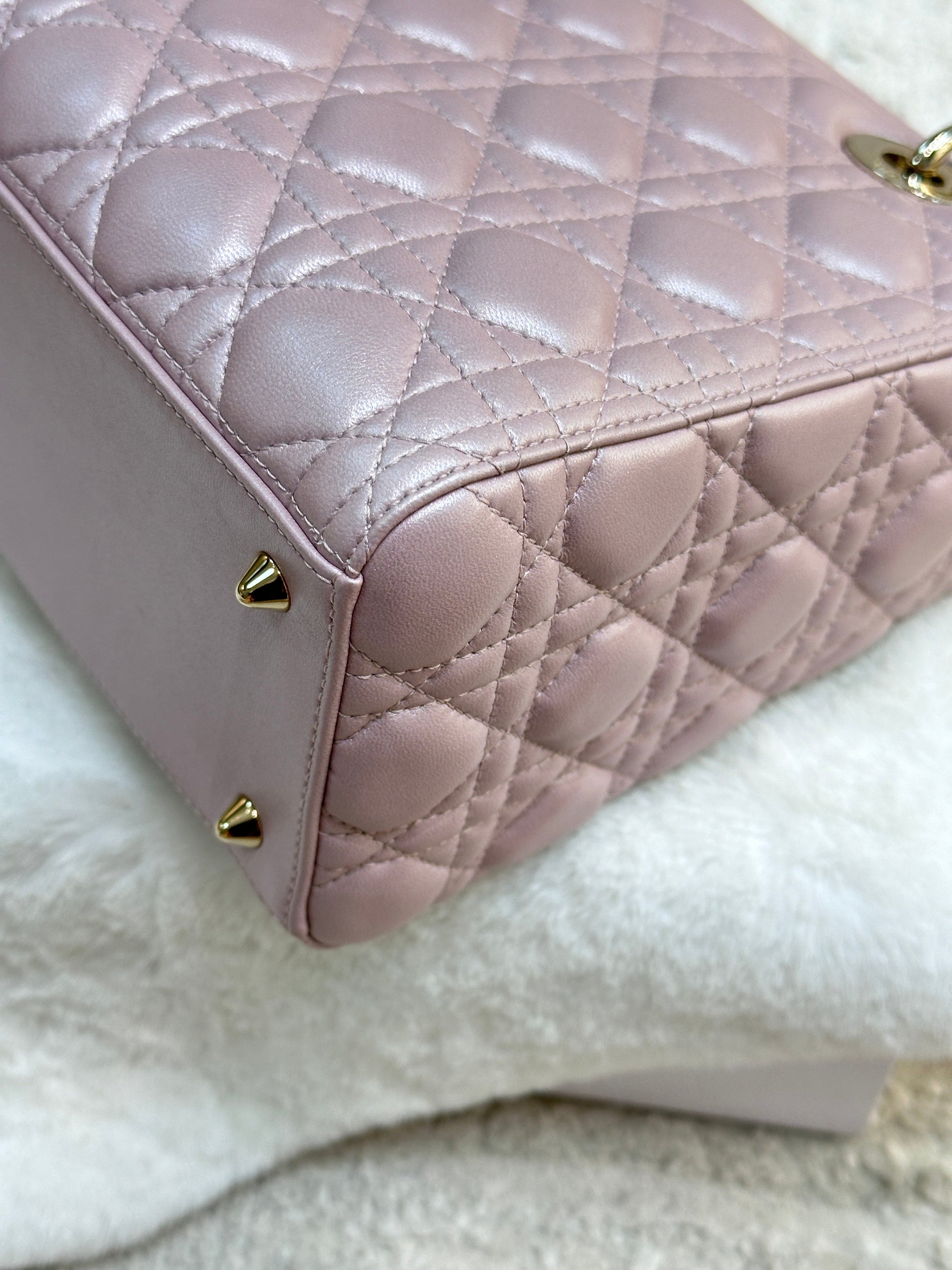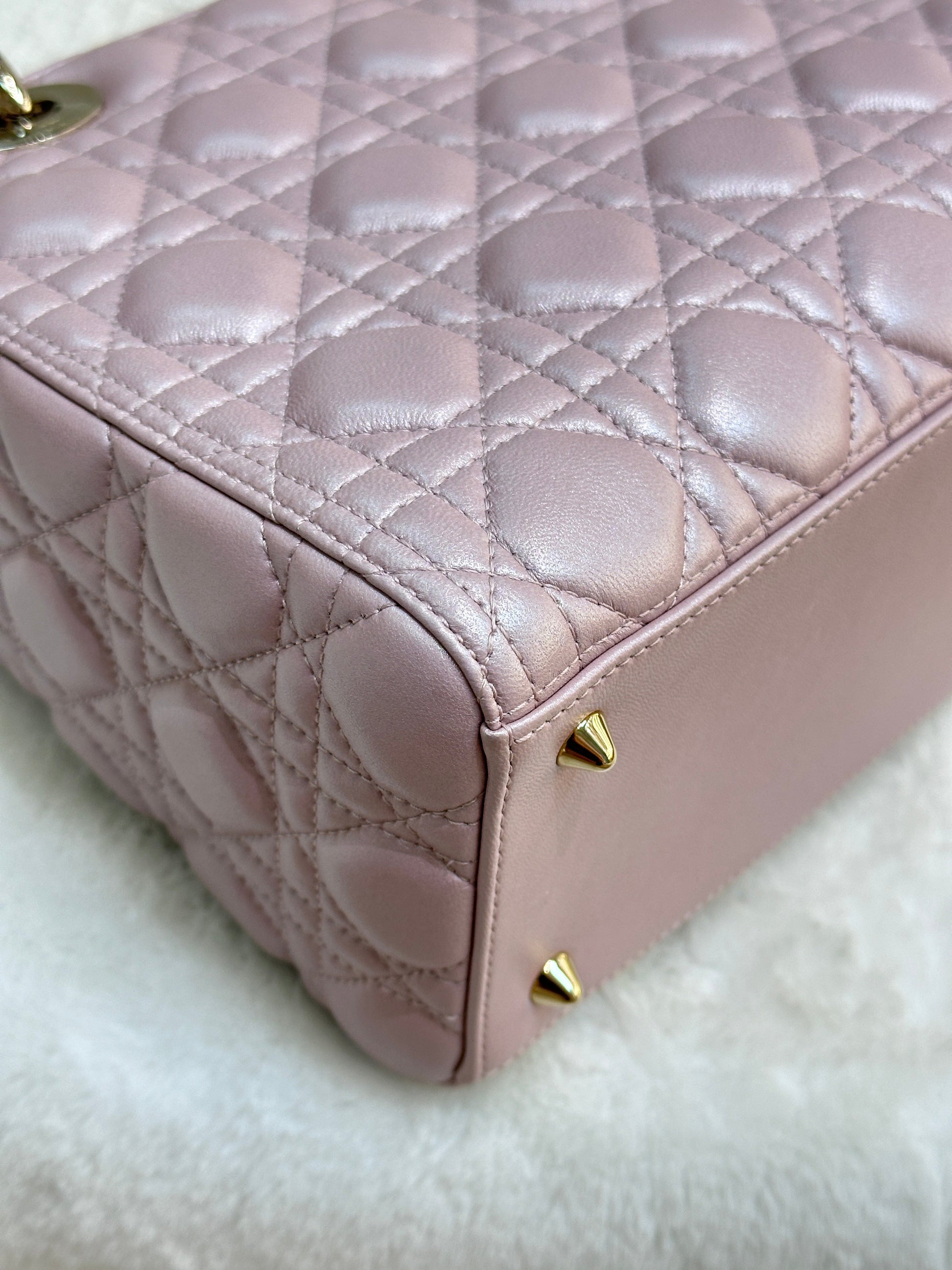 Dior Medium Lady Dior in Pearly Lotus Pink Lambskin GHW
