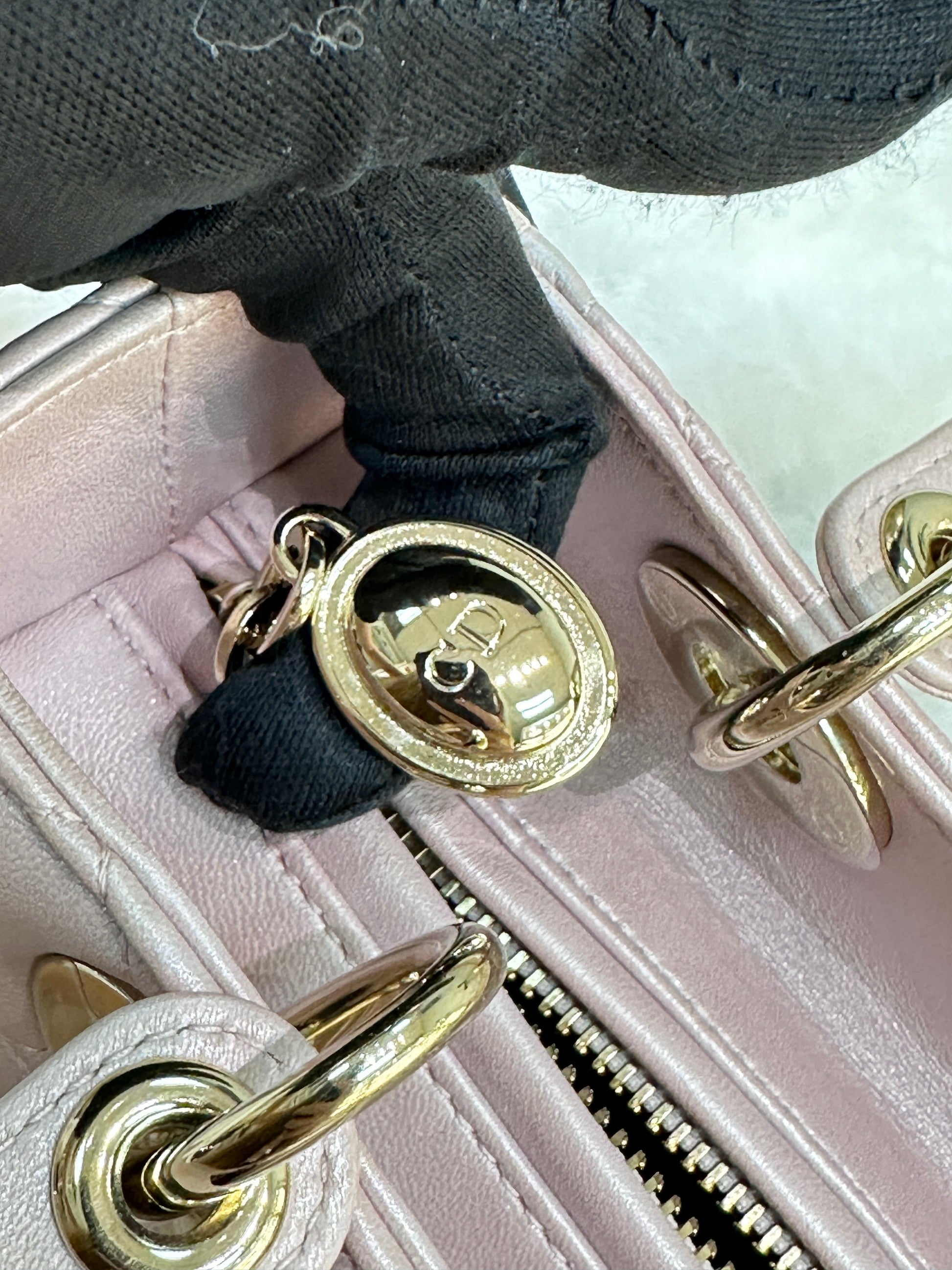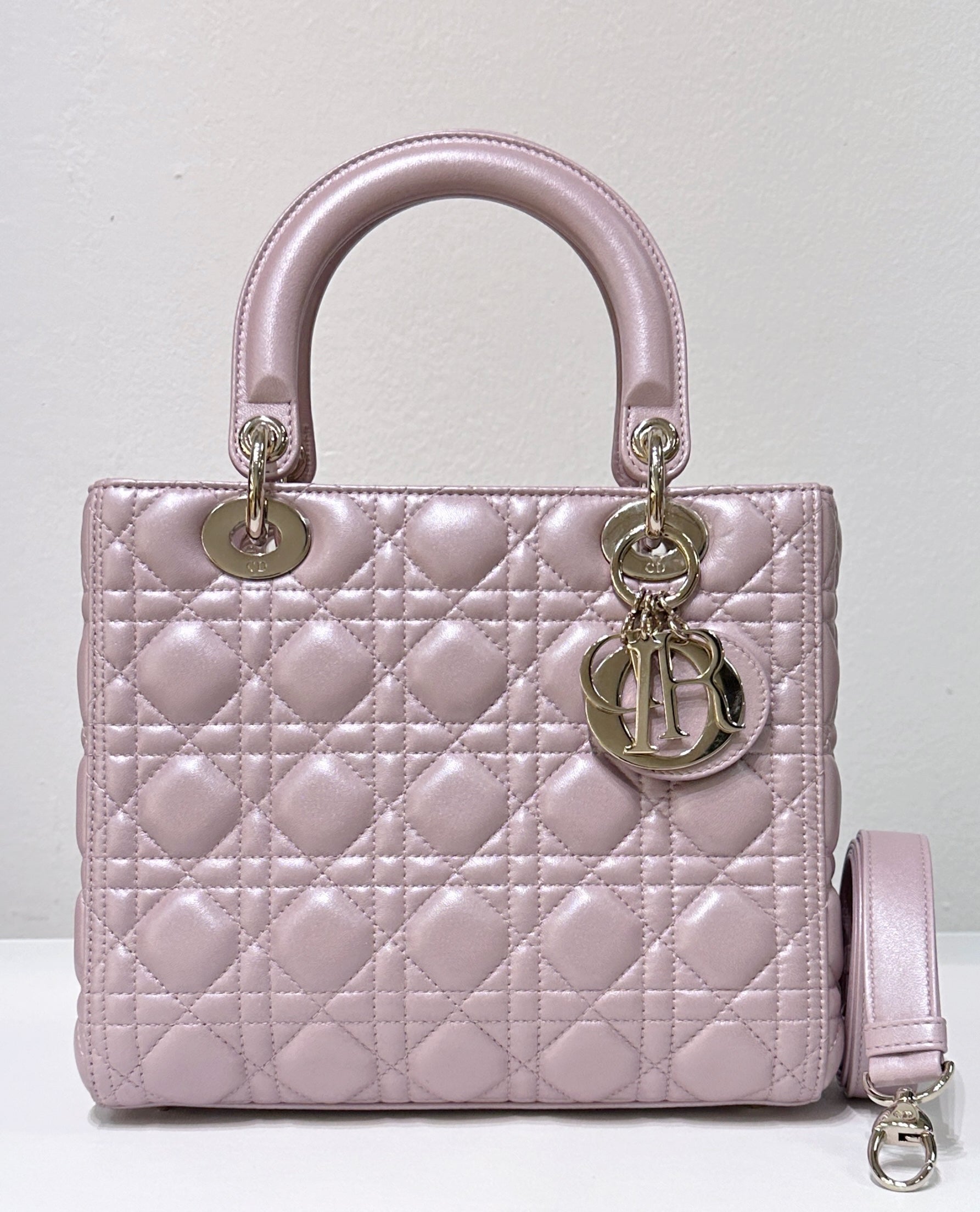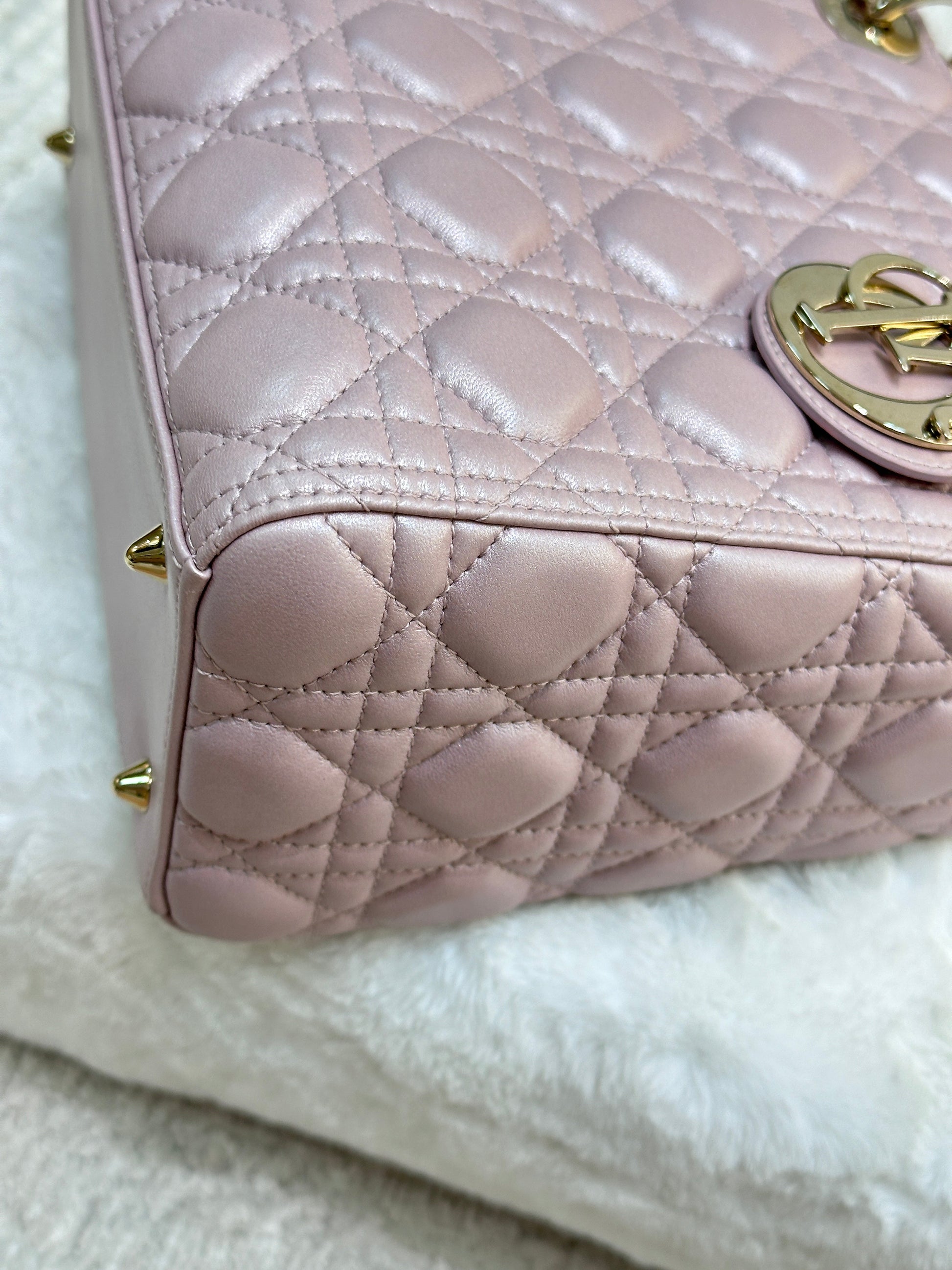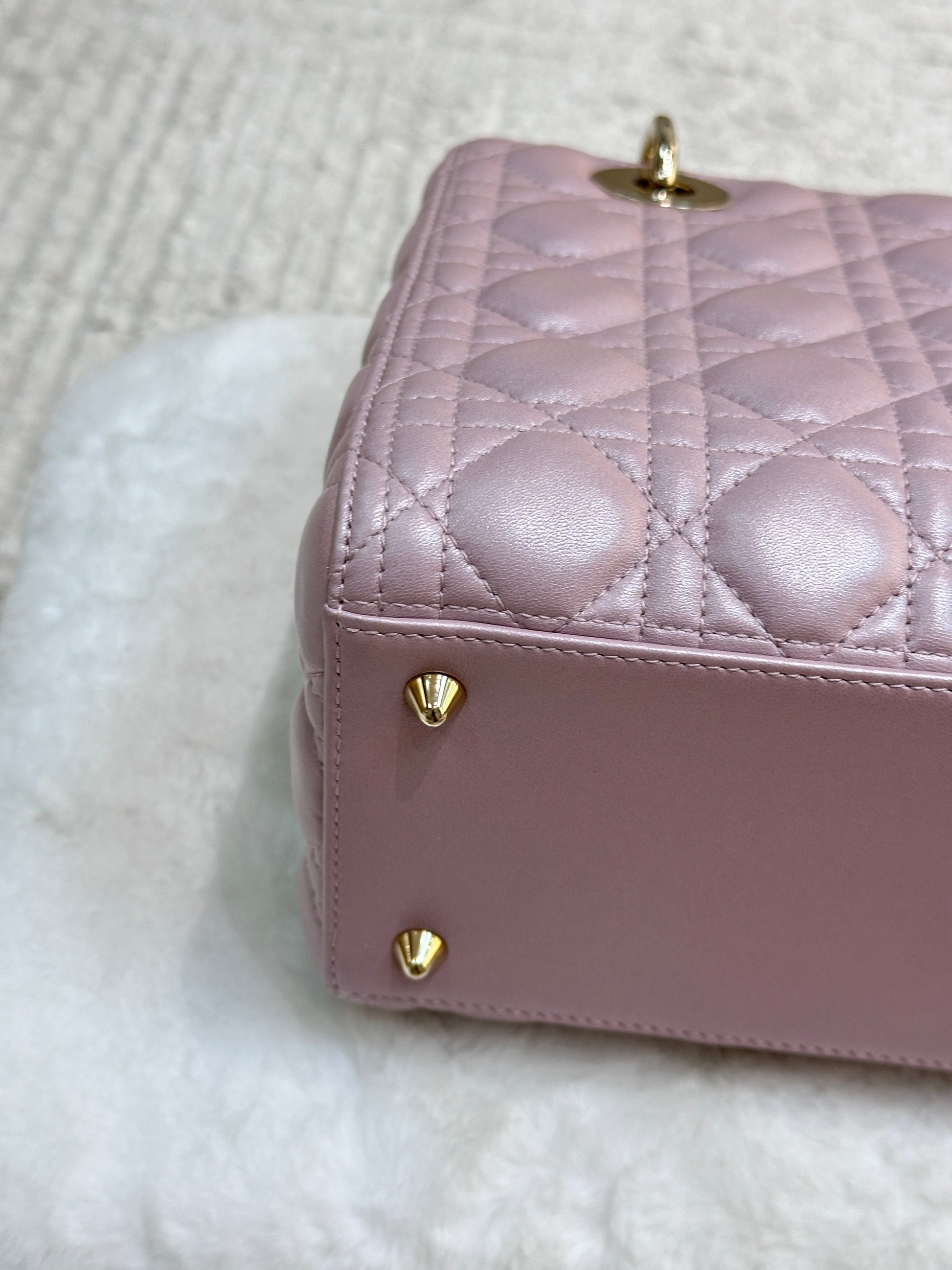 Dior Medium Lady Dior in Pearly Lotus Pink Lambskin GHW