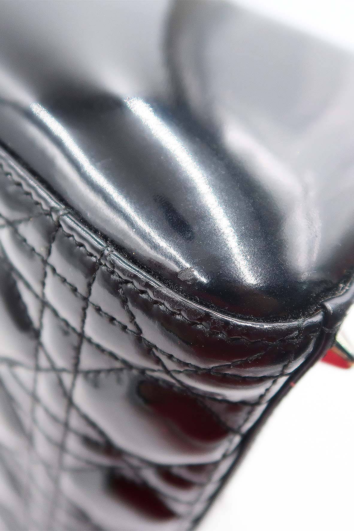 Exterior overall have scratches. Exterior corners bottom edge, top edge and handle have peeling. Exterior hardware metal overall have scratches. Bag is slightly sticky due to the patent leather.
