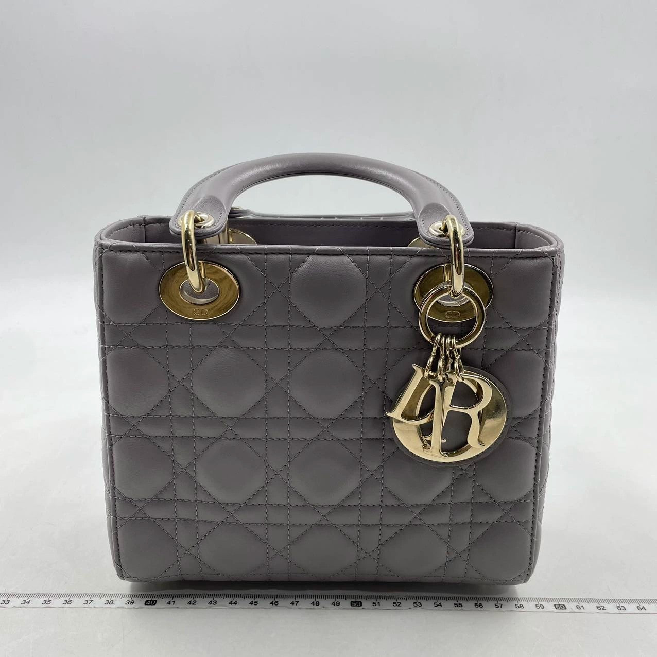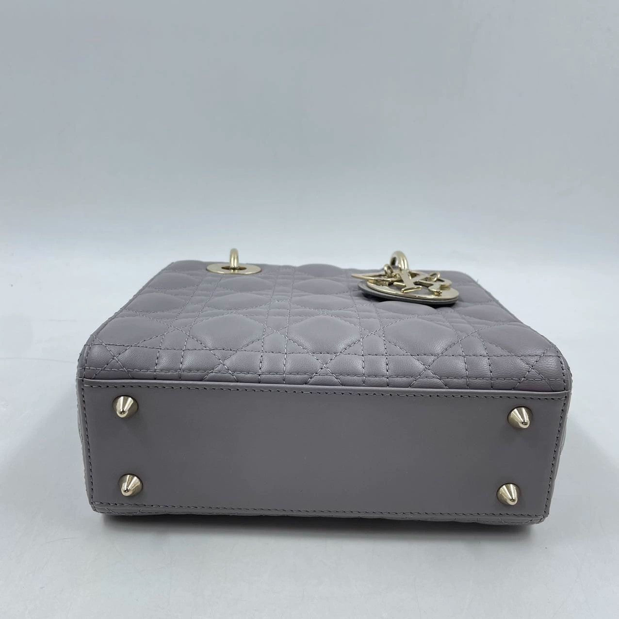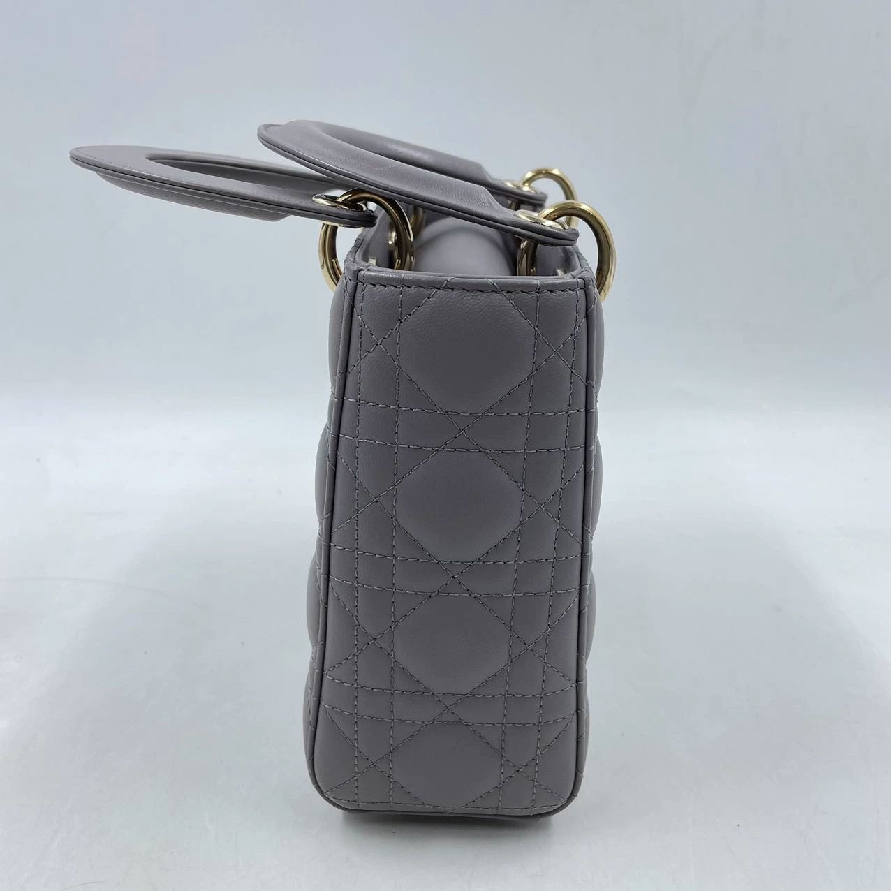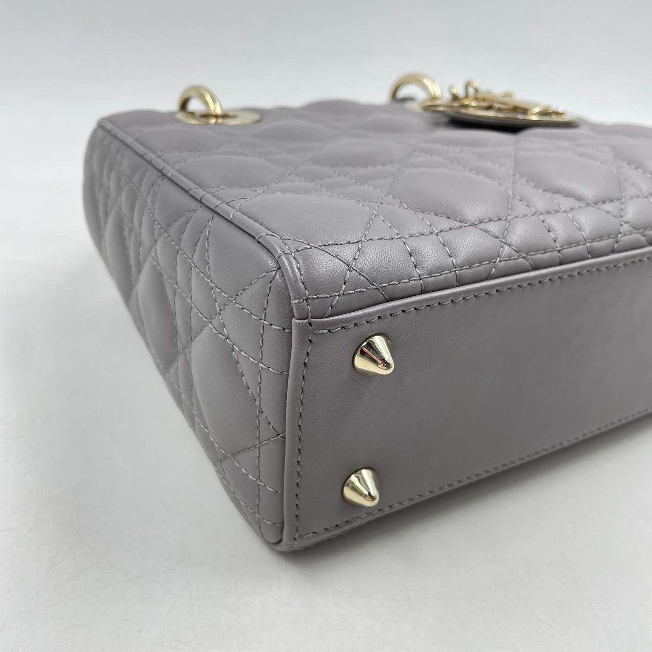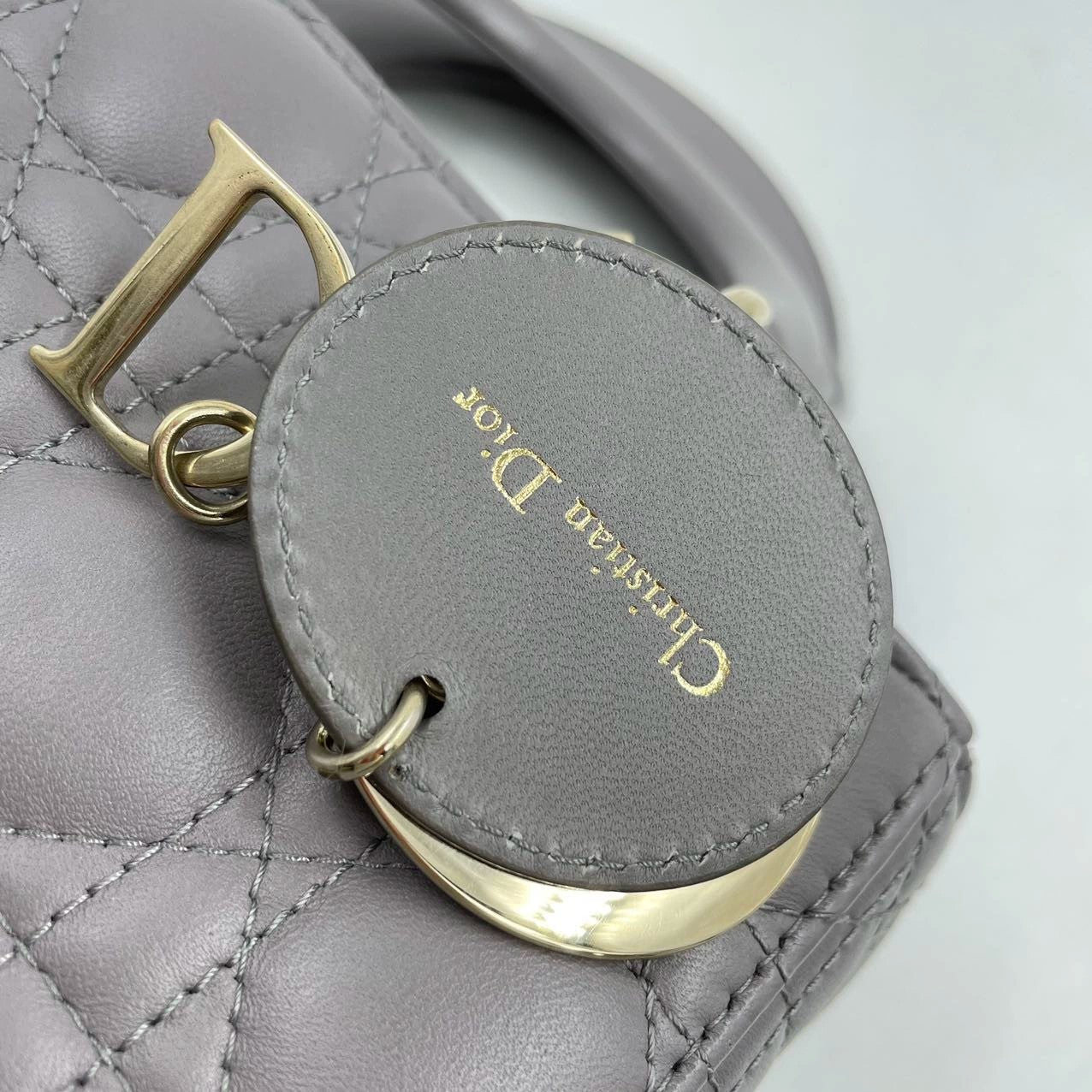 Dior Small Lady Dior ABC in Gray Lambskin and LGHW Enamel Buckle
