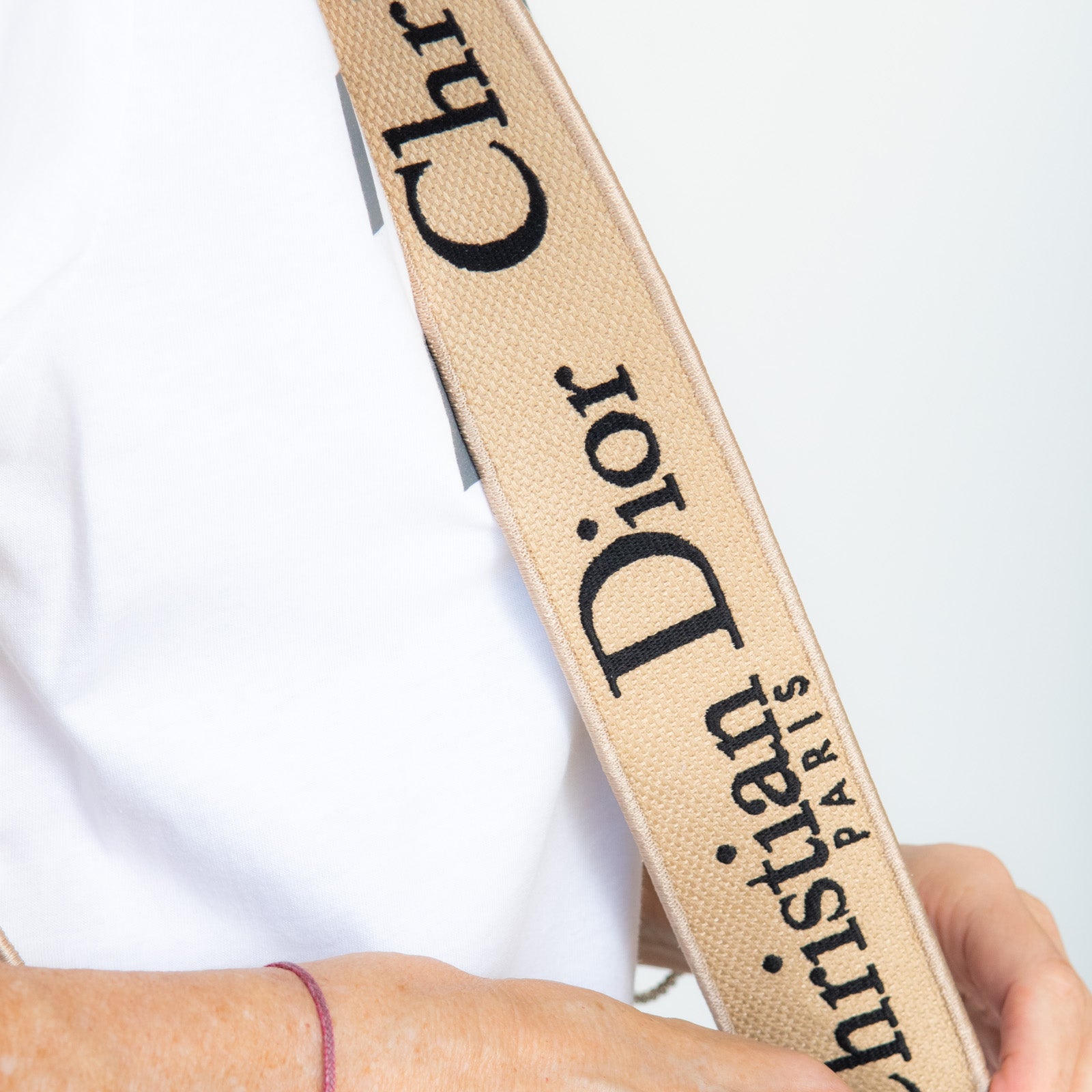 - Dior charm letters in gold tone hardware. Interior features a zipped wall pocket and a slip pocket