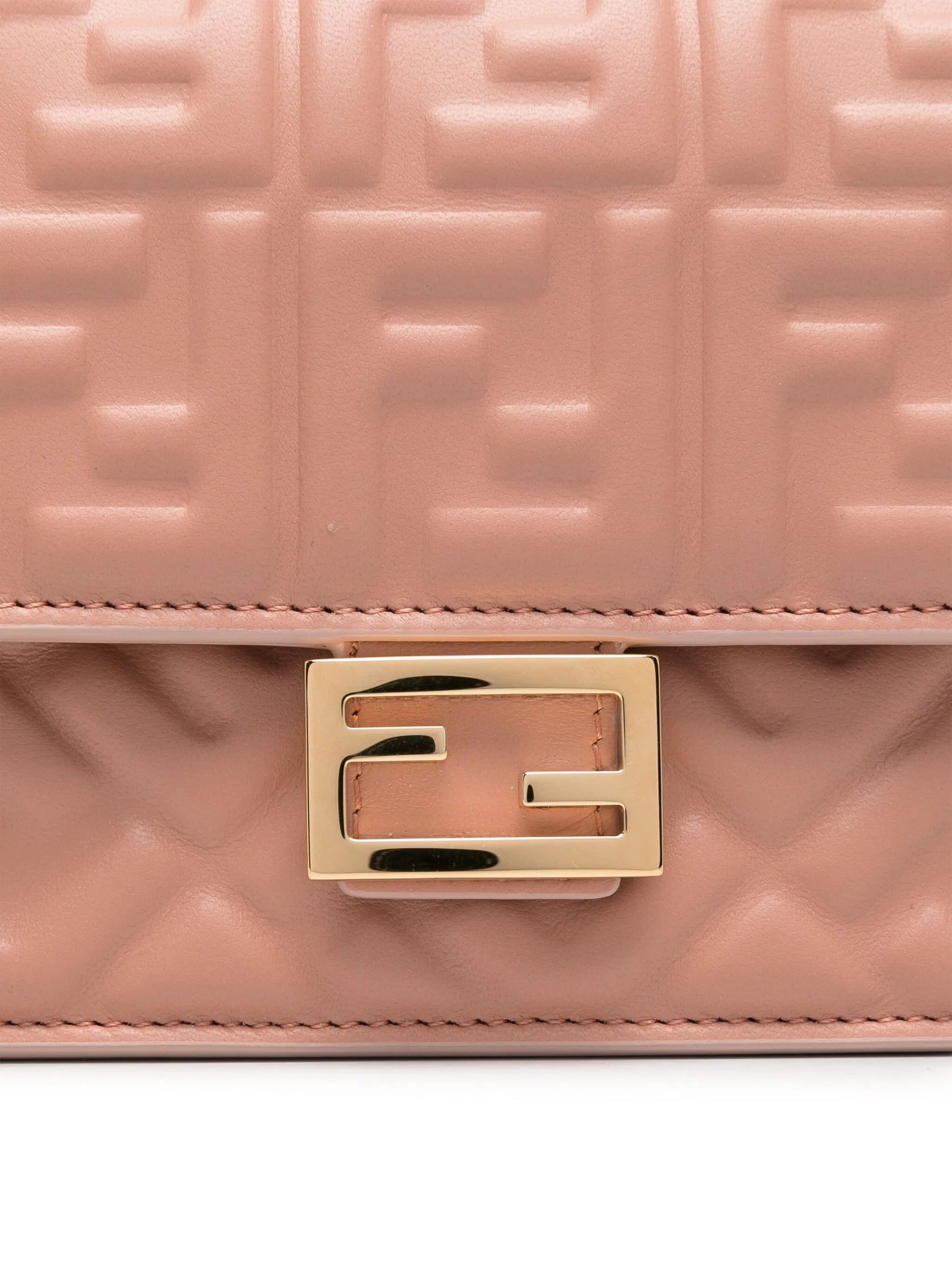 FENDI FF BAGUETTE CALFSKIN LEATHER WALLET ON CHAIN BLUSH PINK