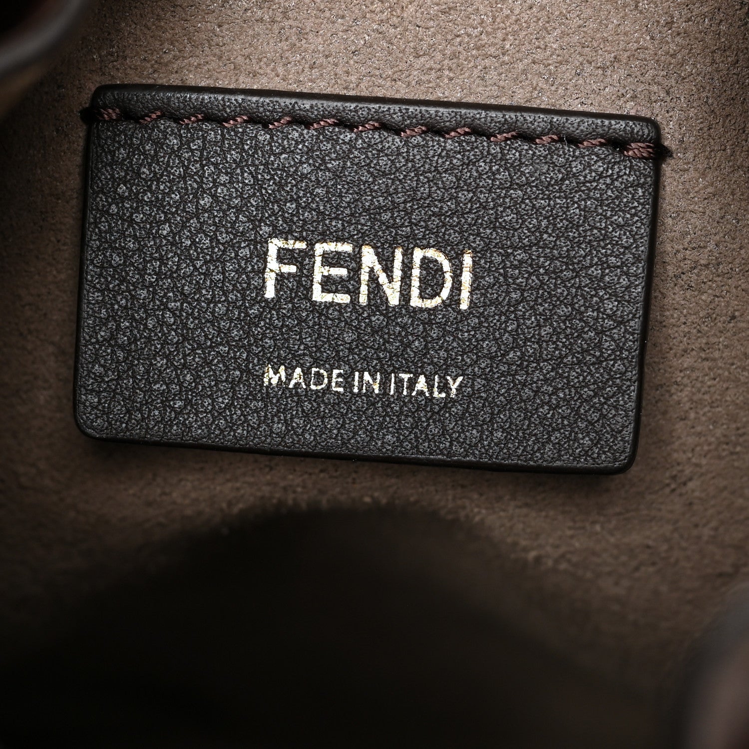 Mini Mon Tresor Bucket bag Crafted of split leather printed with the FF motif in brown. Lined and with Gold-finish metalware. Two detachable shoulder straps, one long and one short, to wear the bag over the shoulder or crossbody