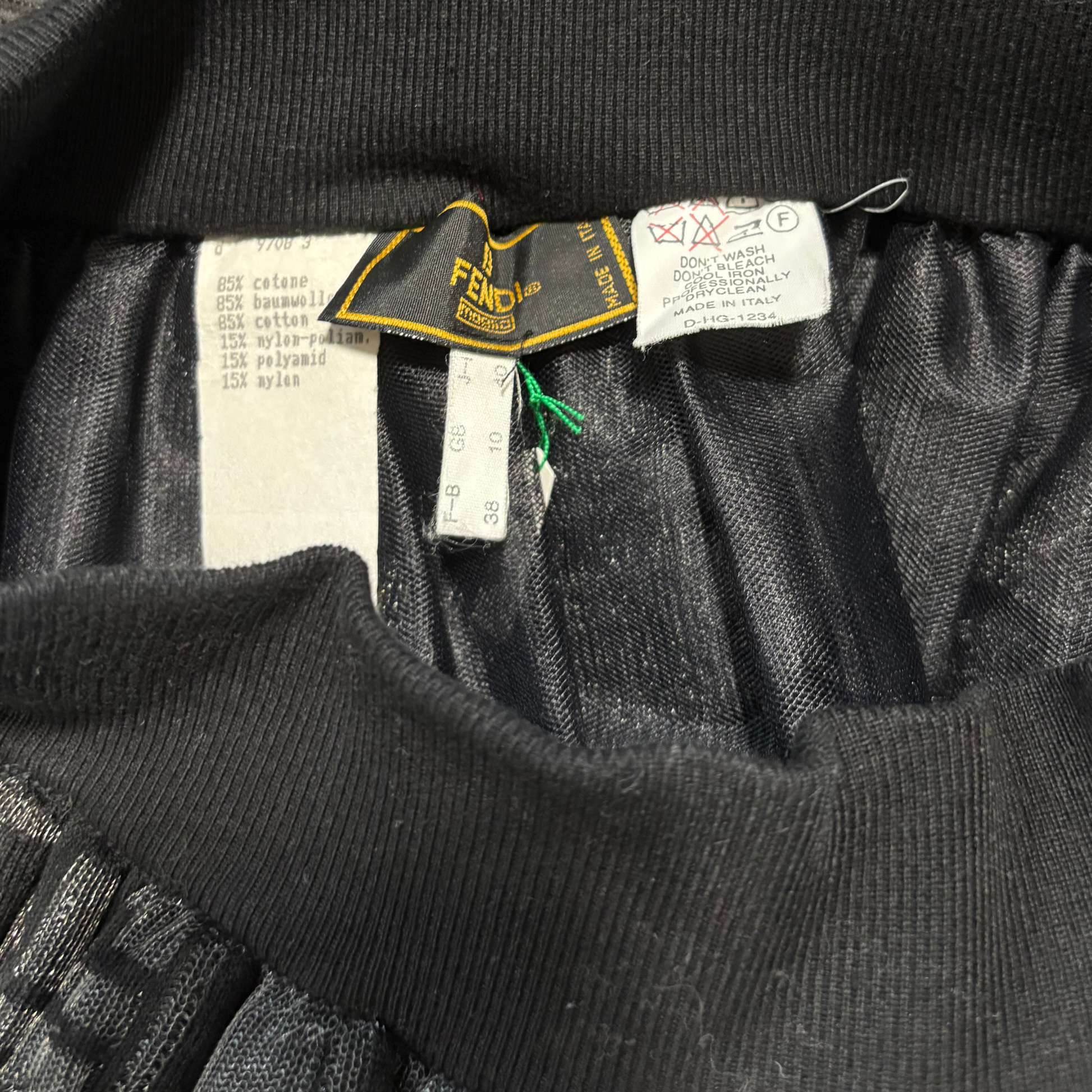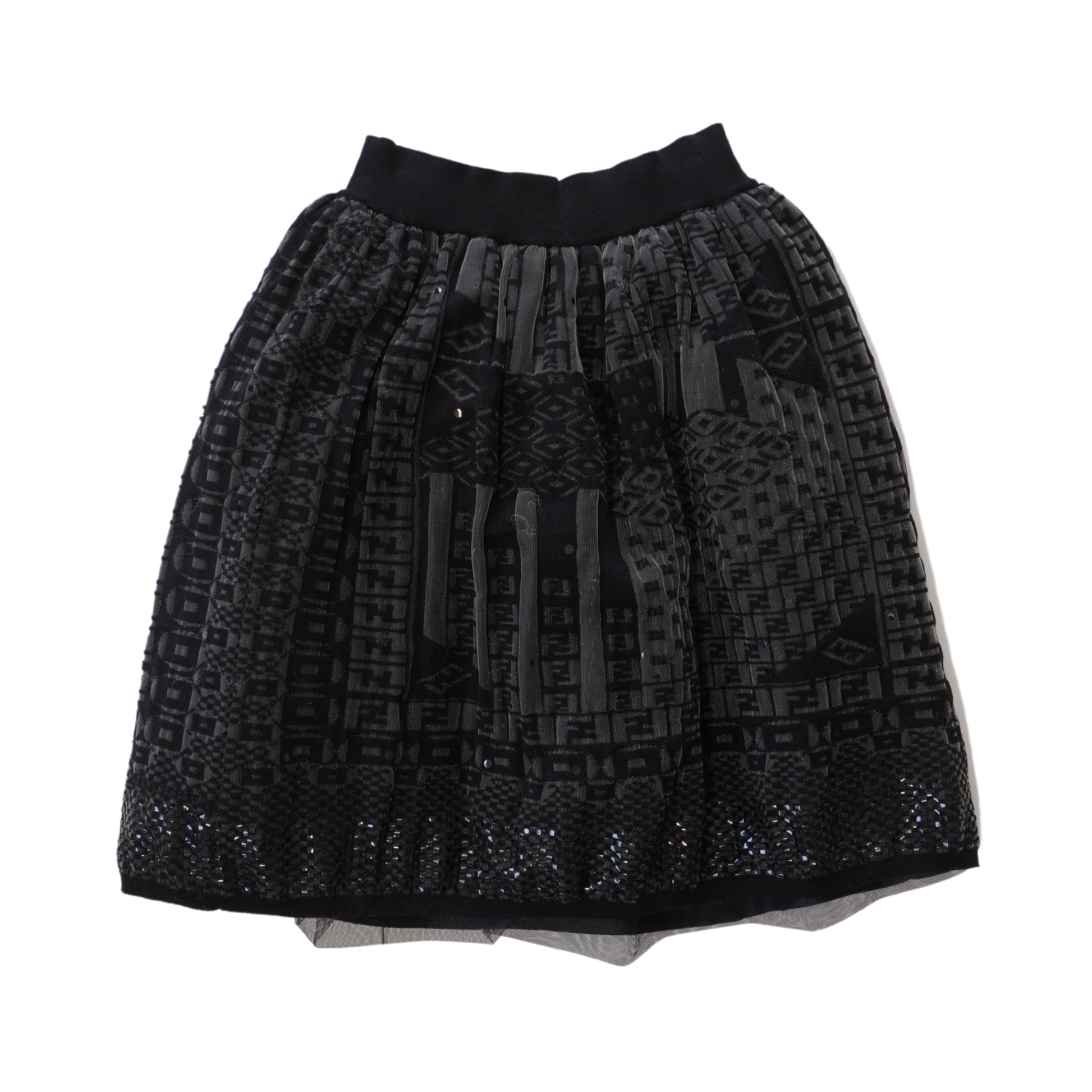 Fendi voluminous midi skirt in black and grey jacquard monogram knit with silver sequins throughout and a tulle skirt inner layer and an elastic waistband.