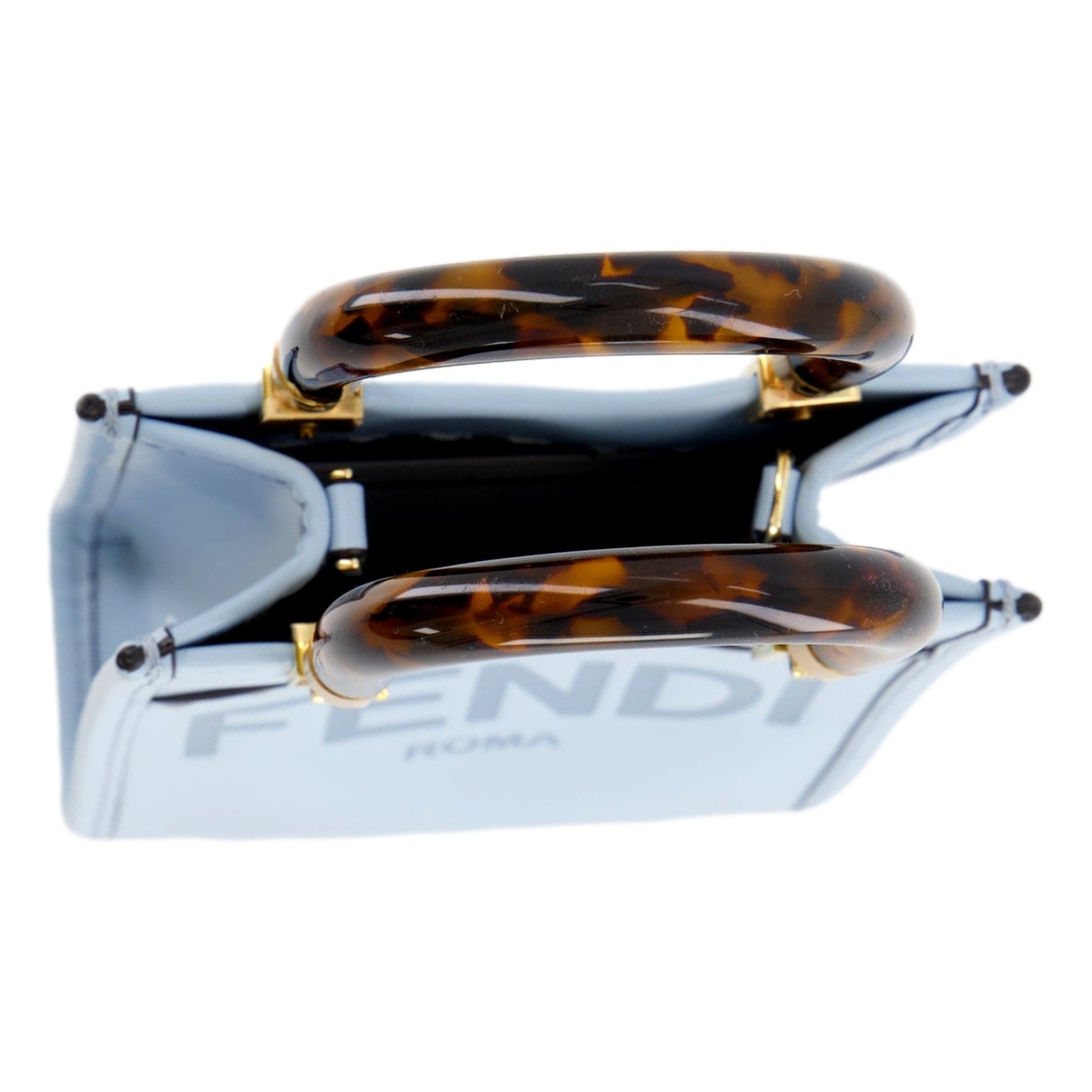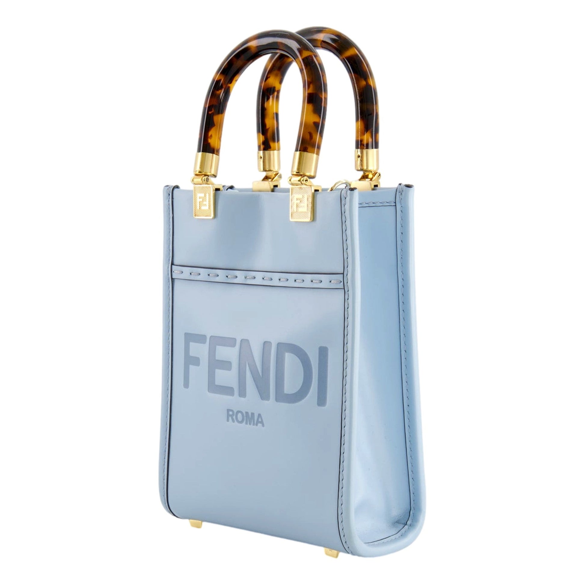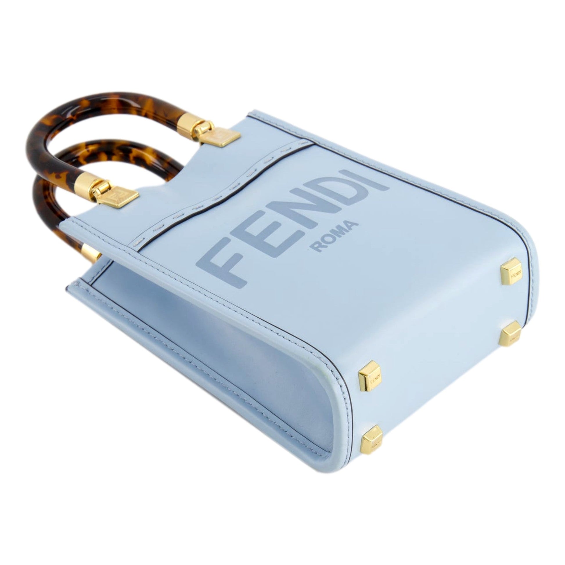 Fendi Mini Sunshine Shopper Tote Crossbody Bag 2Way Baby Blue Leather