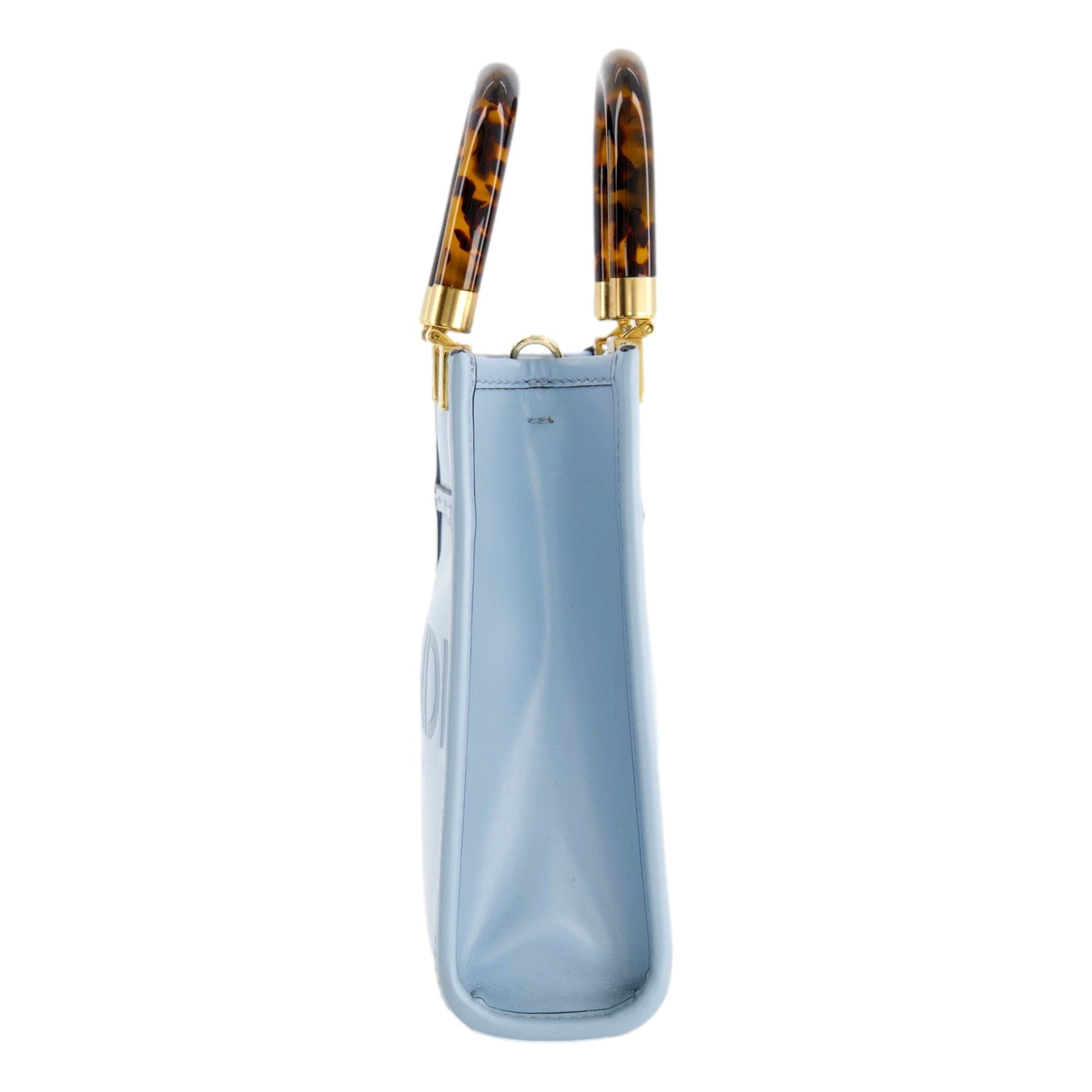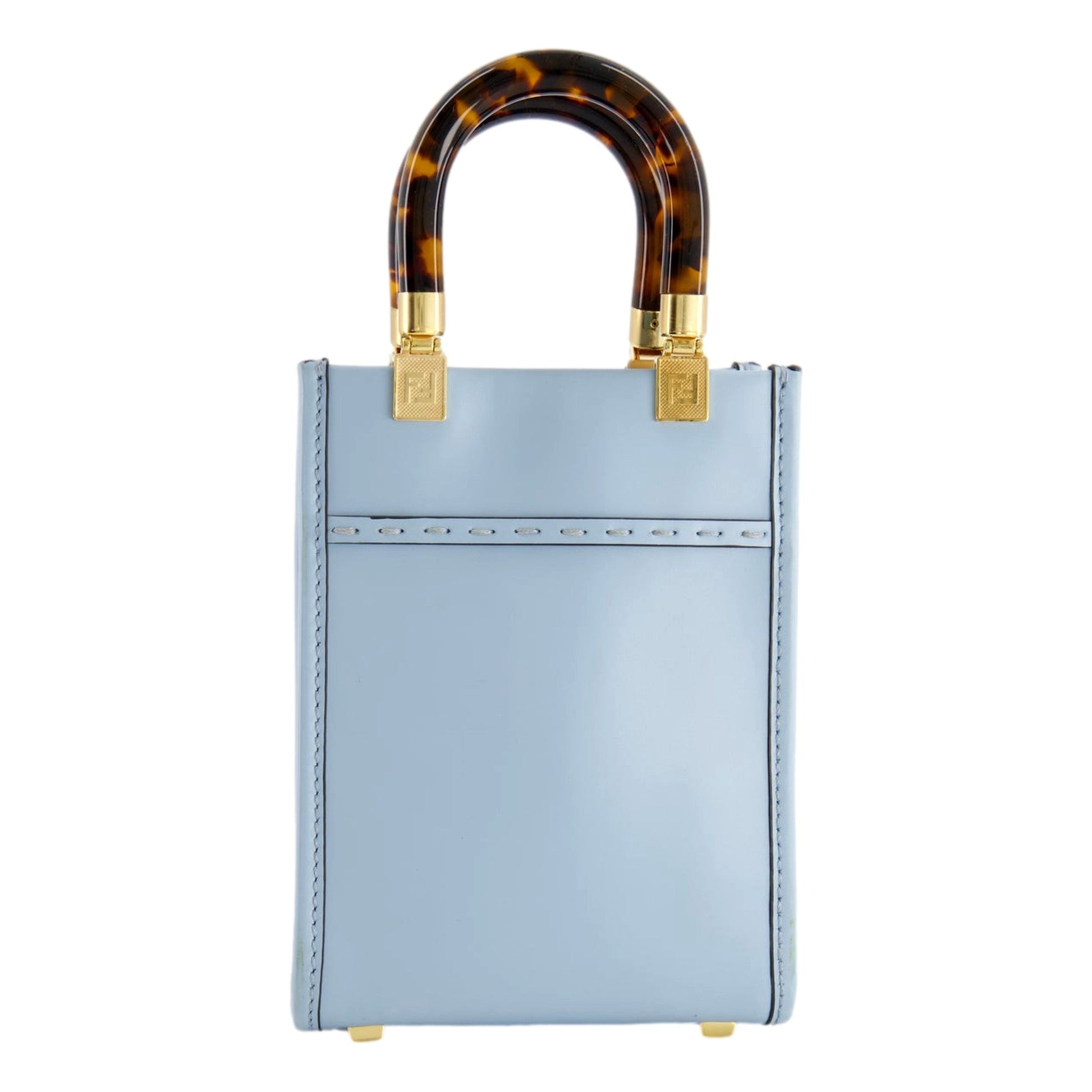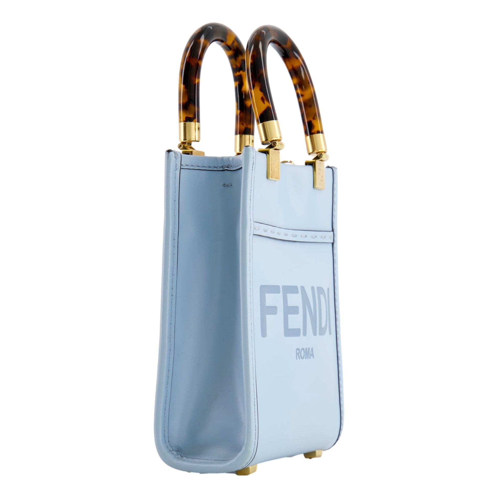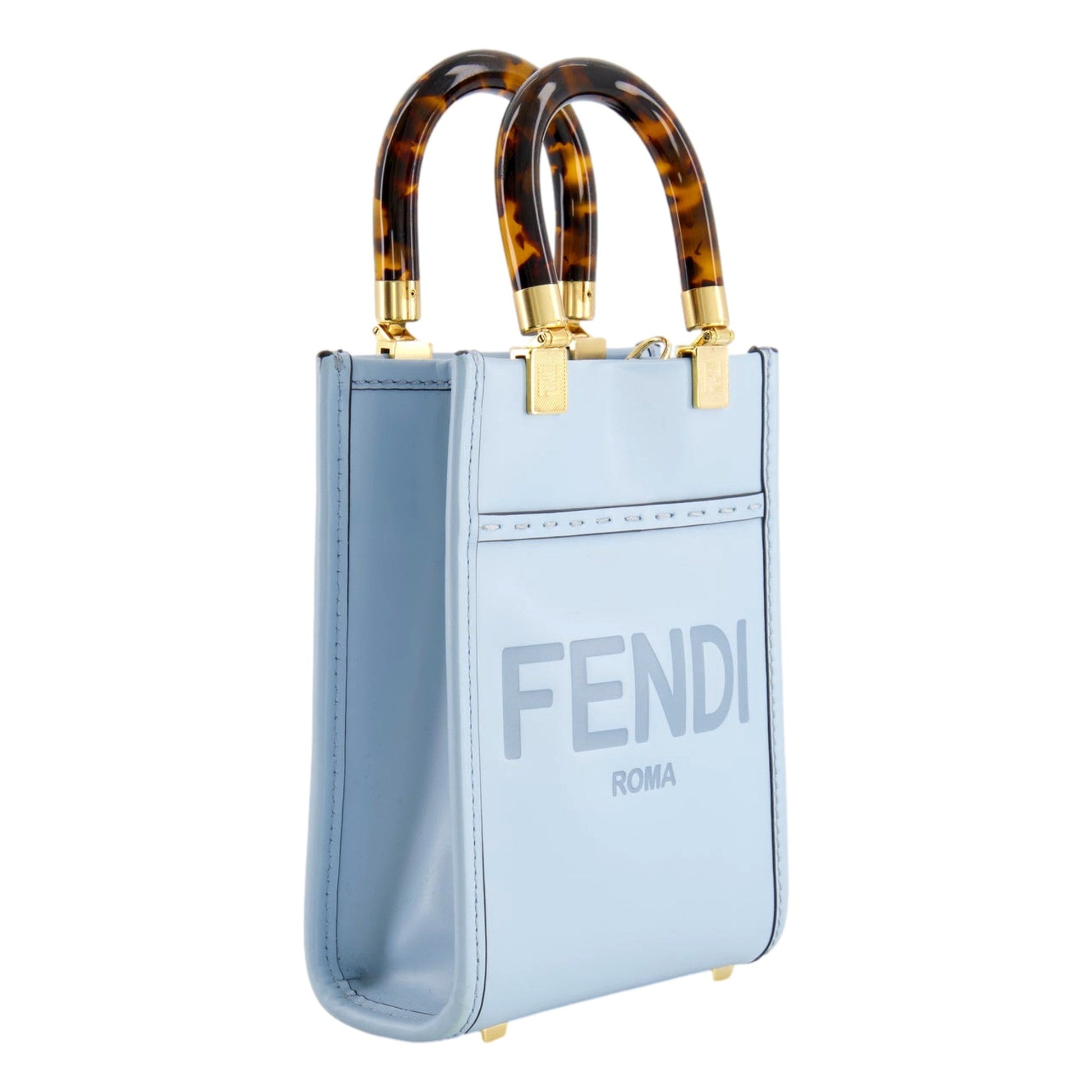 Fendi Mini Sunshine Shopper Tote Crossbody Bag 2Way Baby Blue Leather