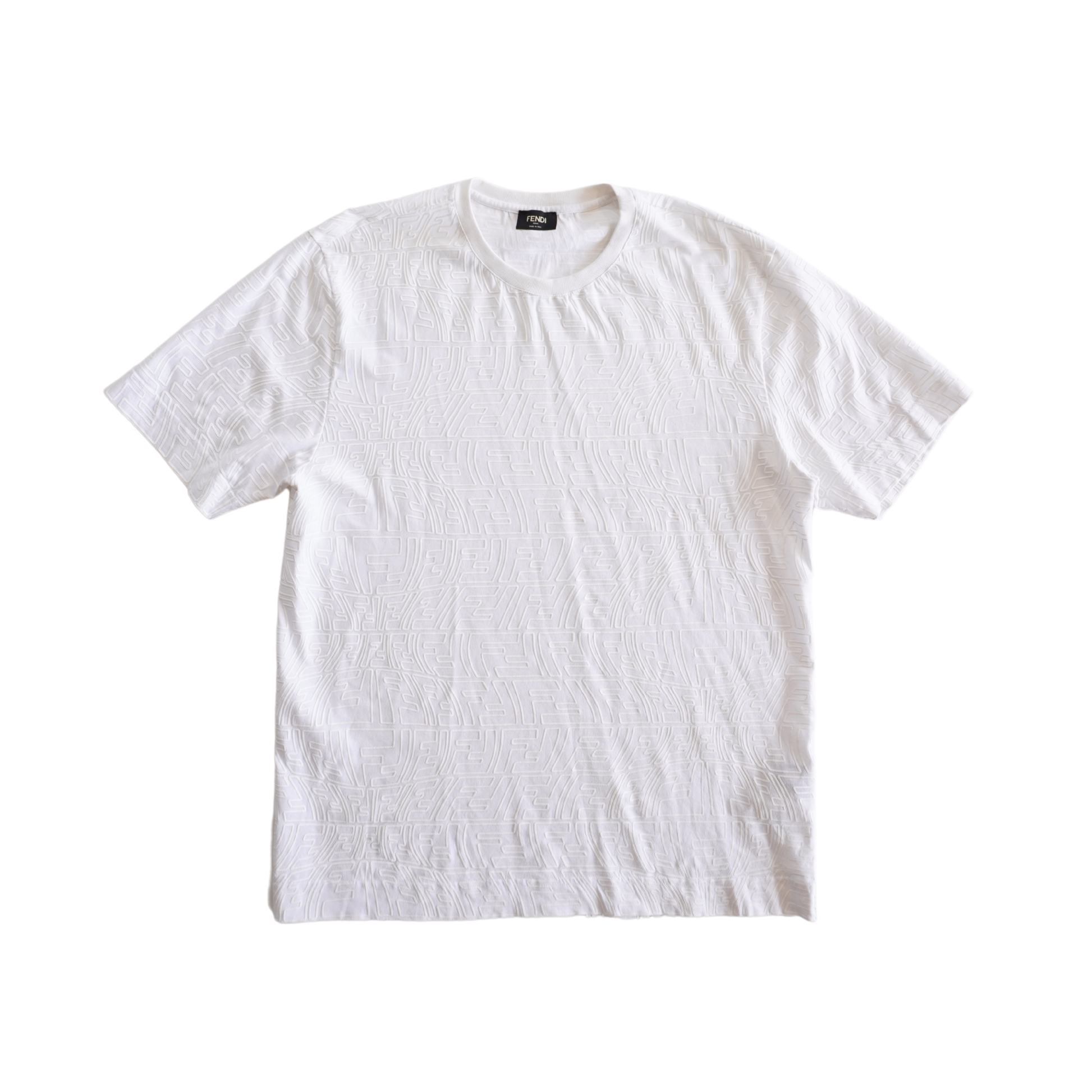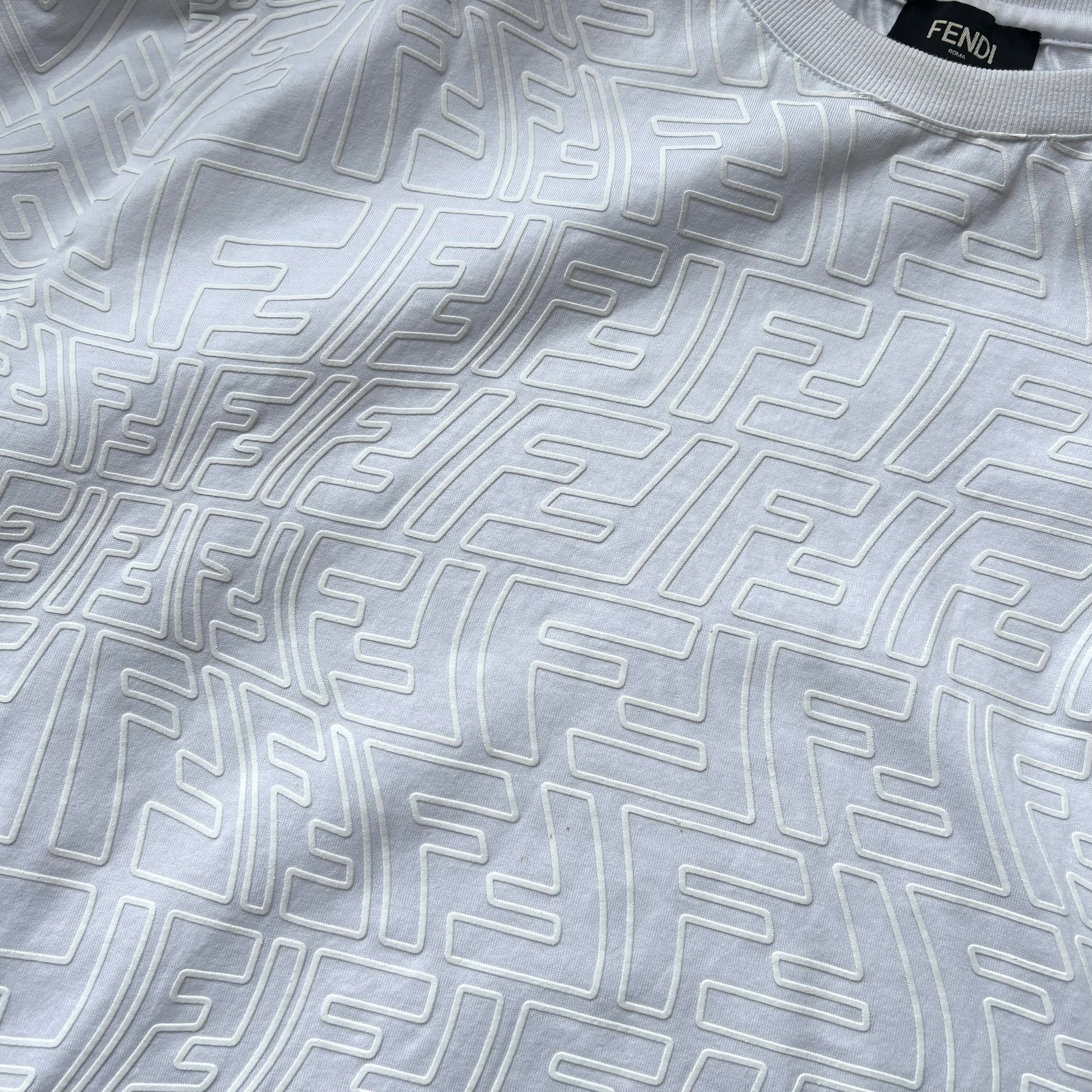 Fendi t-shirt in white cotton with an all-over tonal wave monogram 'FF' zucca print.